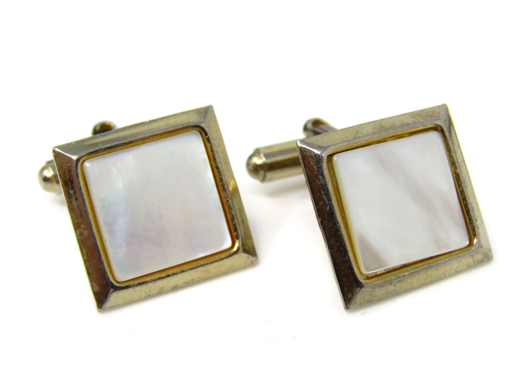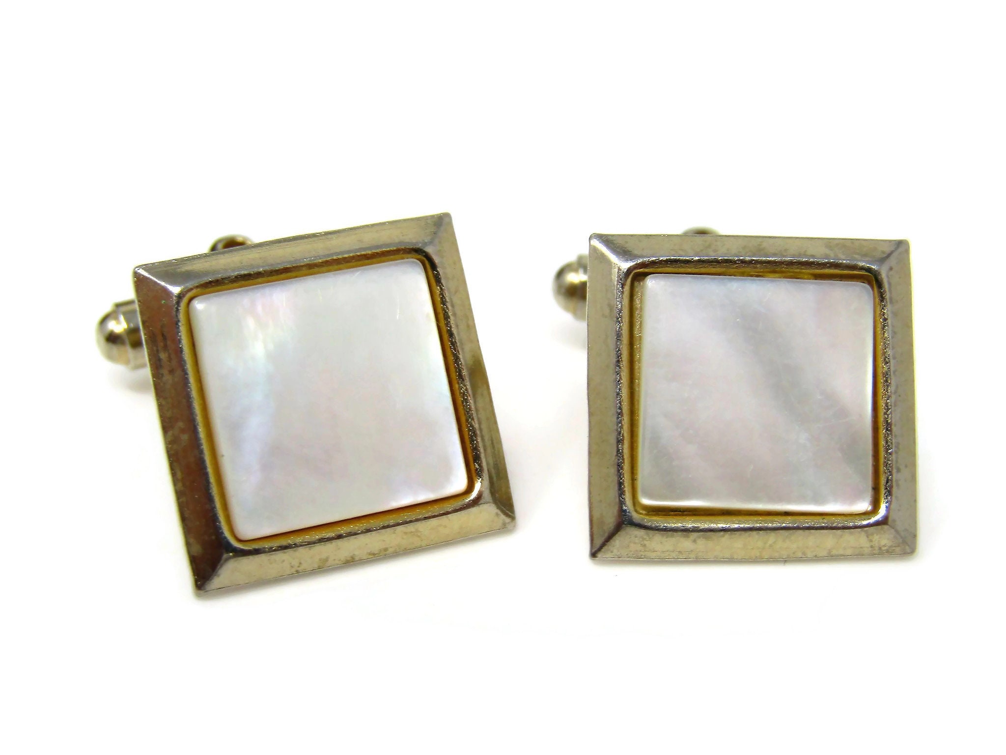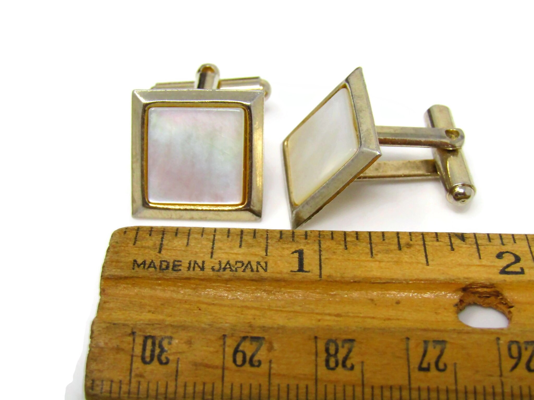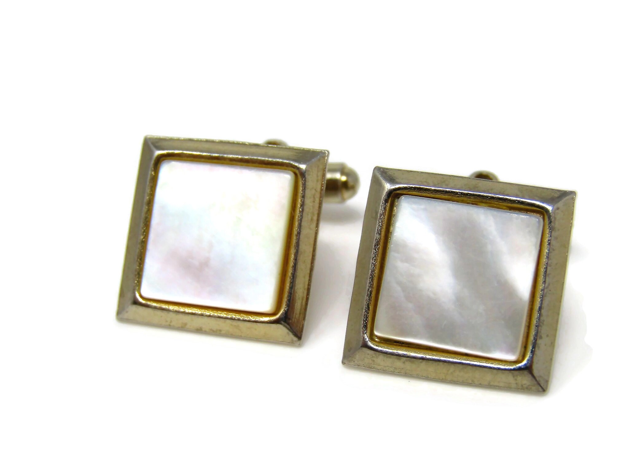 Vintage Cufflinks for Men: Mother of Pearl Center Gold Tone Border
