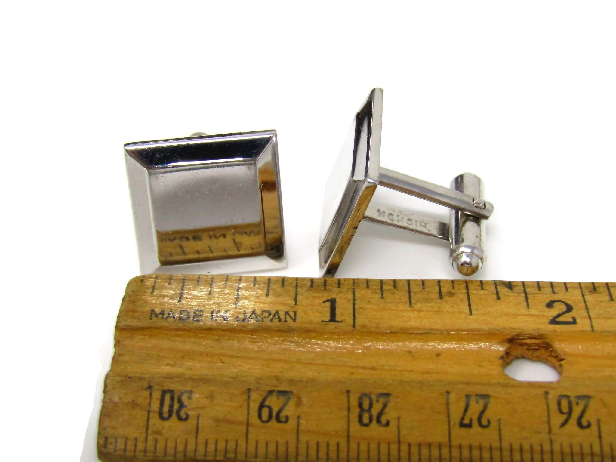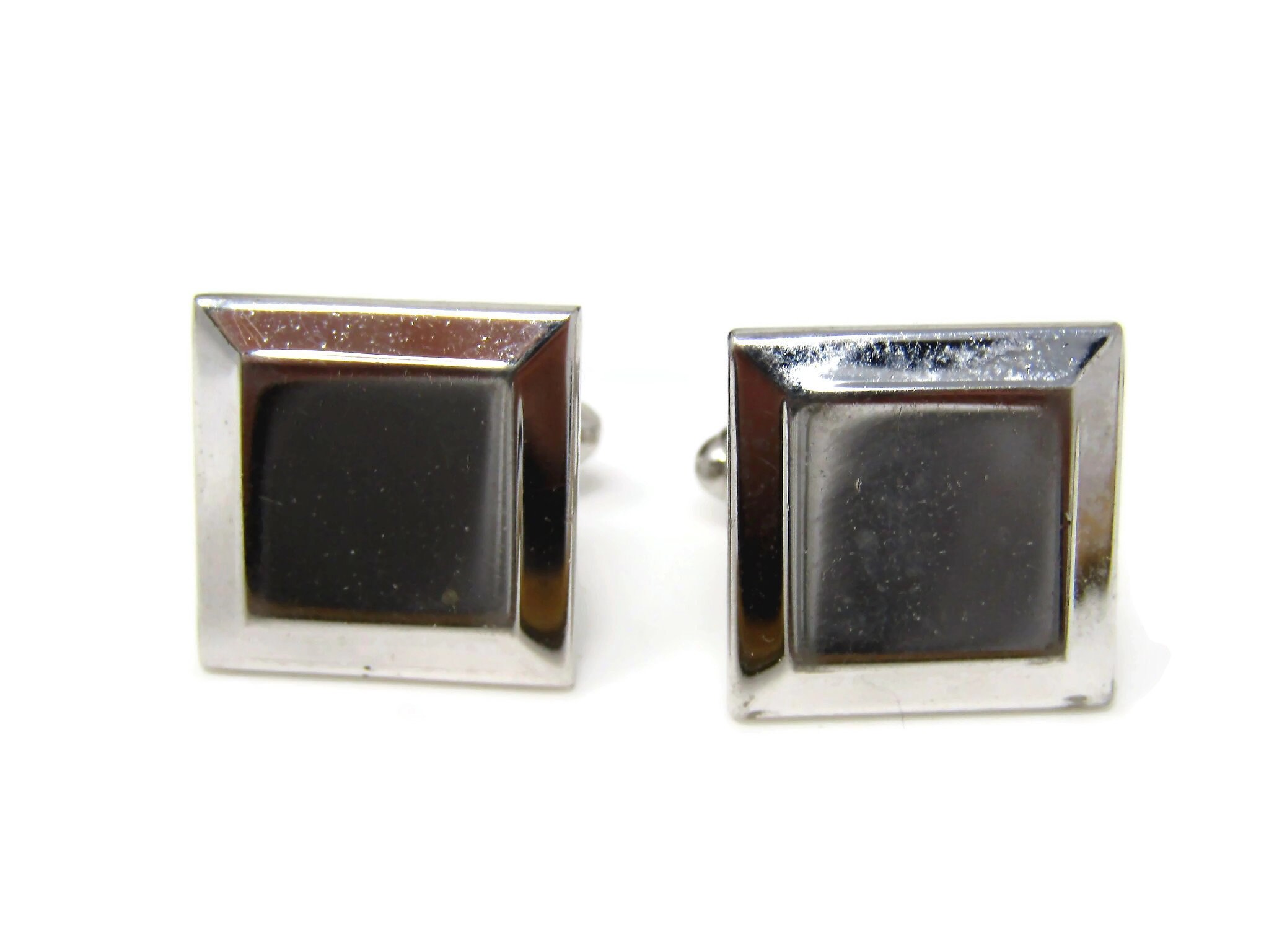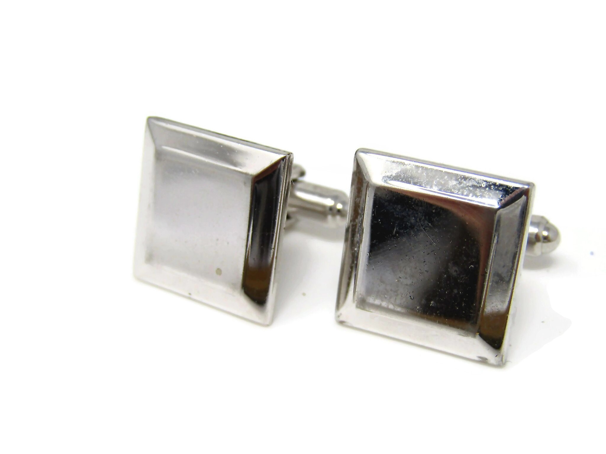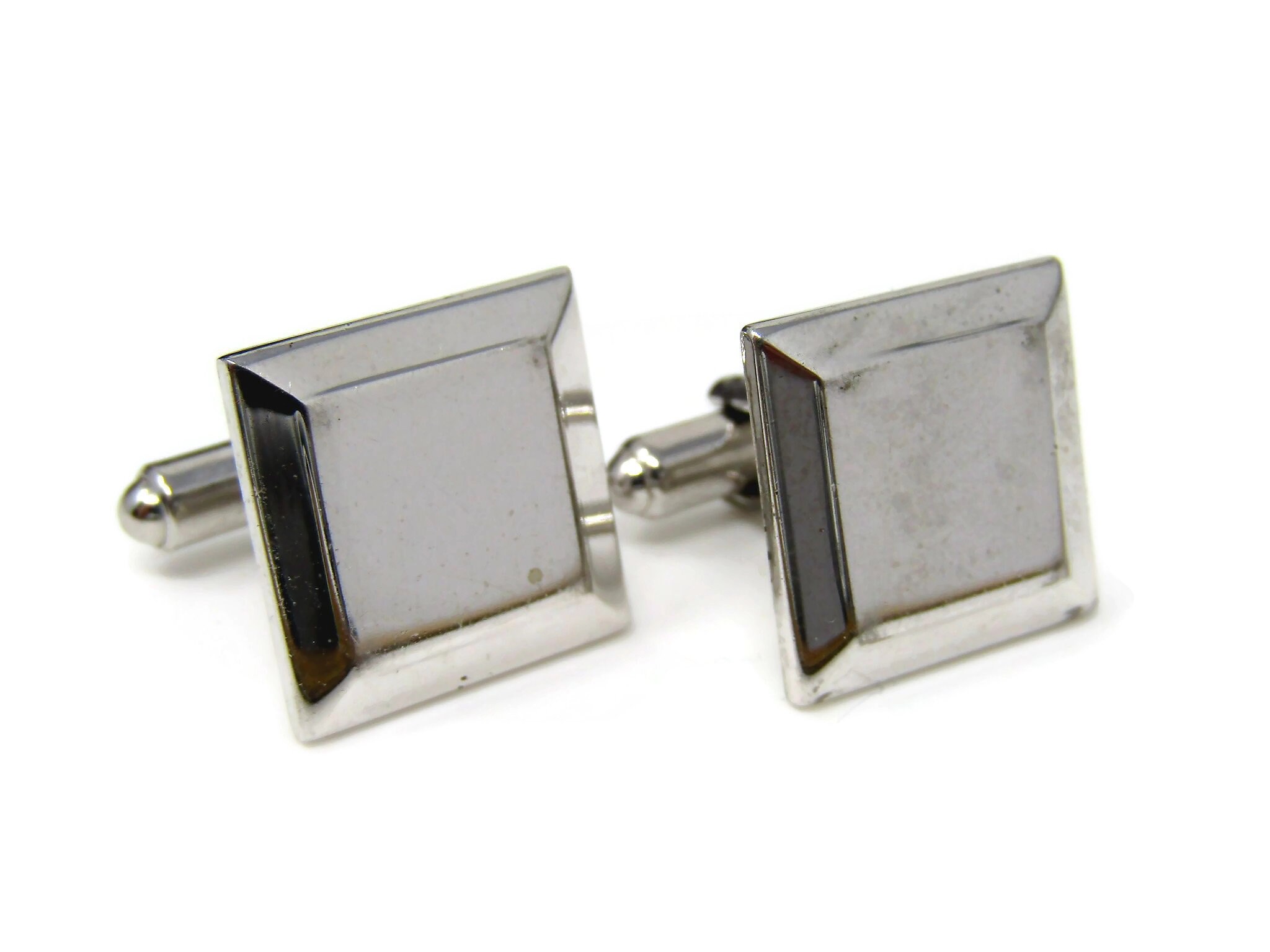 Vintage Cufflinks for Men: Beveled Edges Silver Tone Square Classic Design