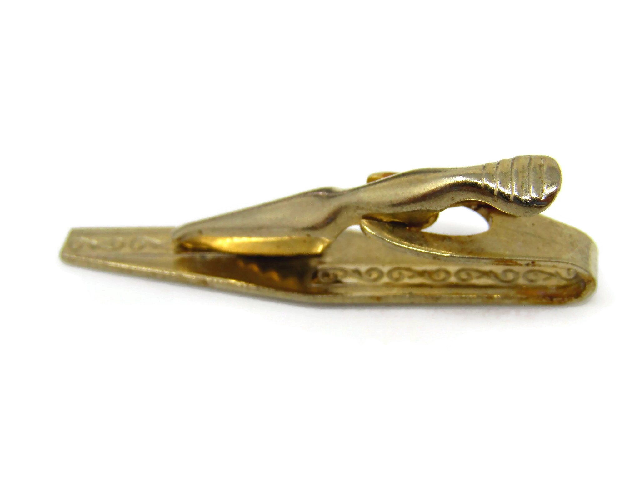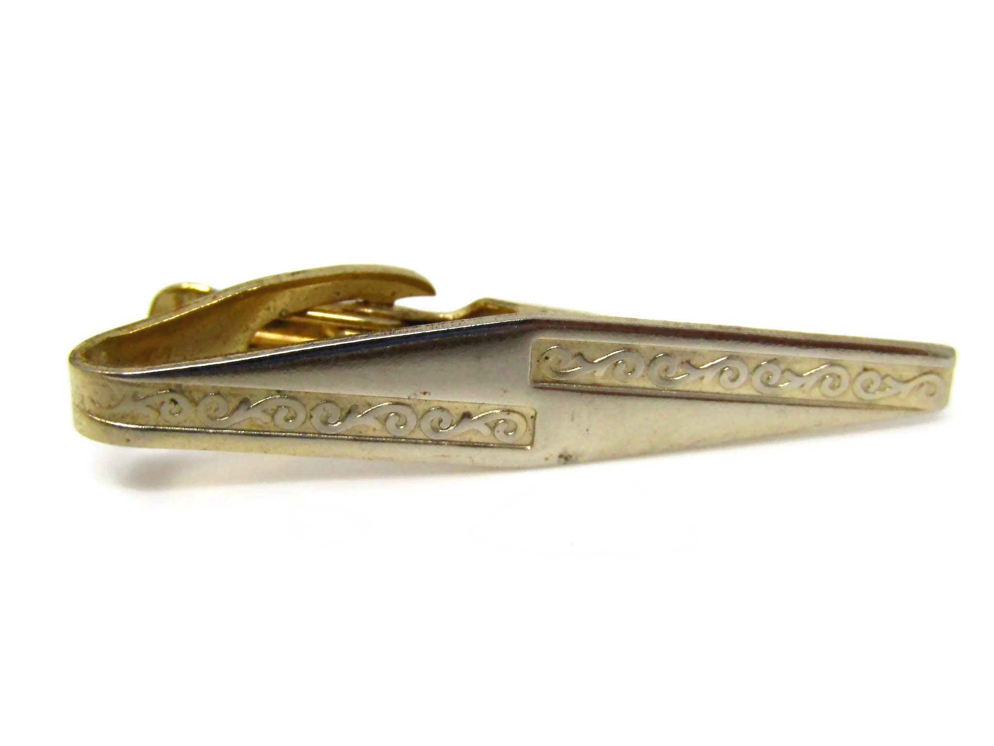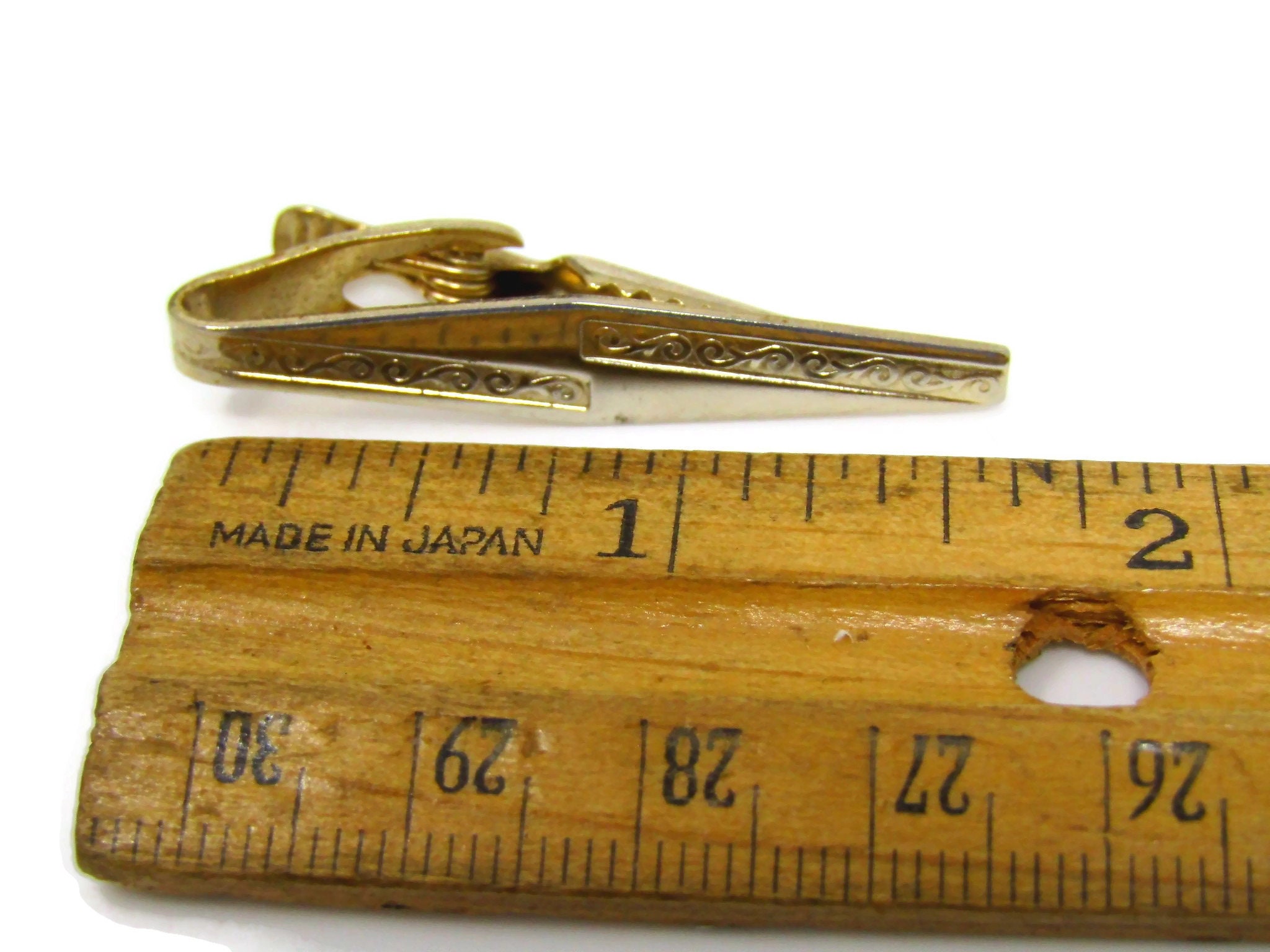Vintage Tie Clip Bar for Men: Textured Lines Art Deco Shape Gold Tone
