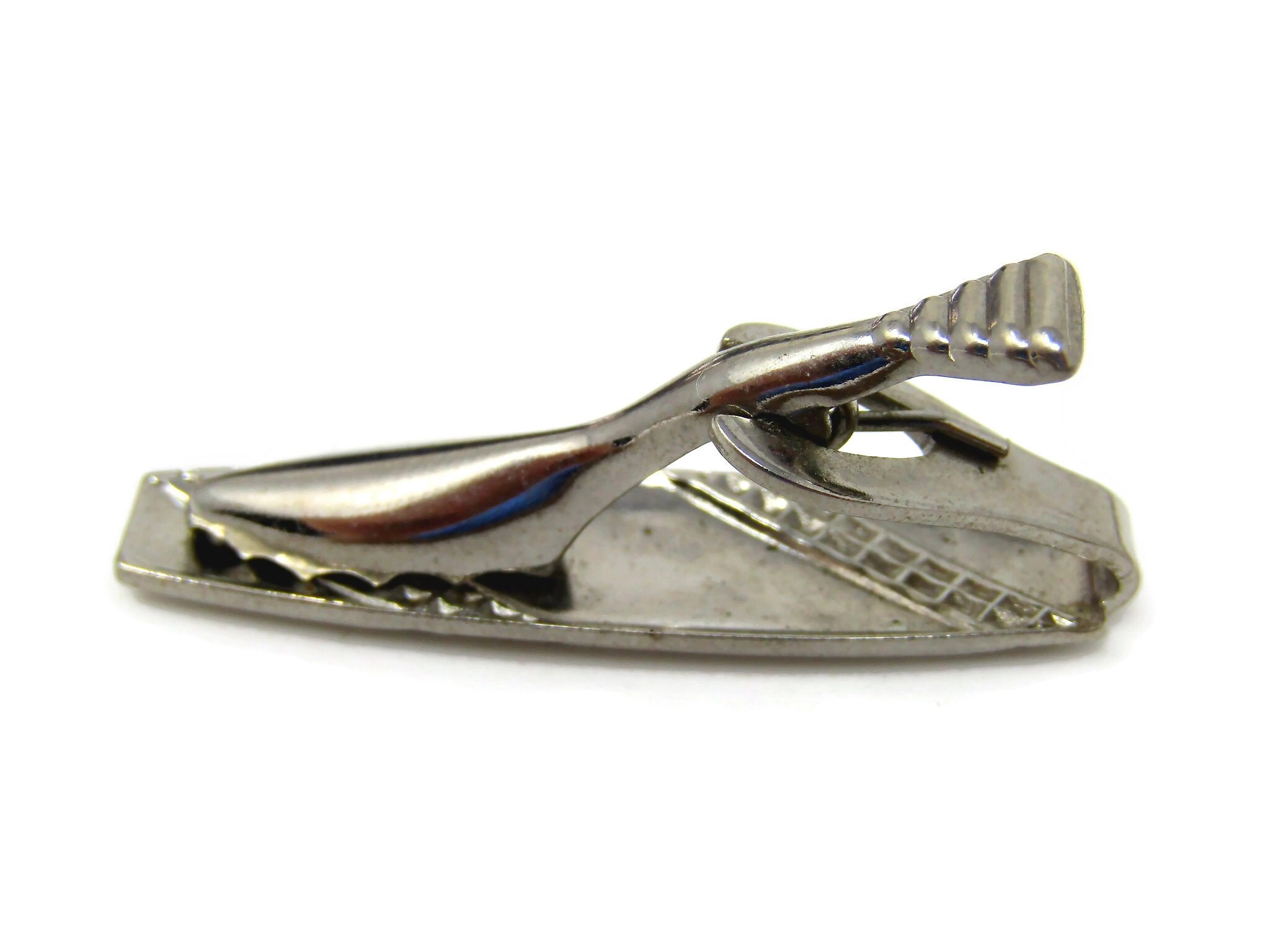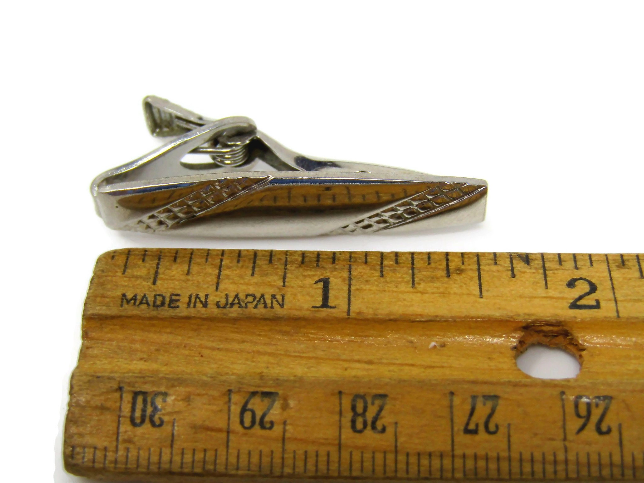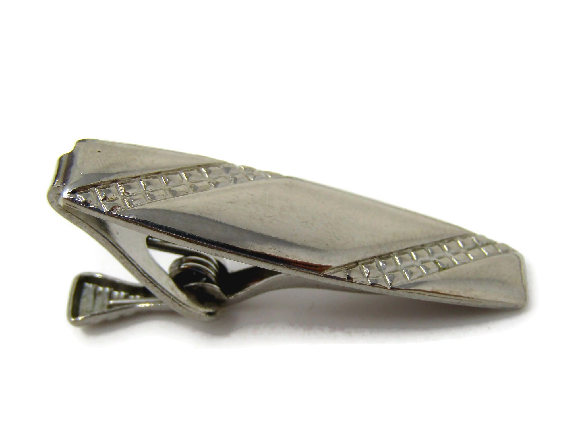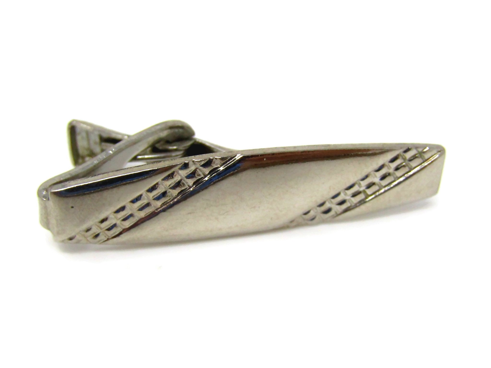Vintage Tie Clip Bar for Men: Waffle Stripe Design Silver Tone