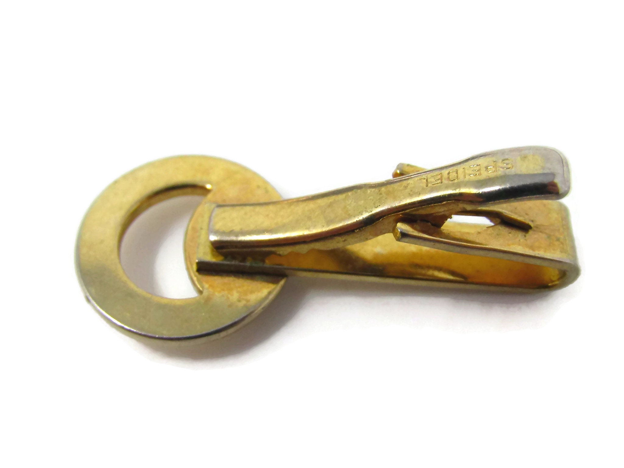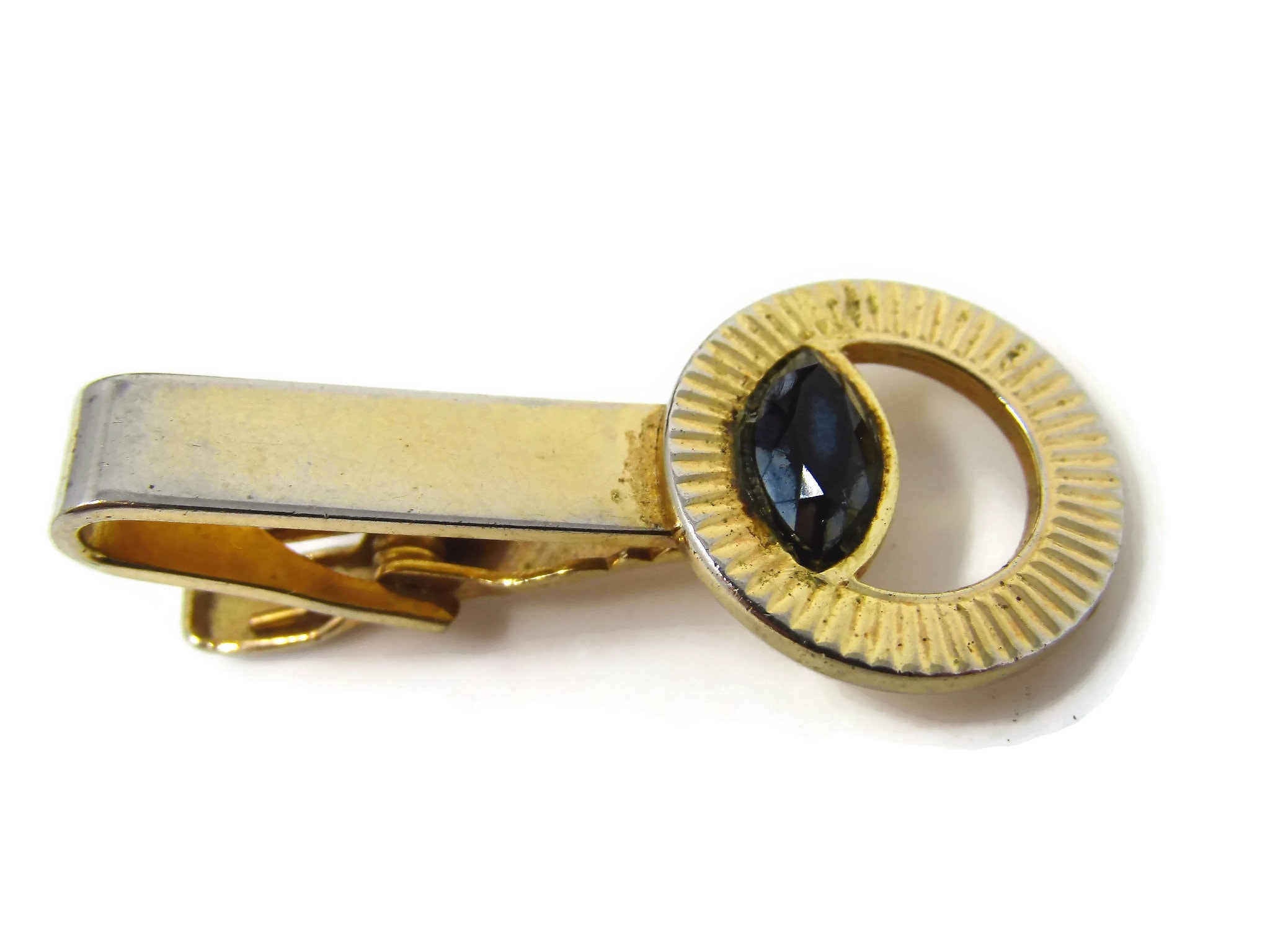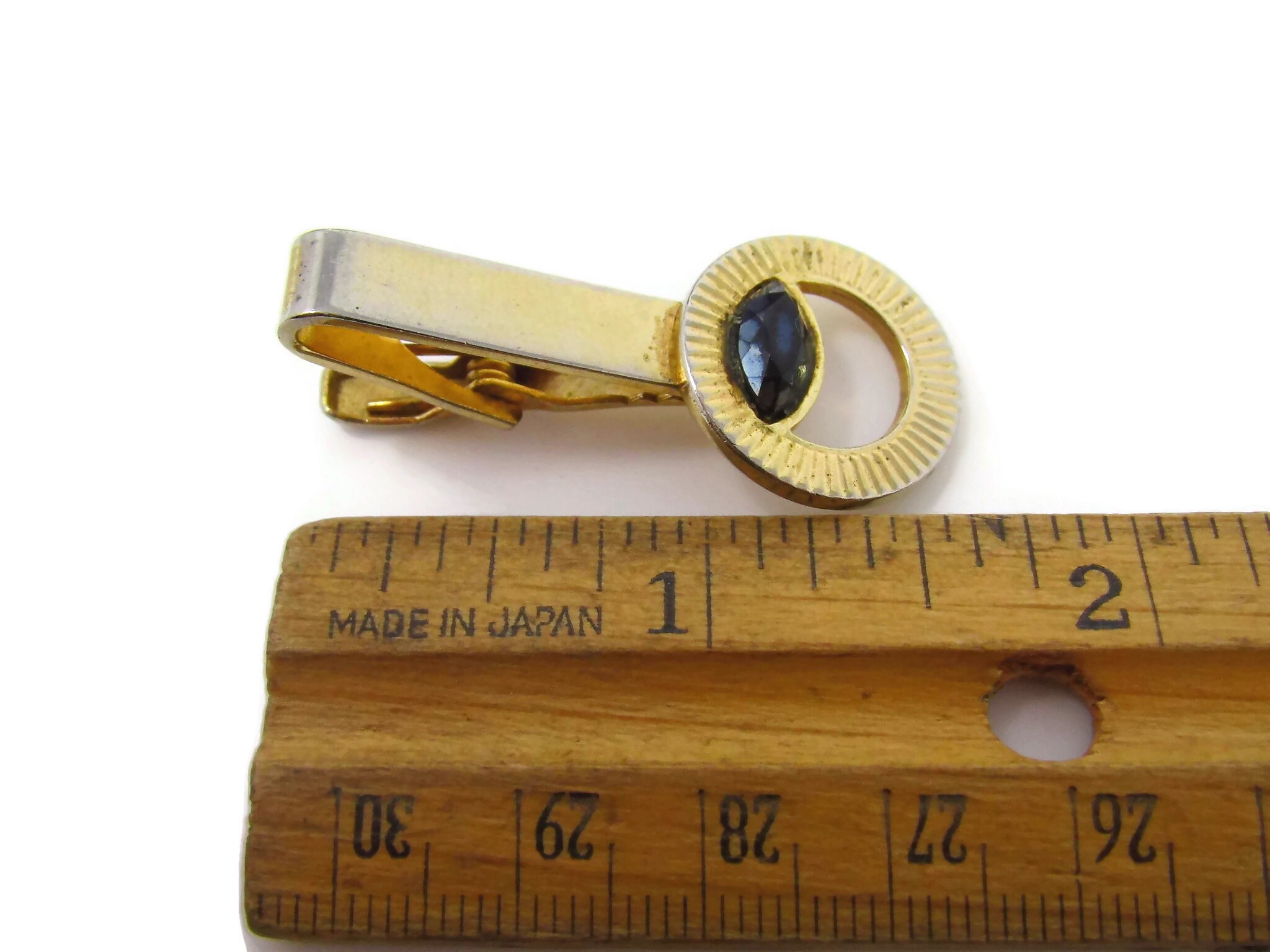 Vintage Tie Bar Clip: Modernist Ring Dark Jewel Design Gold Tone