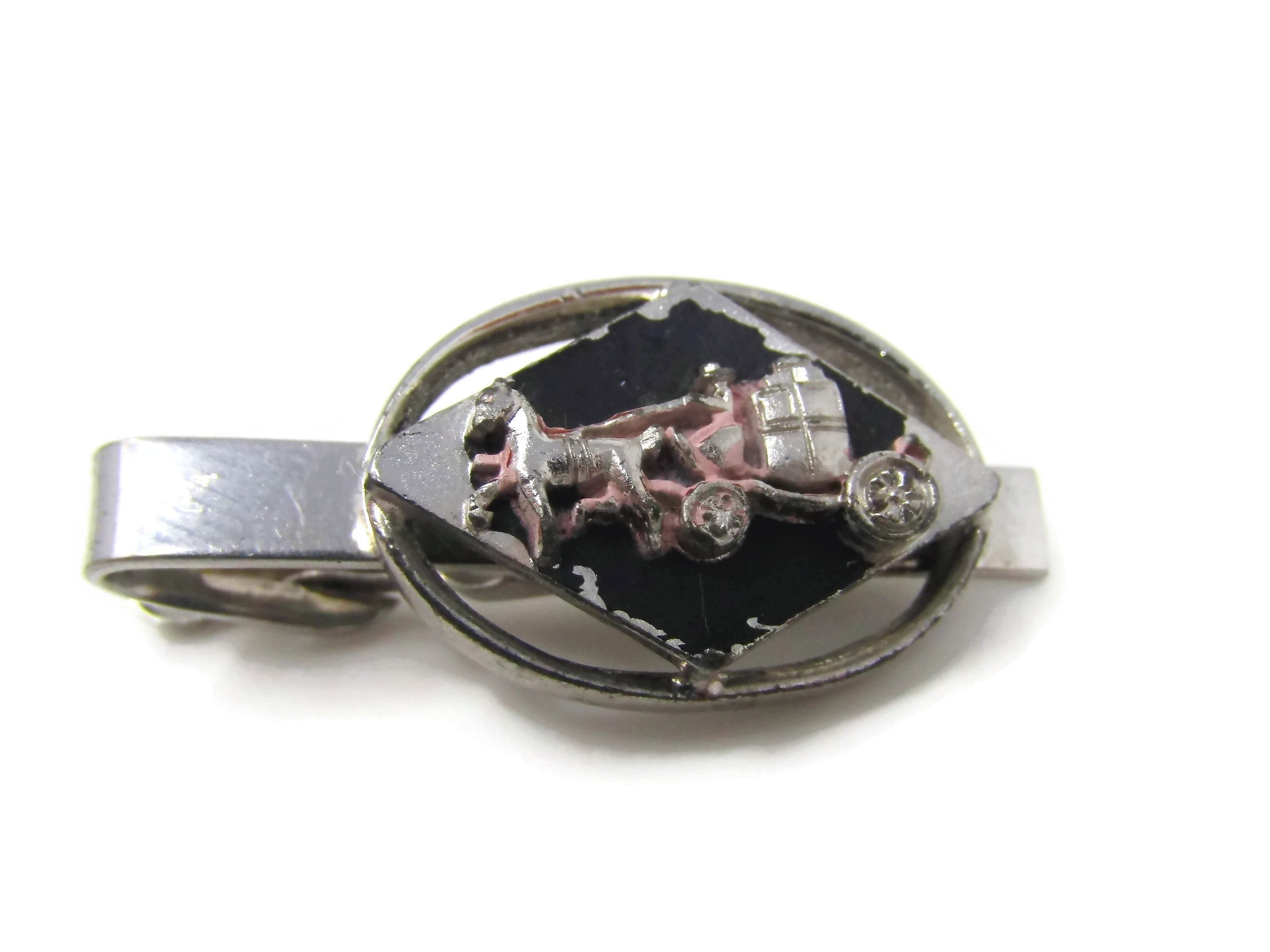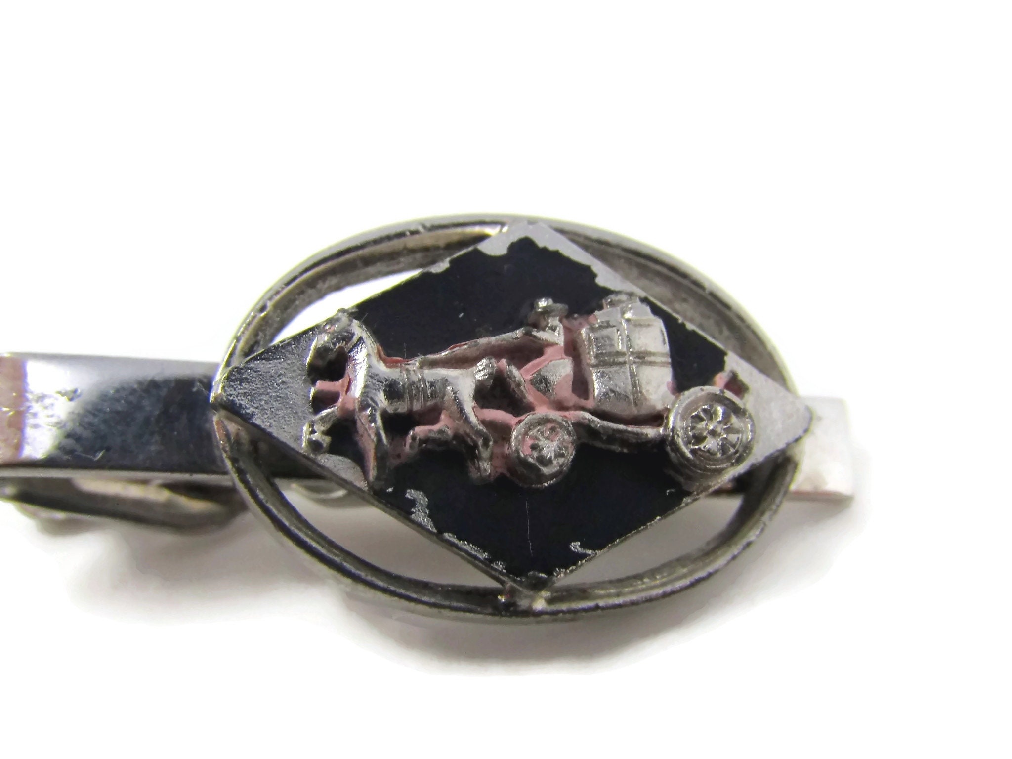 Vintage Tie Bar Clip: Horse Drawn Carriage Firetruck Design