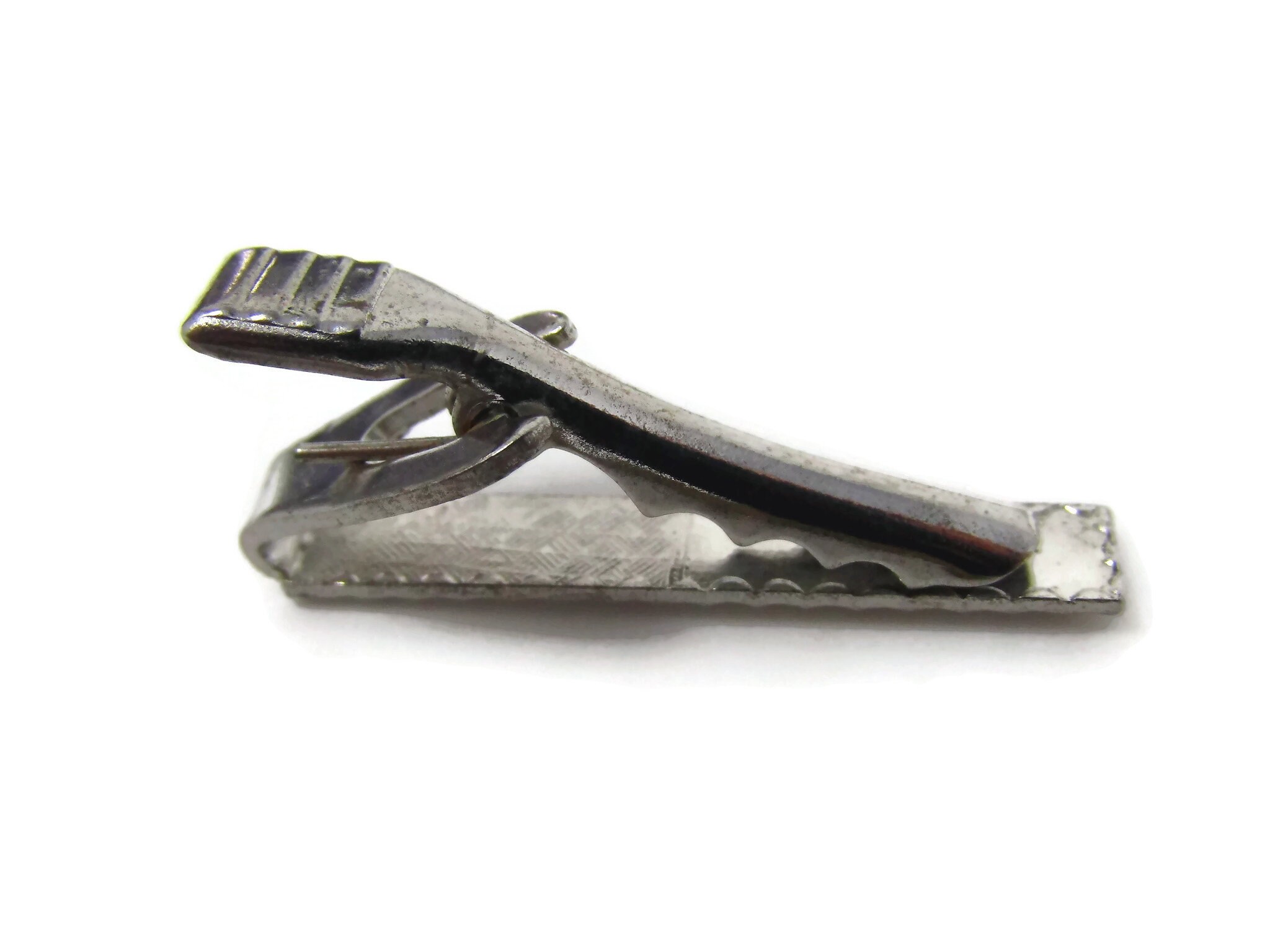 Vintage Tie Bar Clip: Clear Jewel Accent Silver Tone