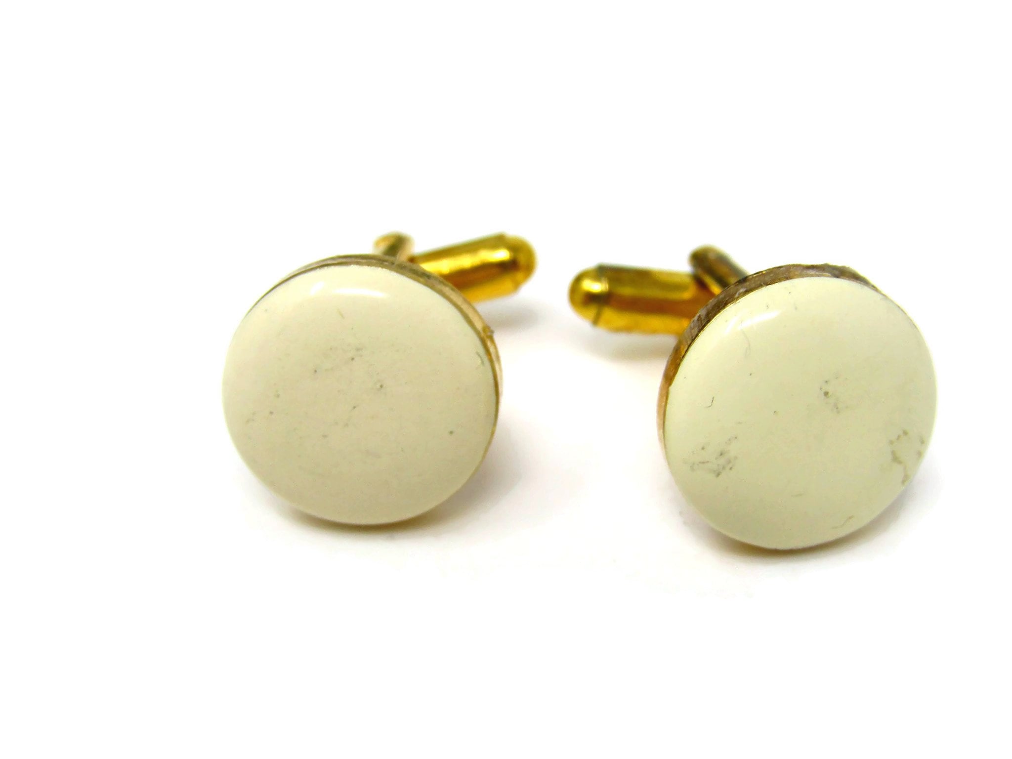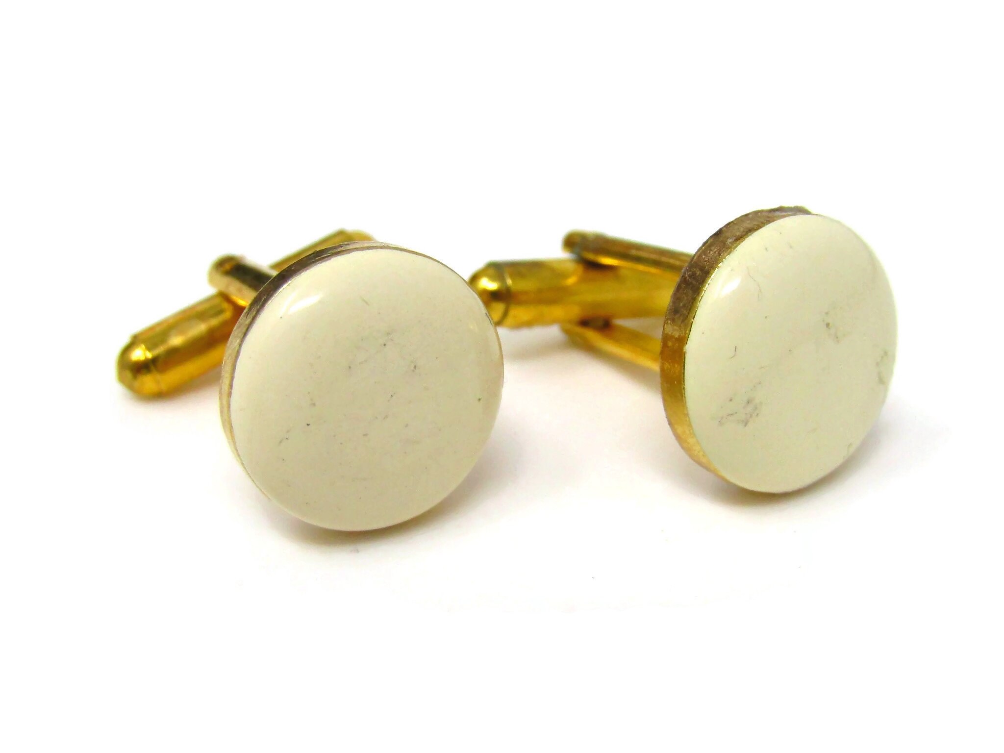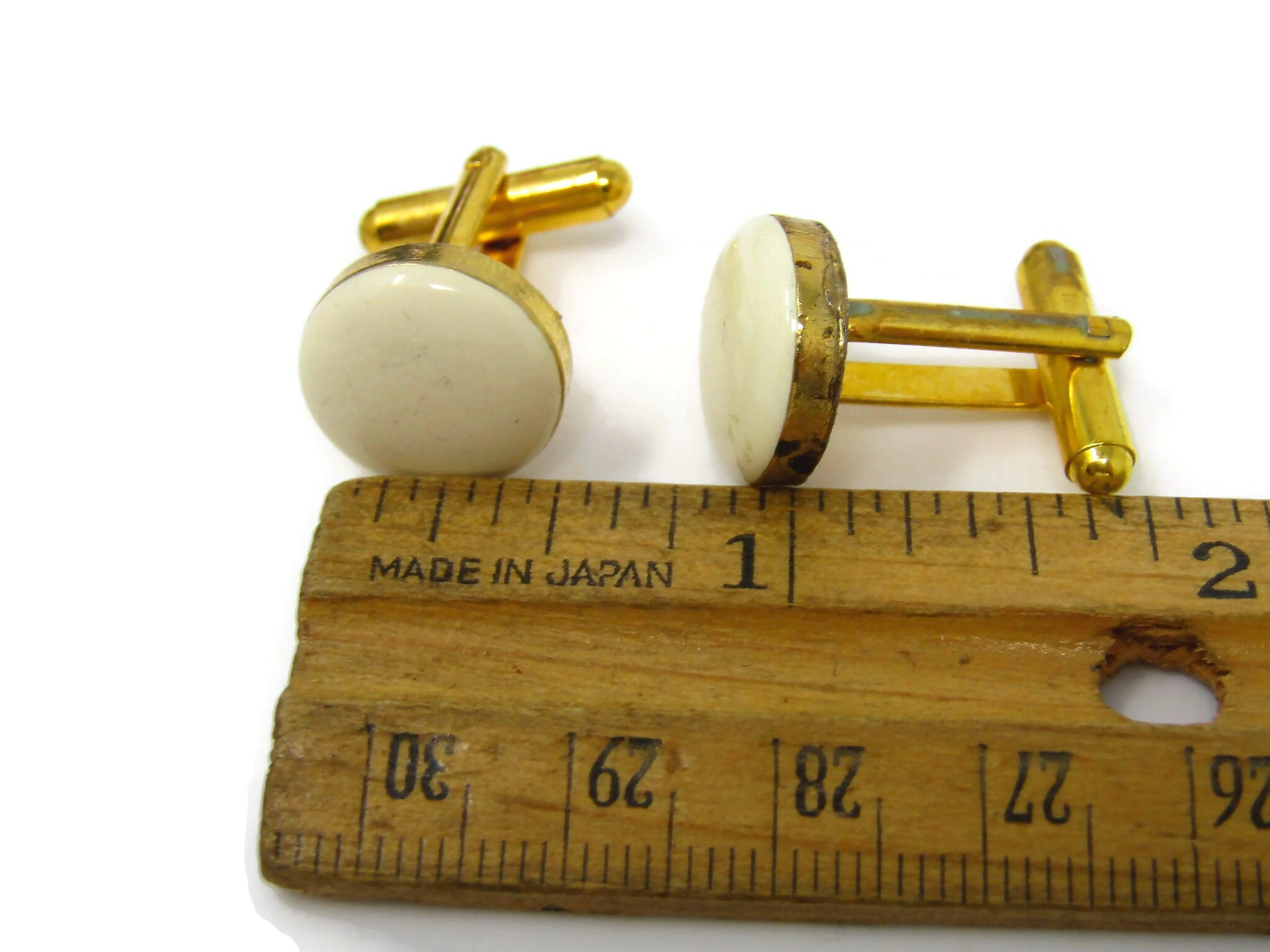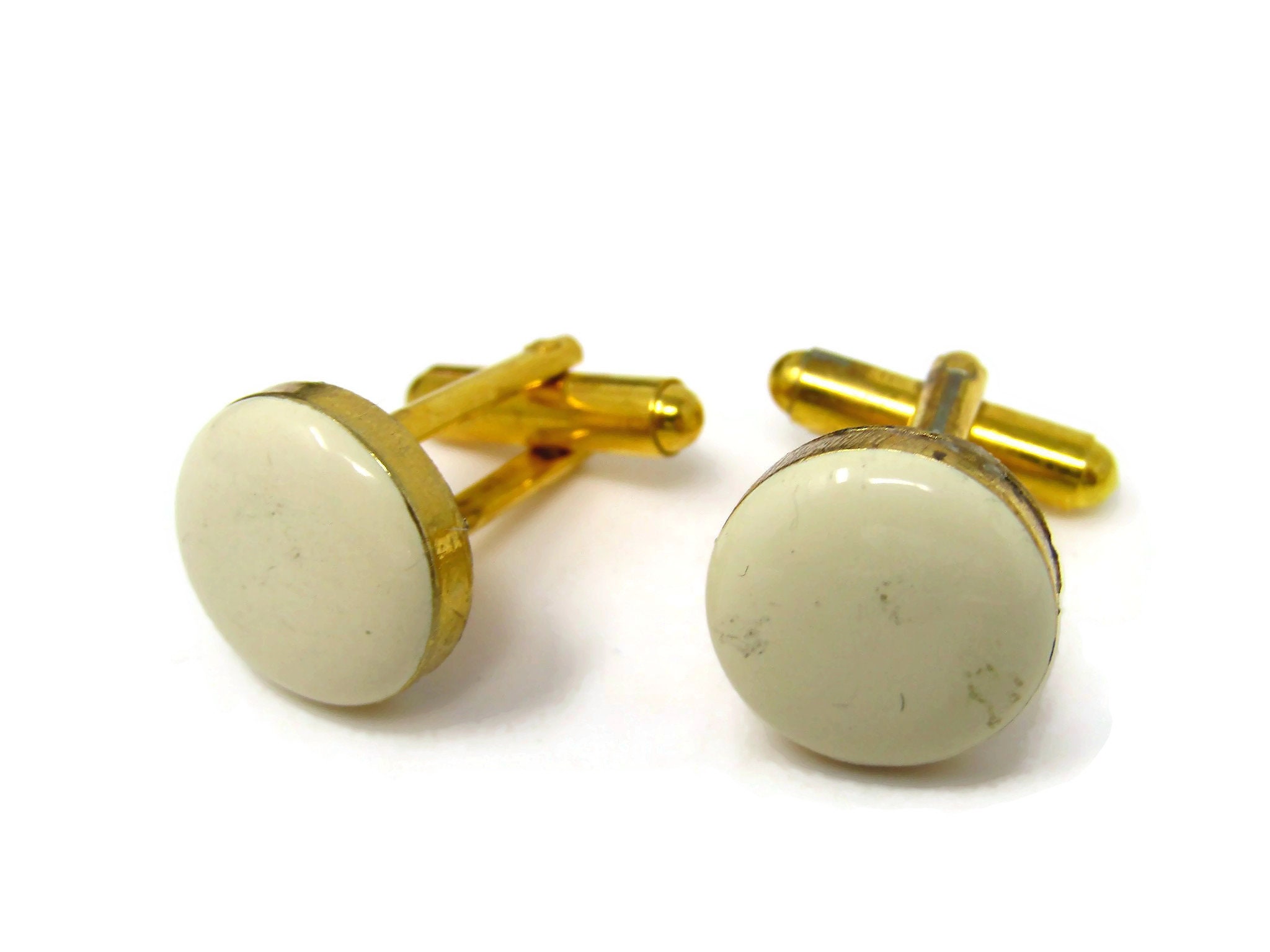 Vintage Cufflinks for Men: White Enamel Round Circle Design