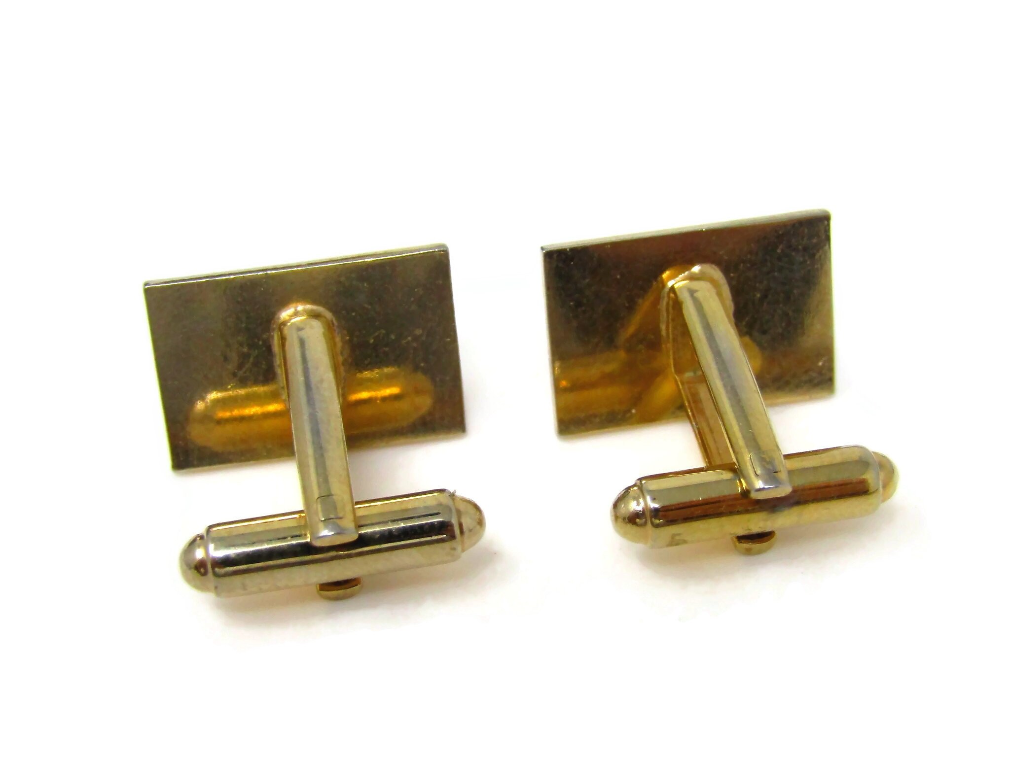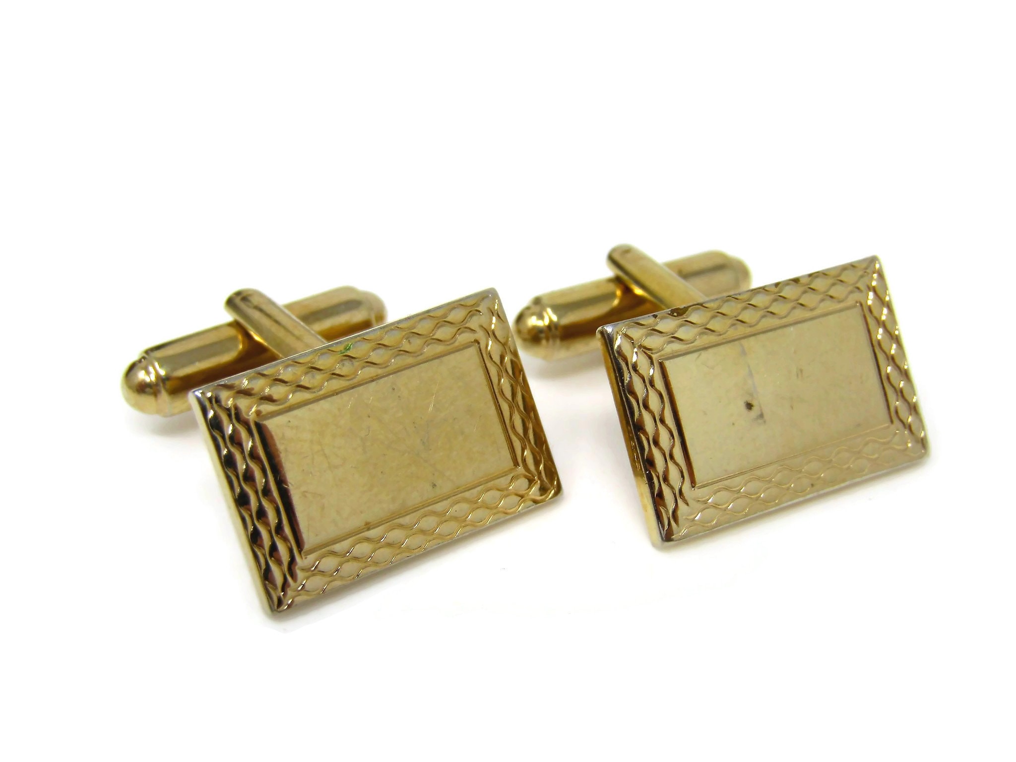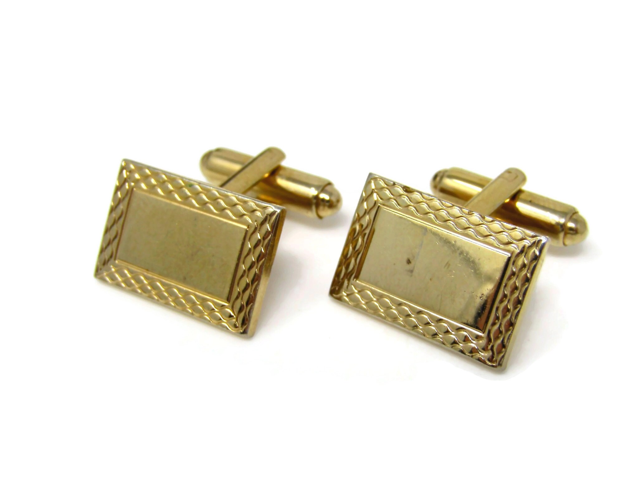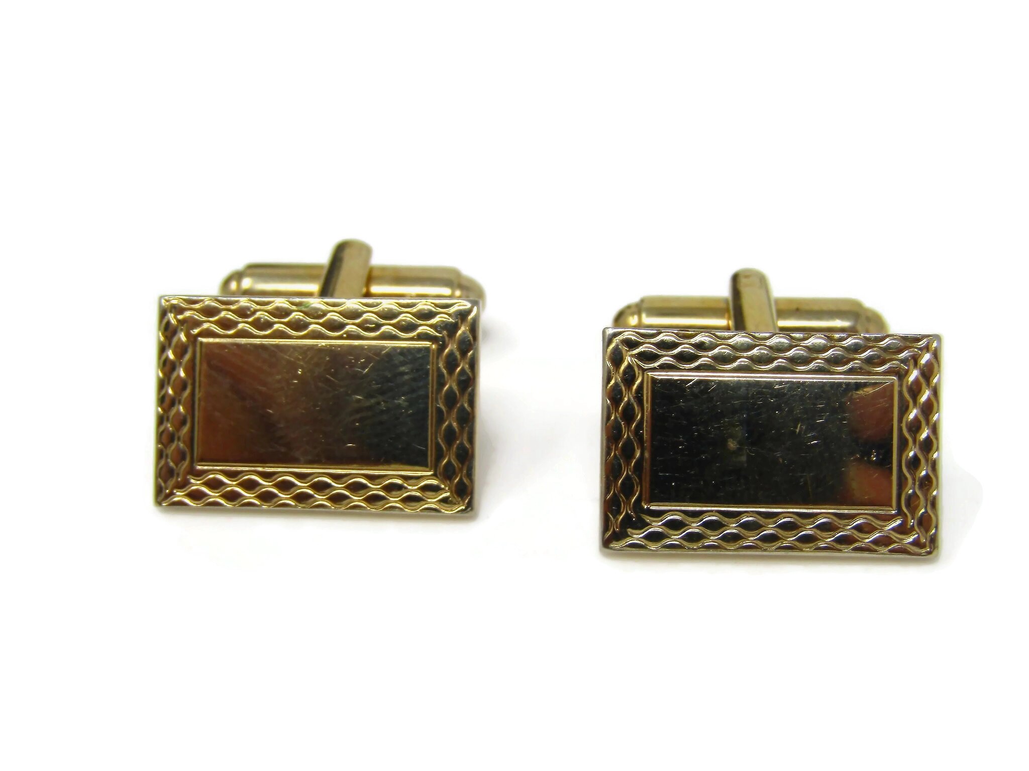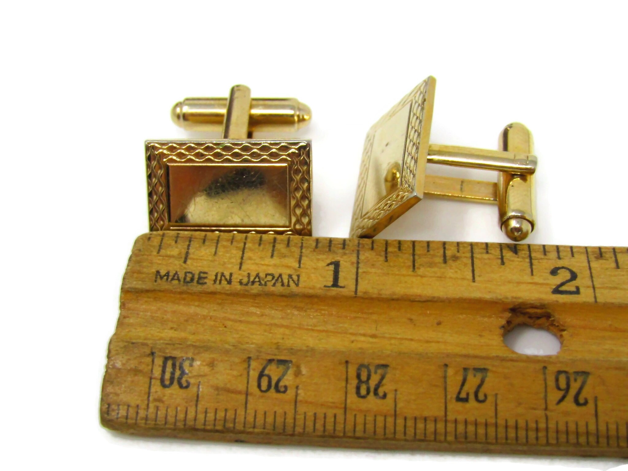 Vintage Cufflinks for Men: Gold Tone Rectangle Textured Border Smooth Center
