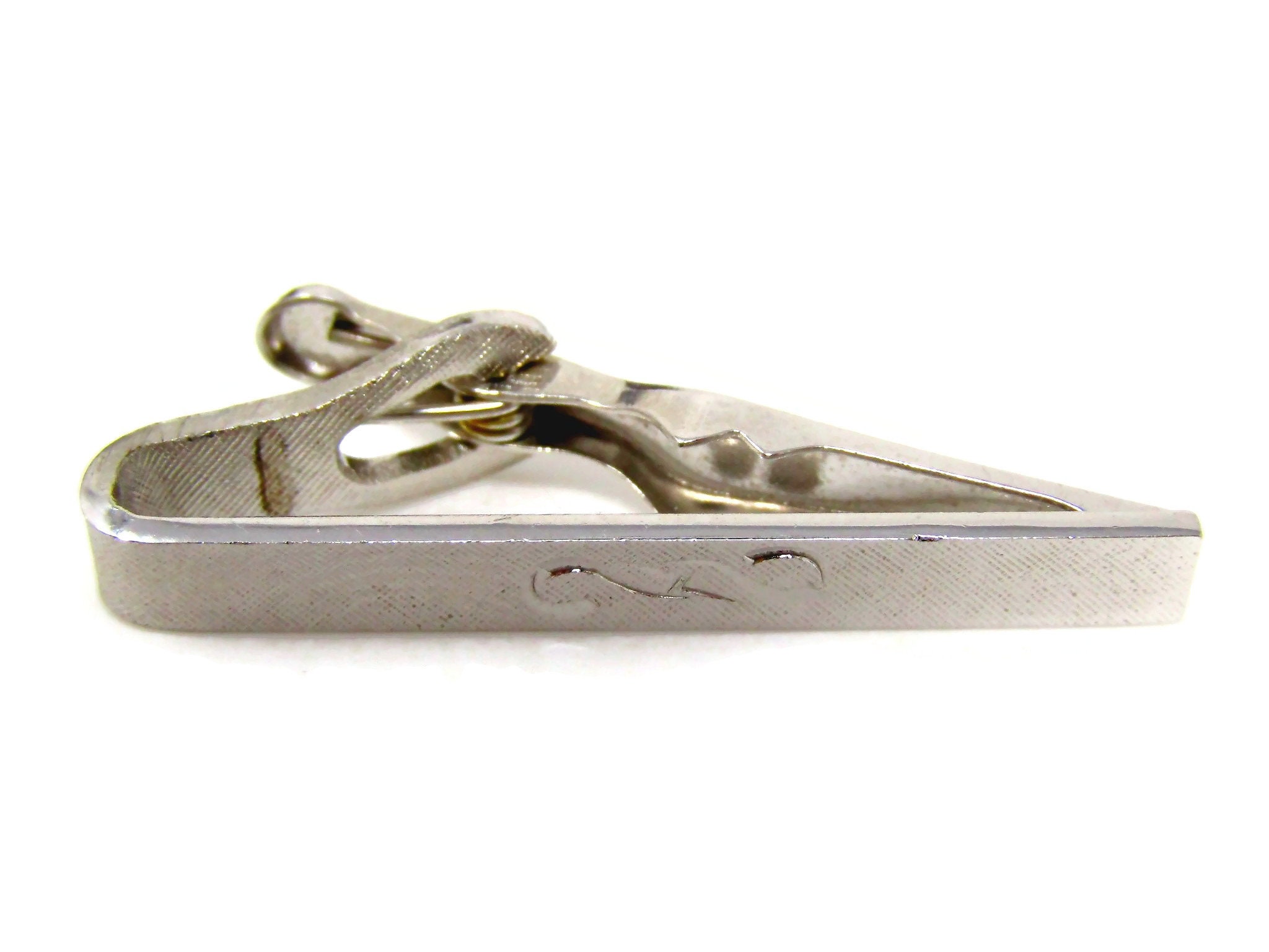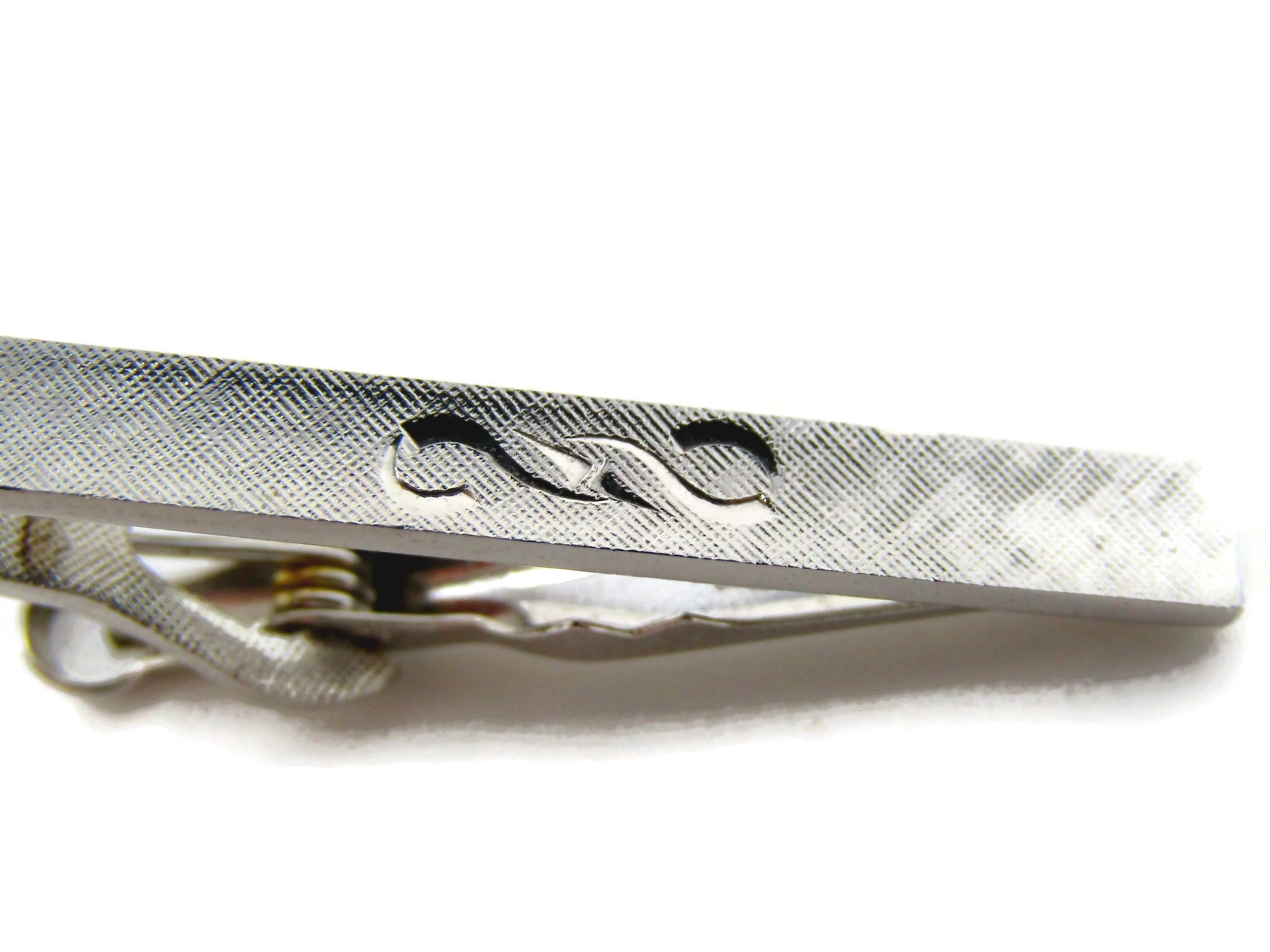 Swirl Etch Tie Clip Men's Vintage Tie Bar Textured Silver Tone