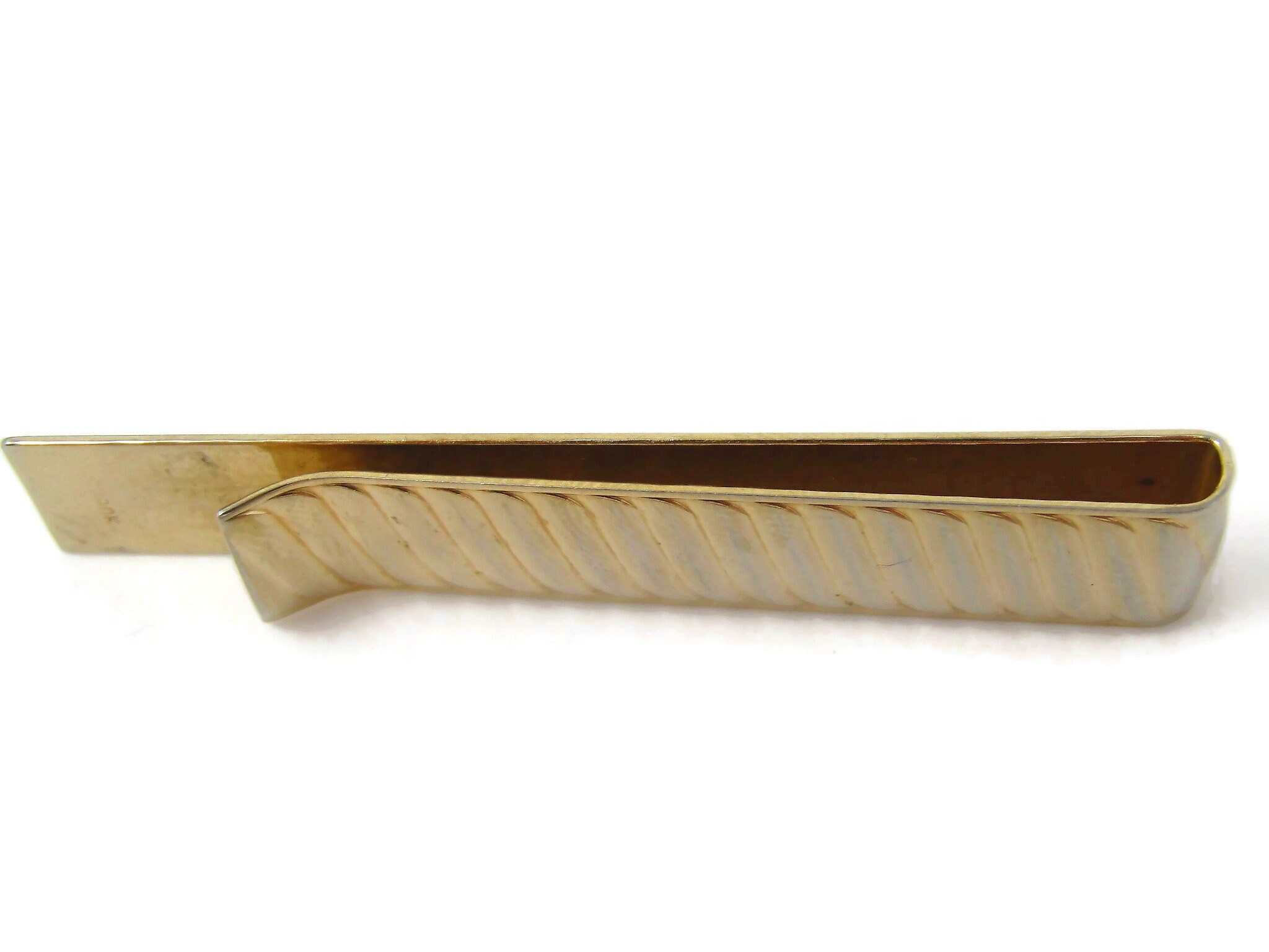Large Wavy Ridge Tie Clip Men's Vintage Tie Bar Nice Gold Tone