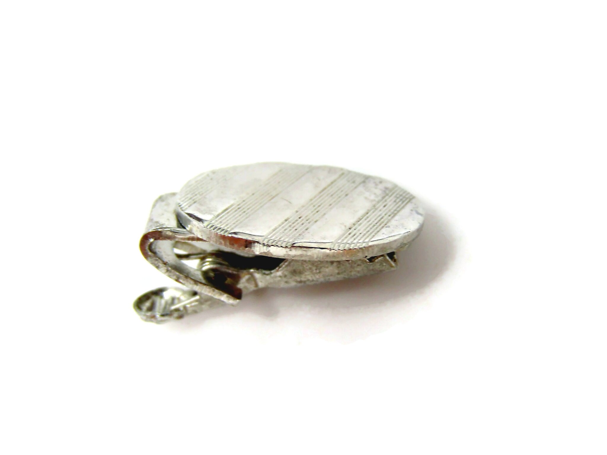 Striped Oval Tie Clips Men's Vintage Tie Bar Silver Tone