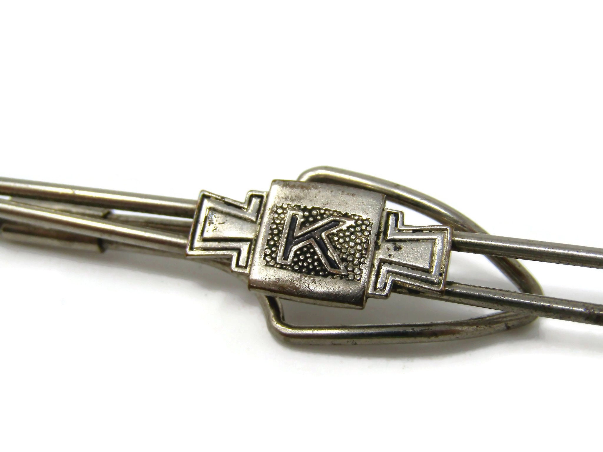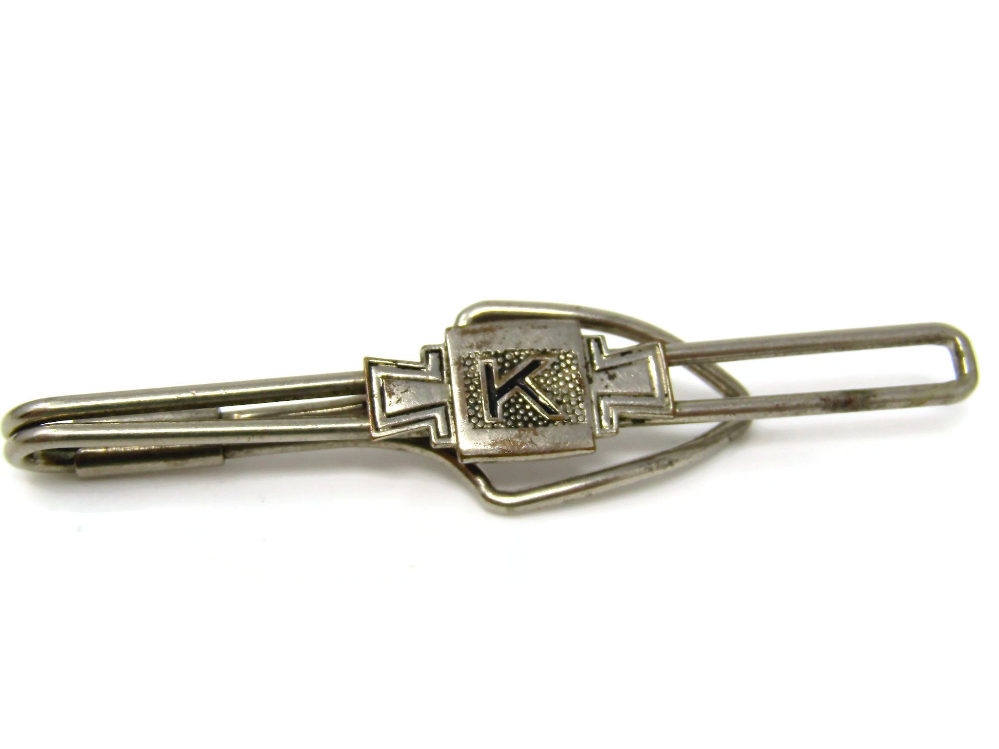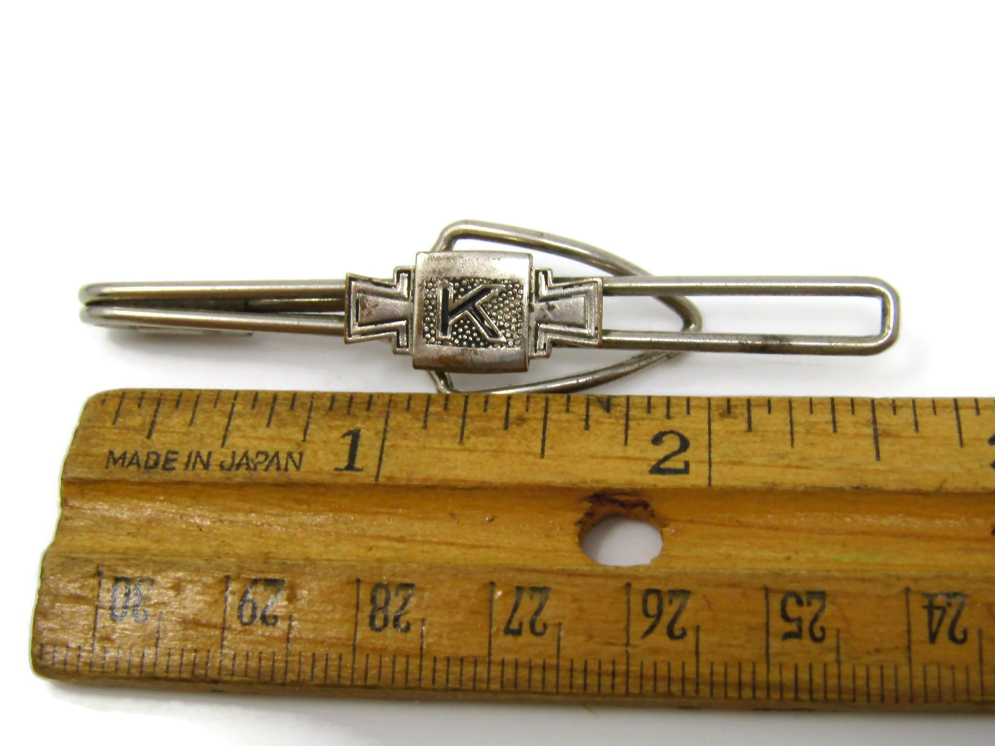 Rare Letter K Tie Clip For Men Vintage Tie Bar Nice Design Silver Tone