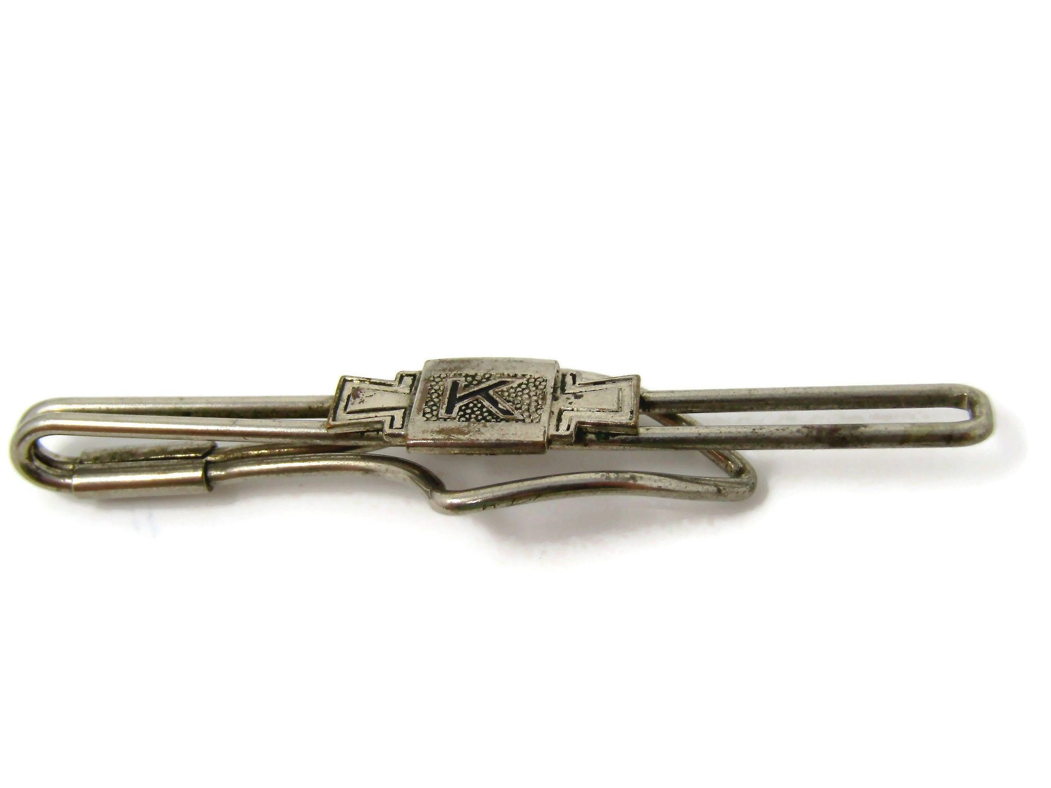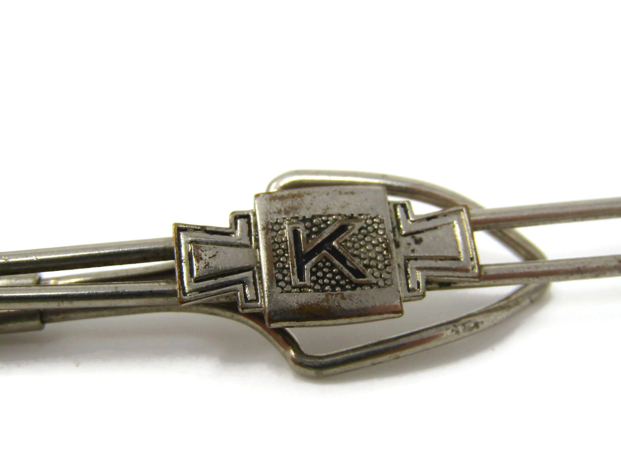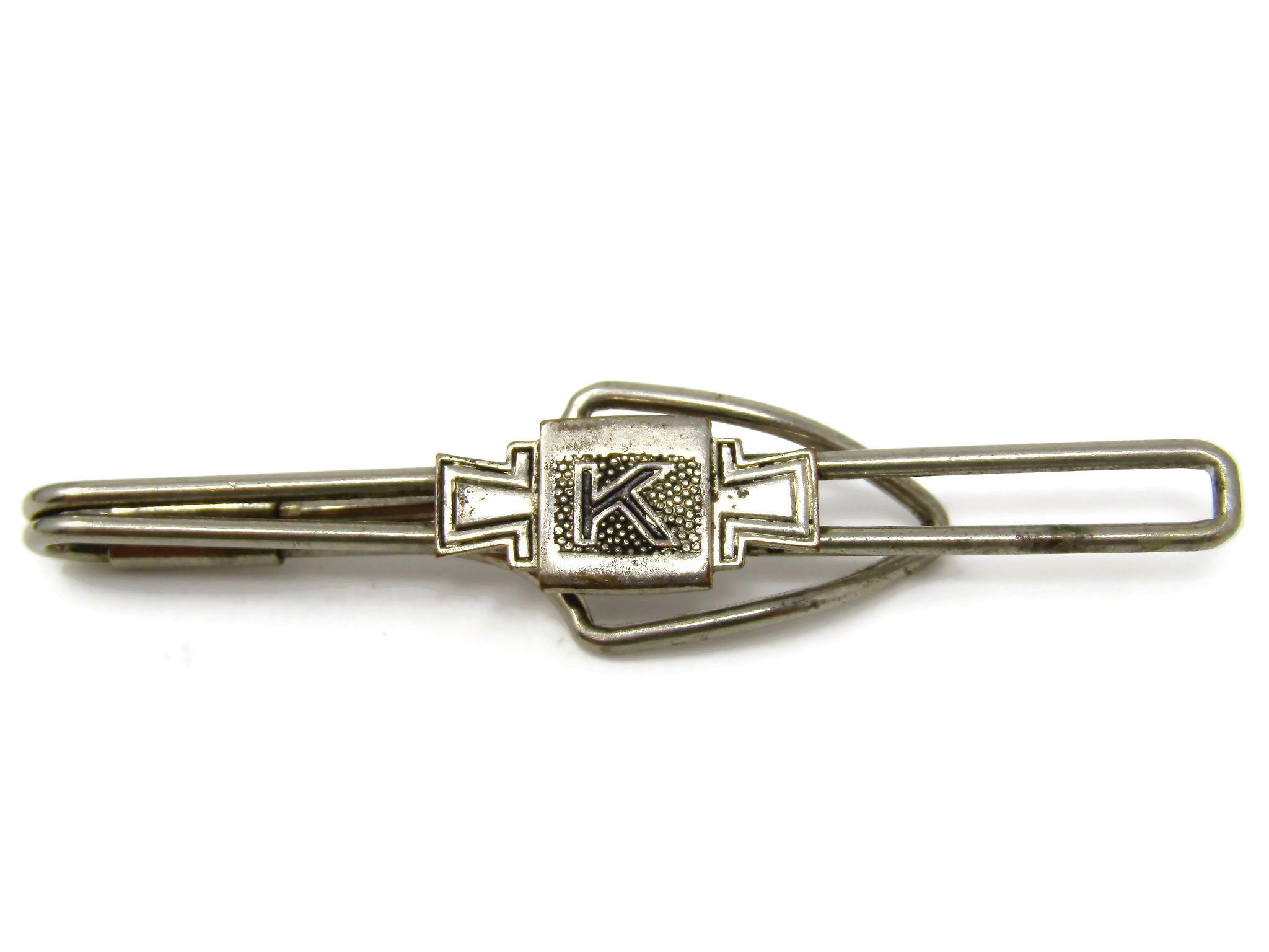 Rare Letter K Tie Clip For Men Vintage Tie Bar Nice Design Silver Tone