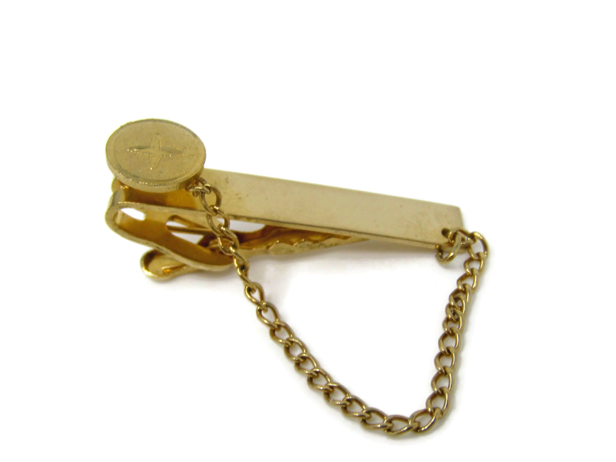 Star Etch Chain Tie Clip For Men Vintage Tie Bar Nice Design Gold Tone Gift for Dad, Brother, Husband, Son