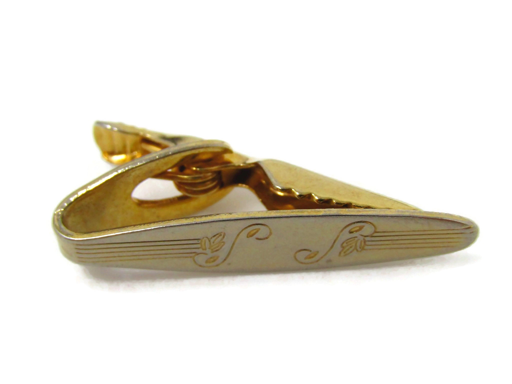 Stem & Flower Tie Clip Men's Vintage Tie Bar Gold Tone Nice Design