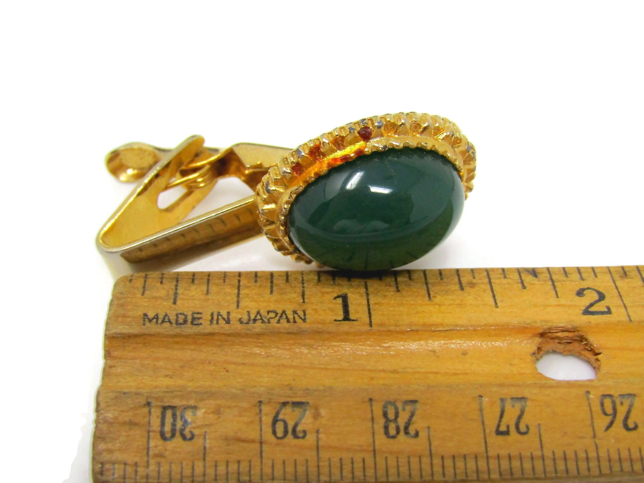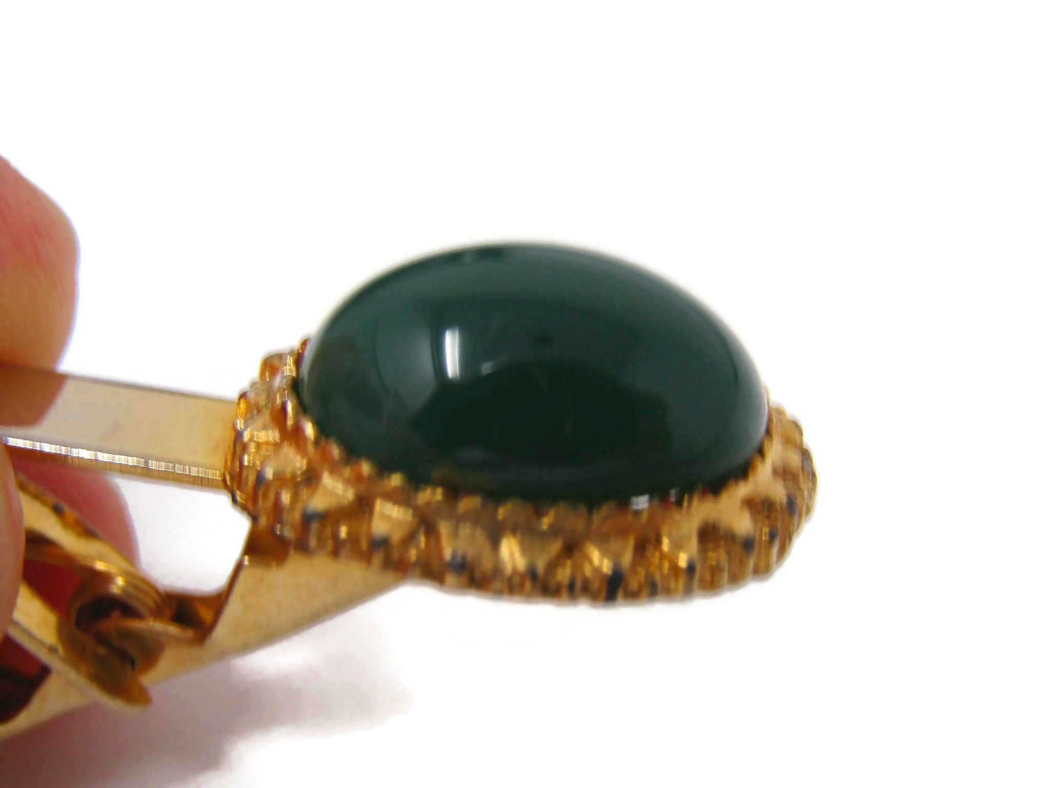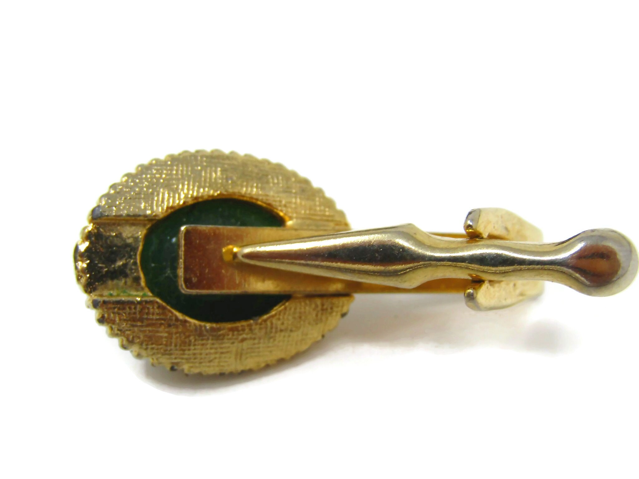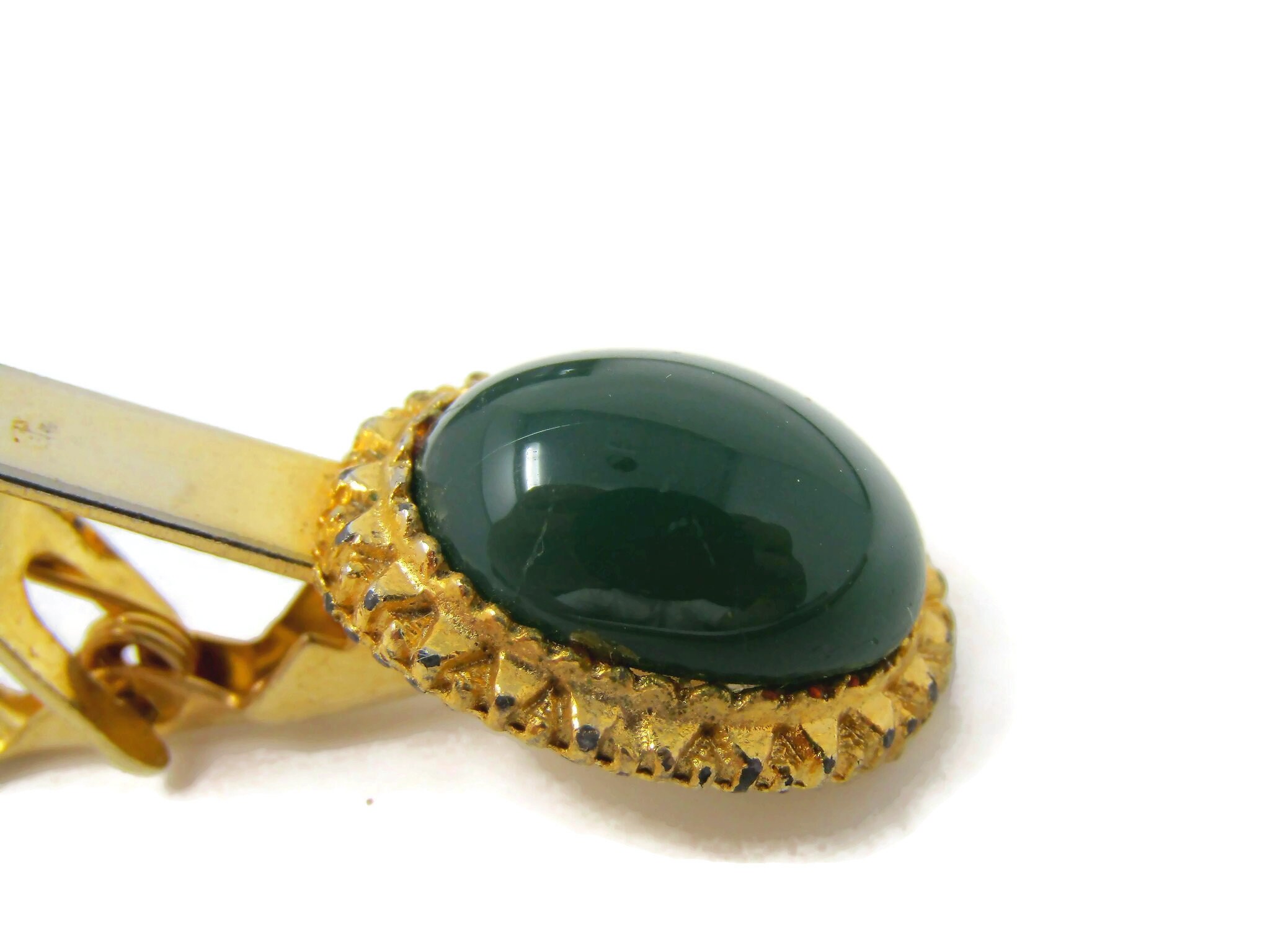 Green Round Oval Tie Clips Men's Vintage Tie Bar Gold Tone