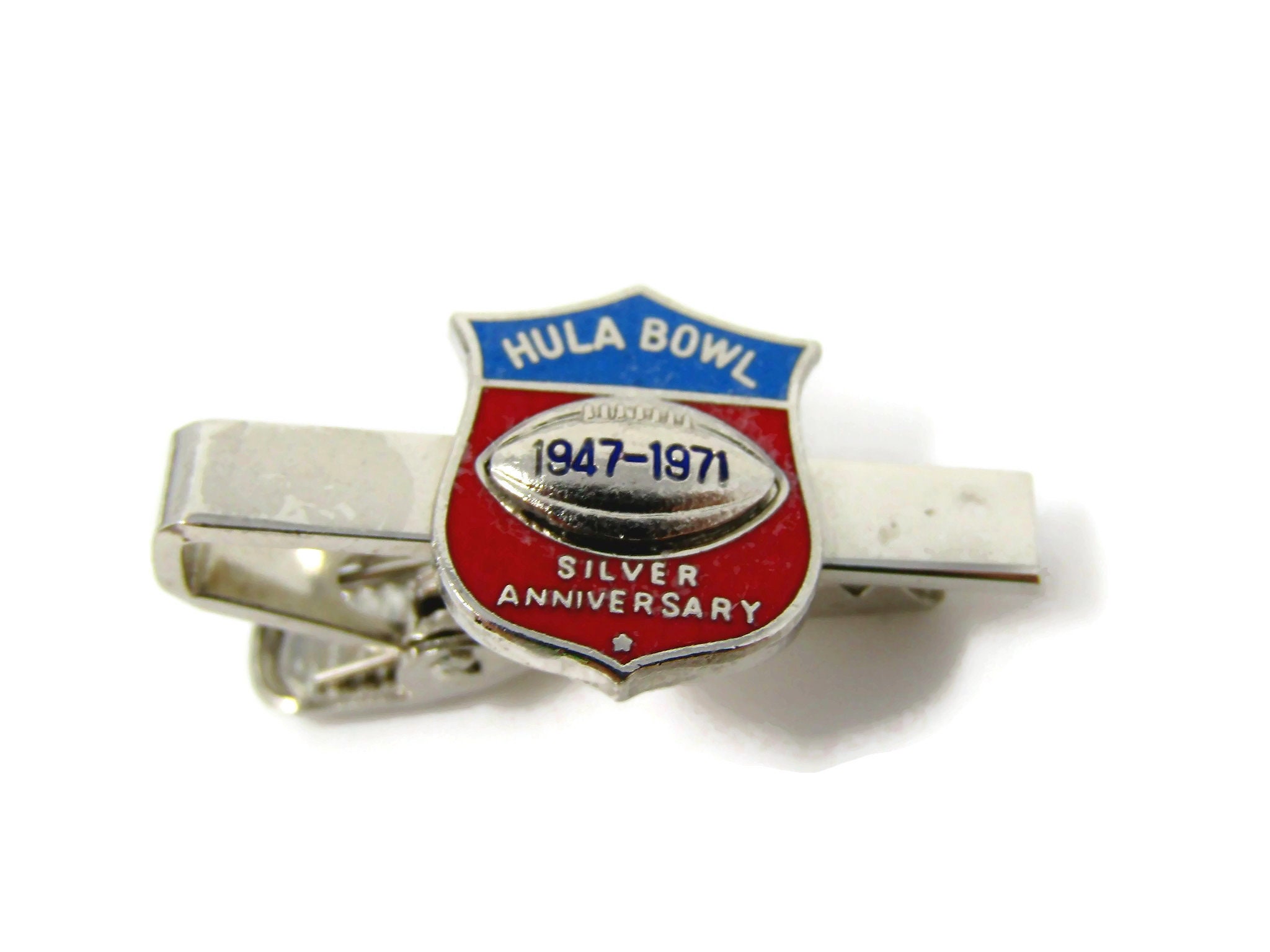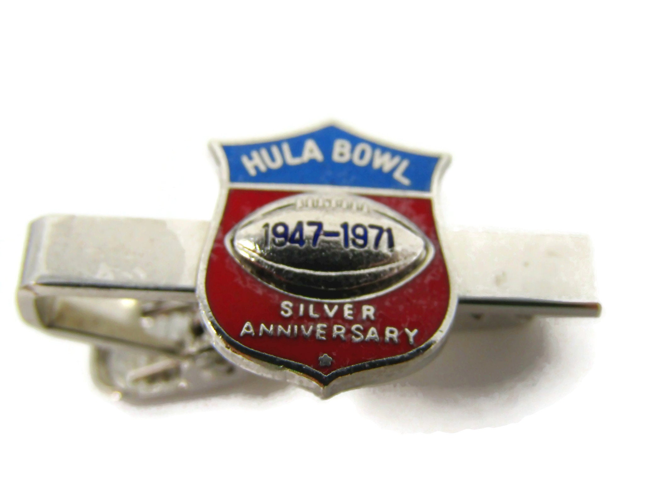 Rare Hula Bowl Football 1971 Tie Clip Vintage Tie Bar Nice Design Silver Tone Gift for Dad, Brother, Husband