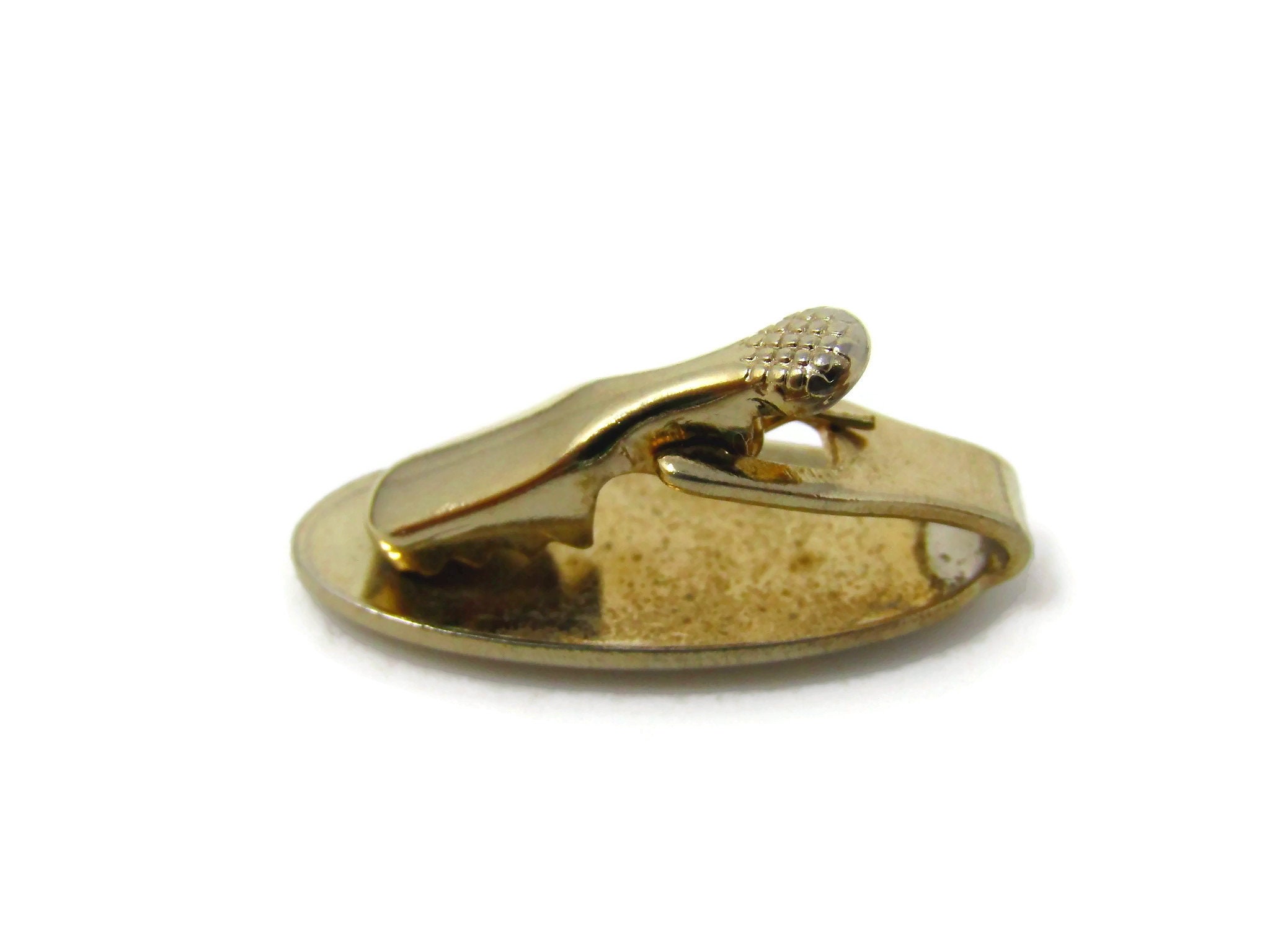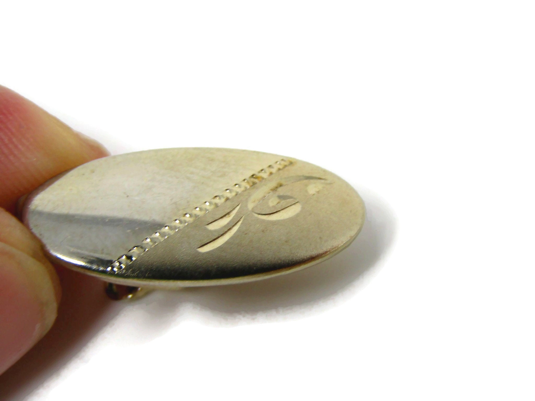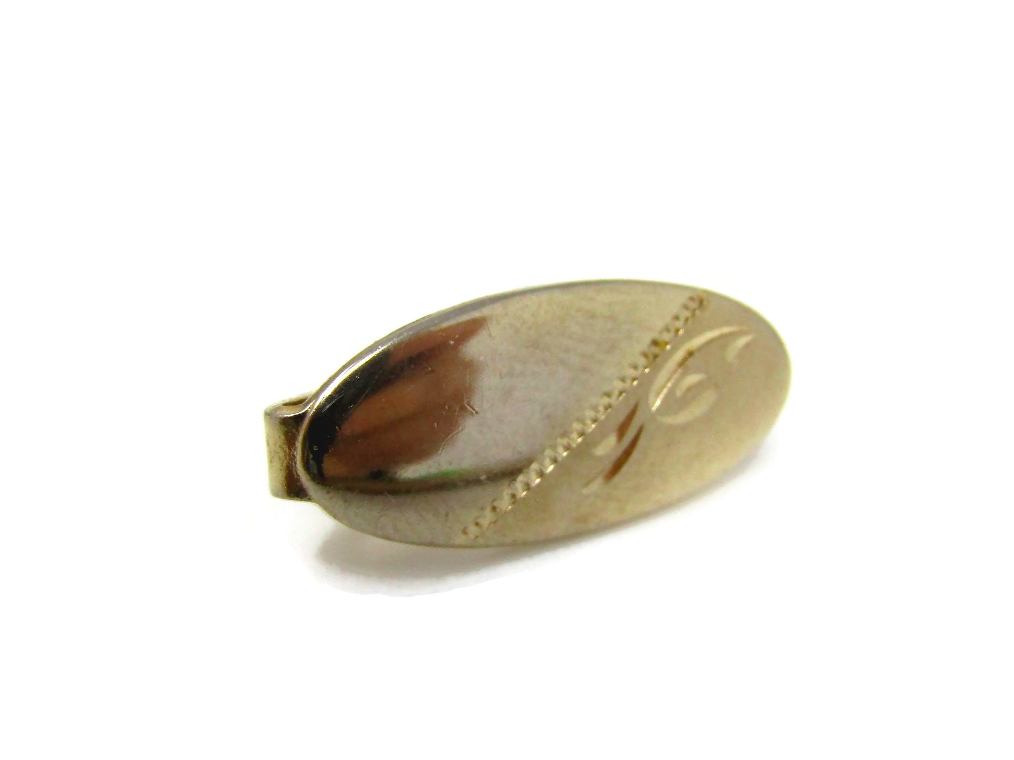 Etched Oval Tie Clip Vintage Tie Bar Nice Design Gold Tone Gift for Dad, Brother, Husband