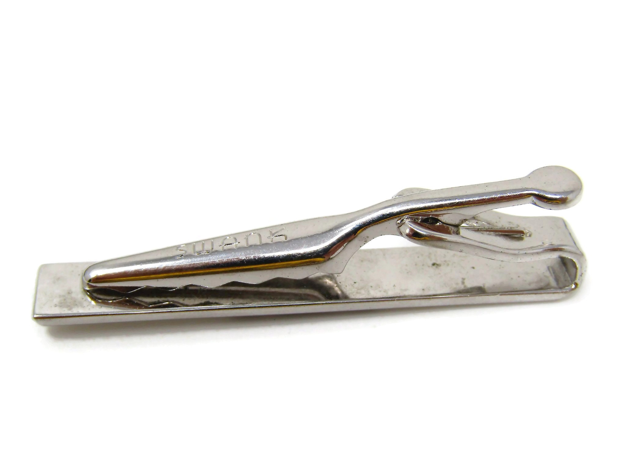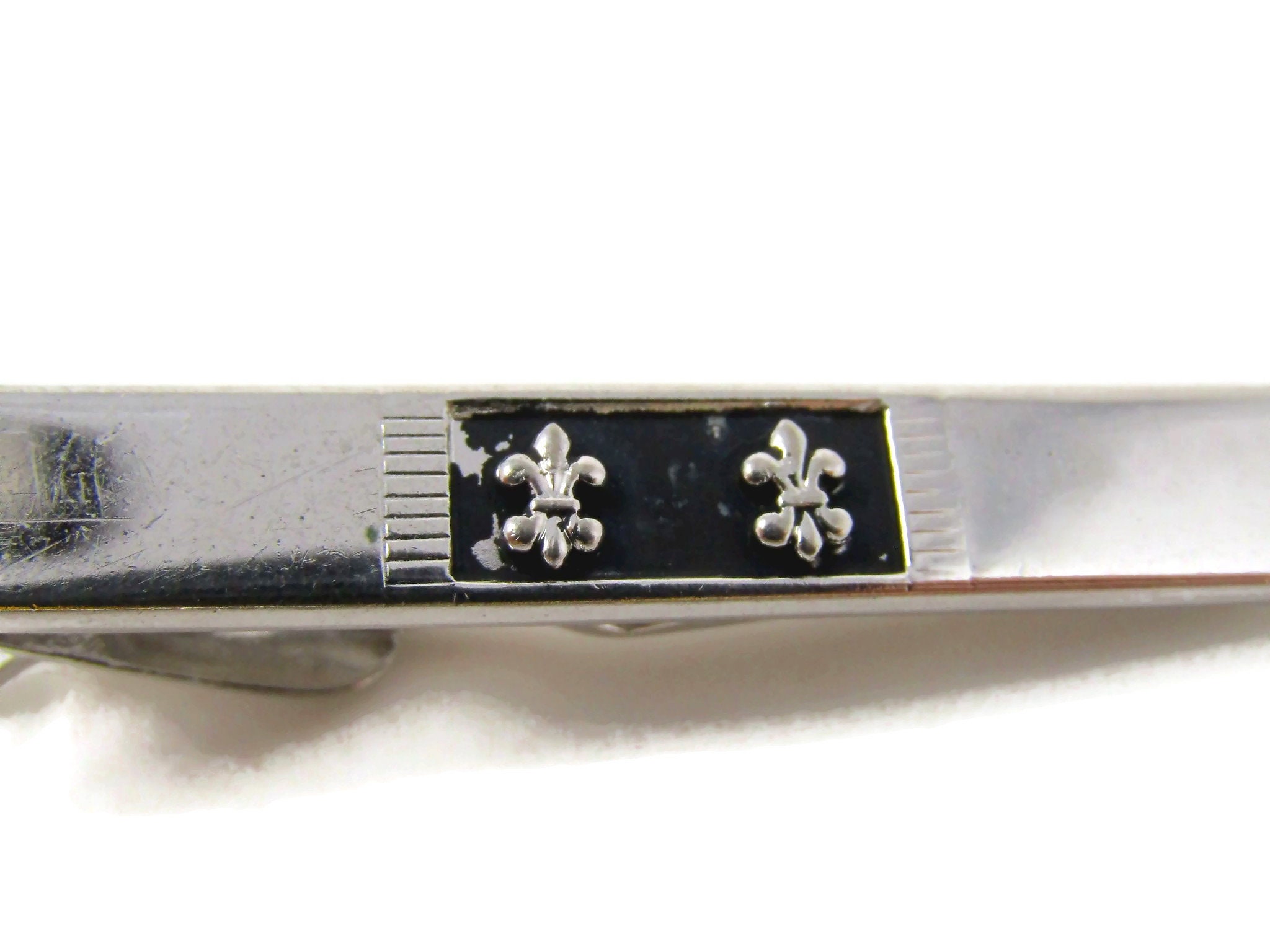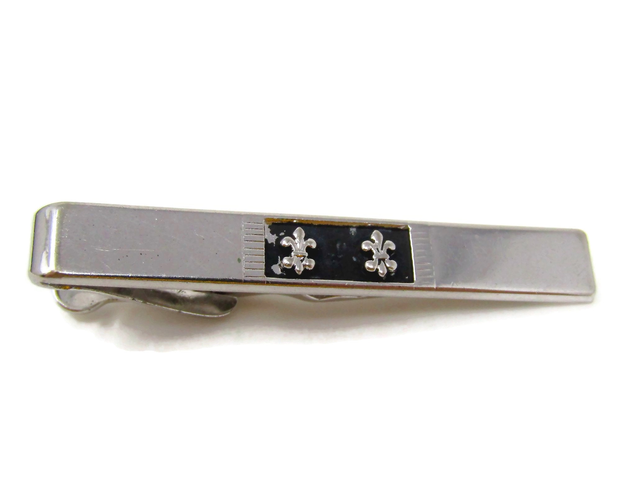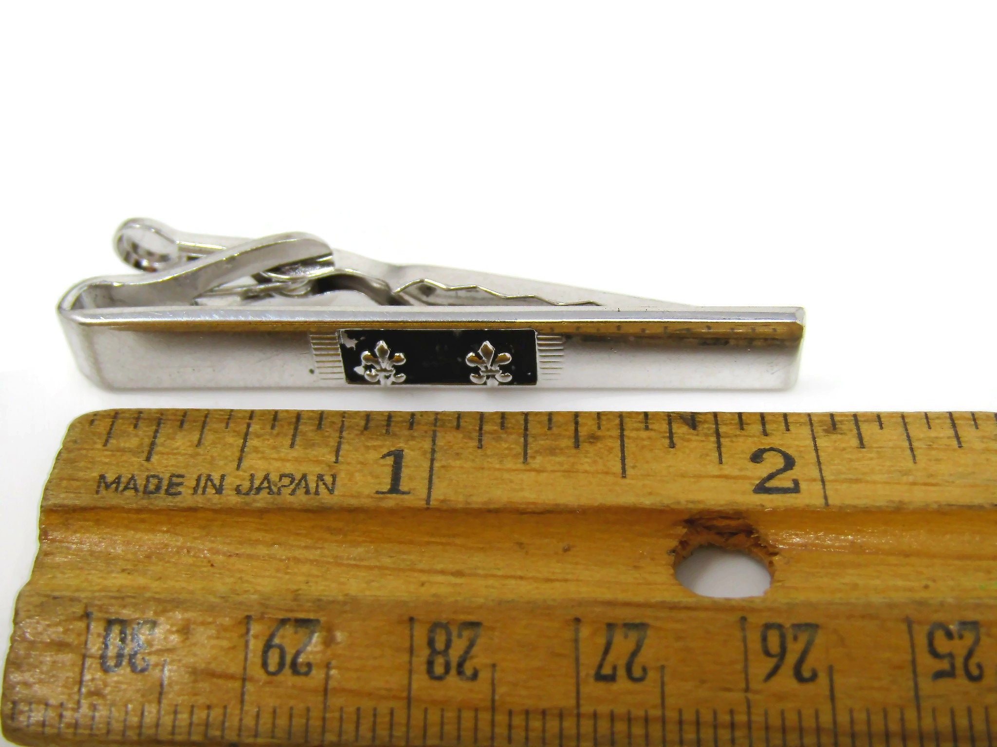 Cool Tie Bar Tie Clip Vintage Double Fleur de Lis Silver Tone