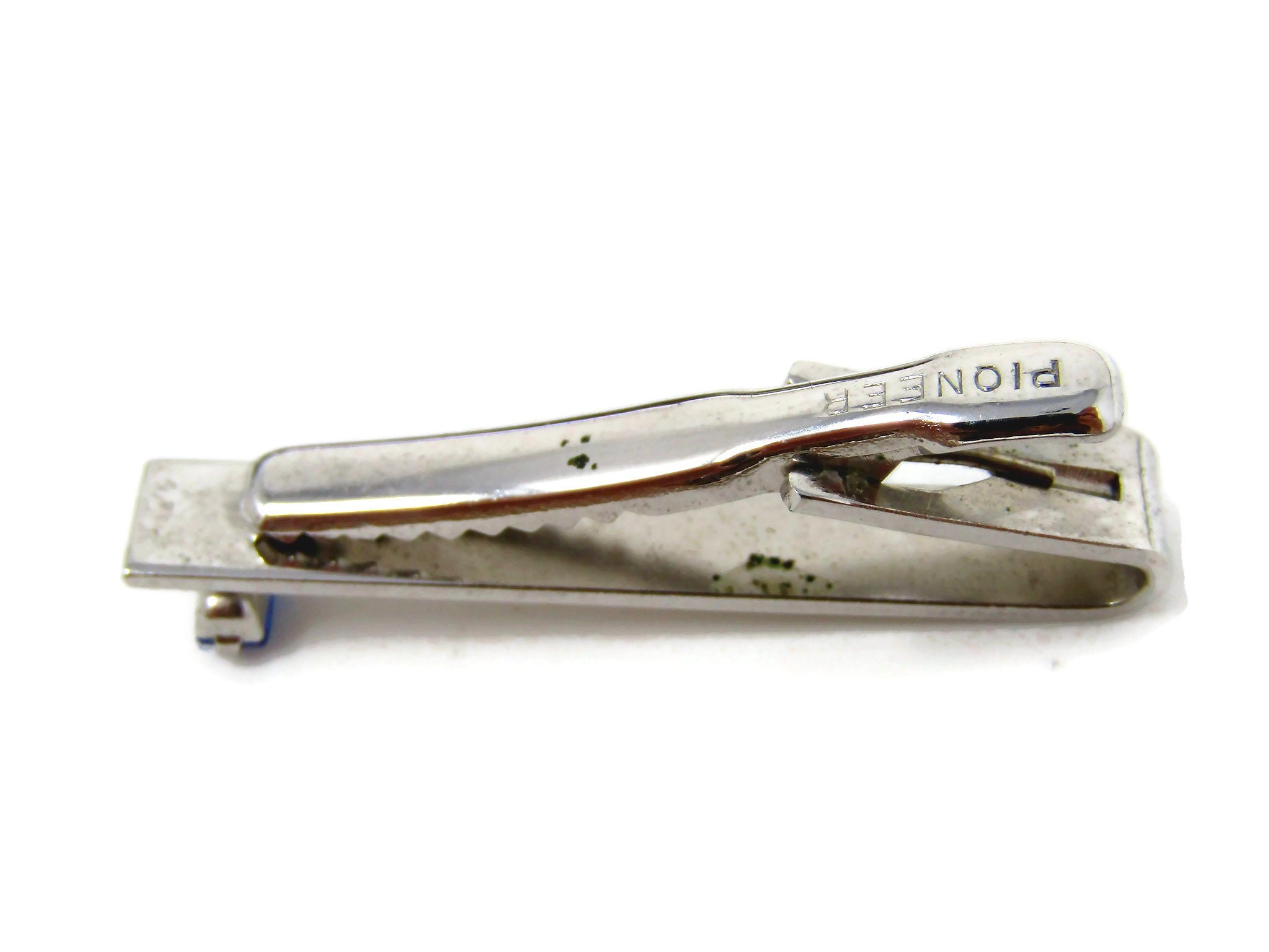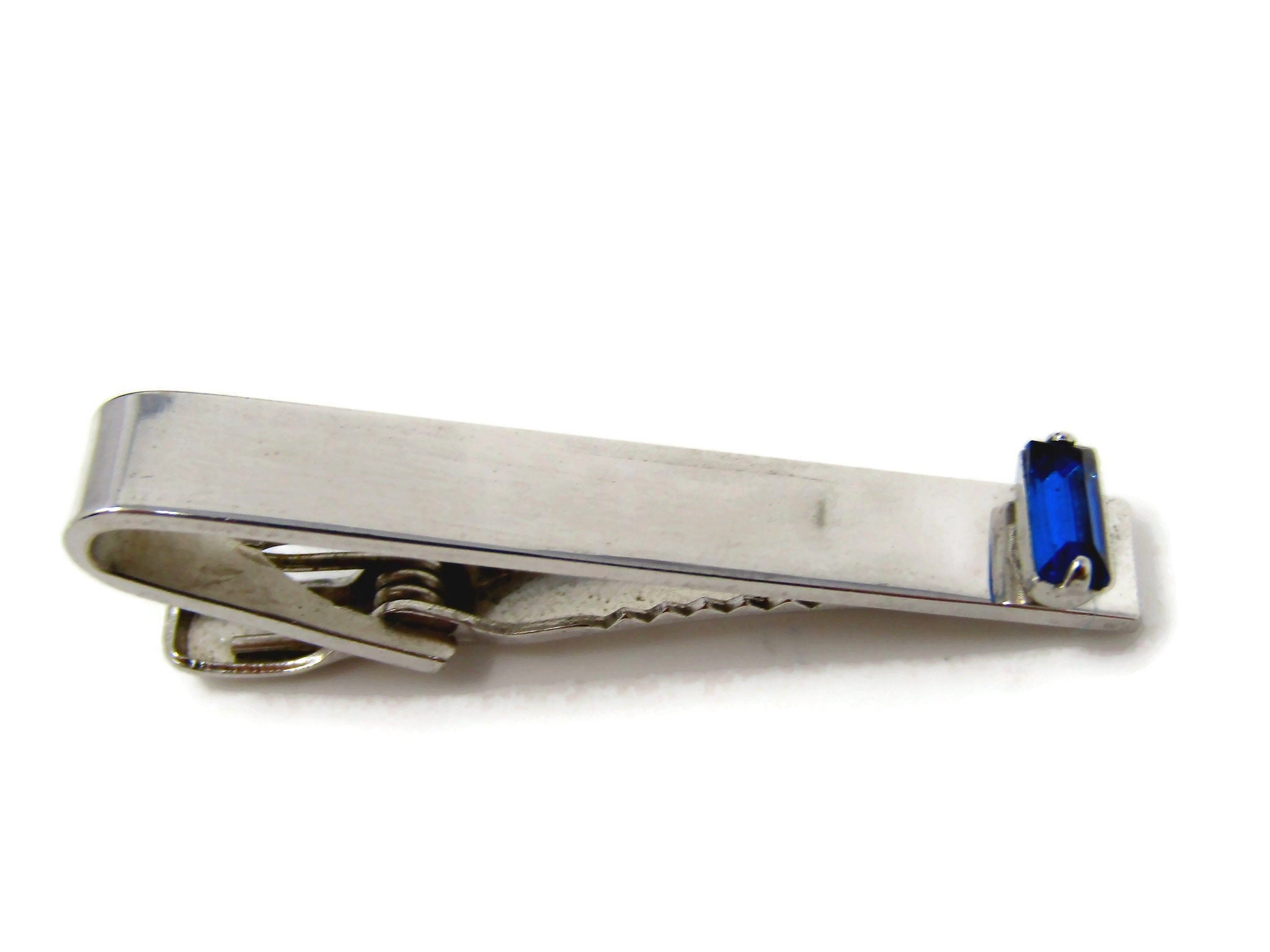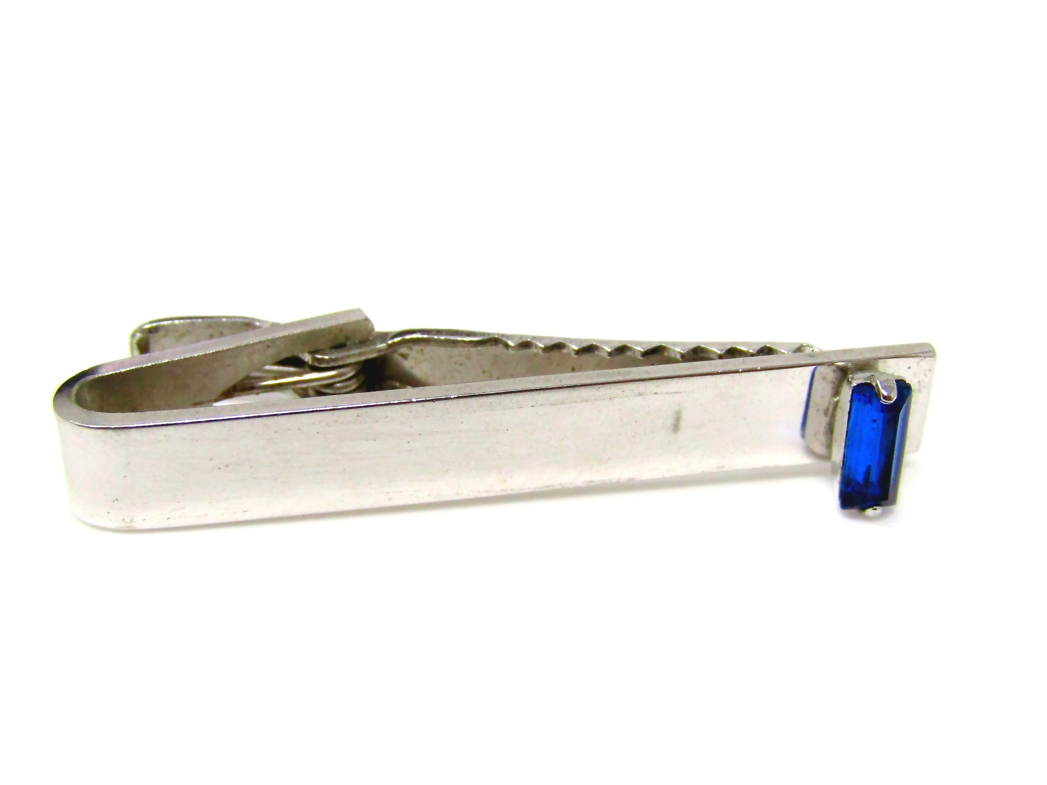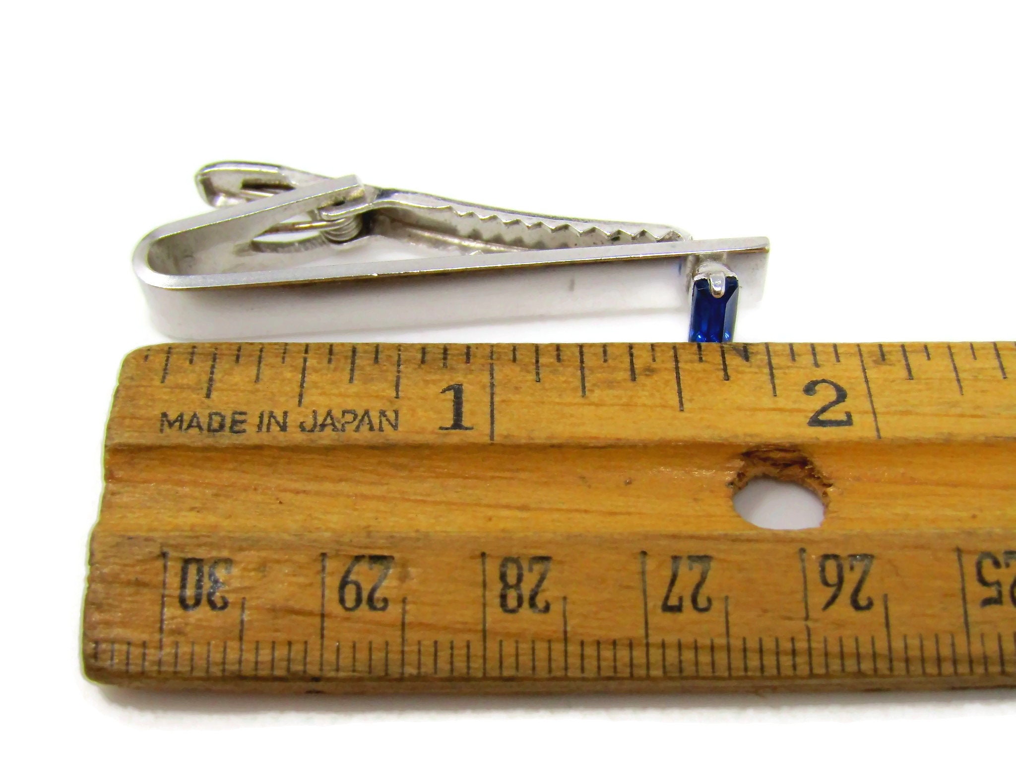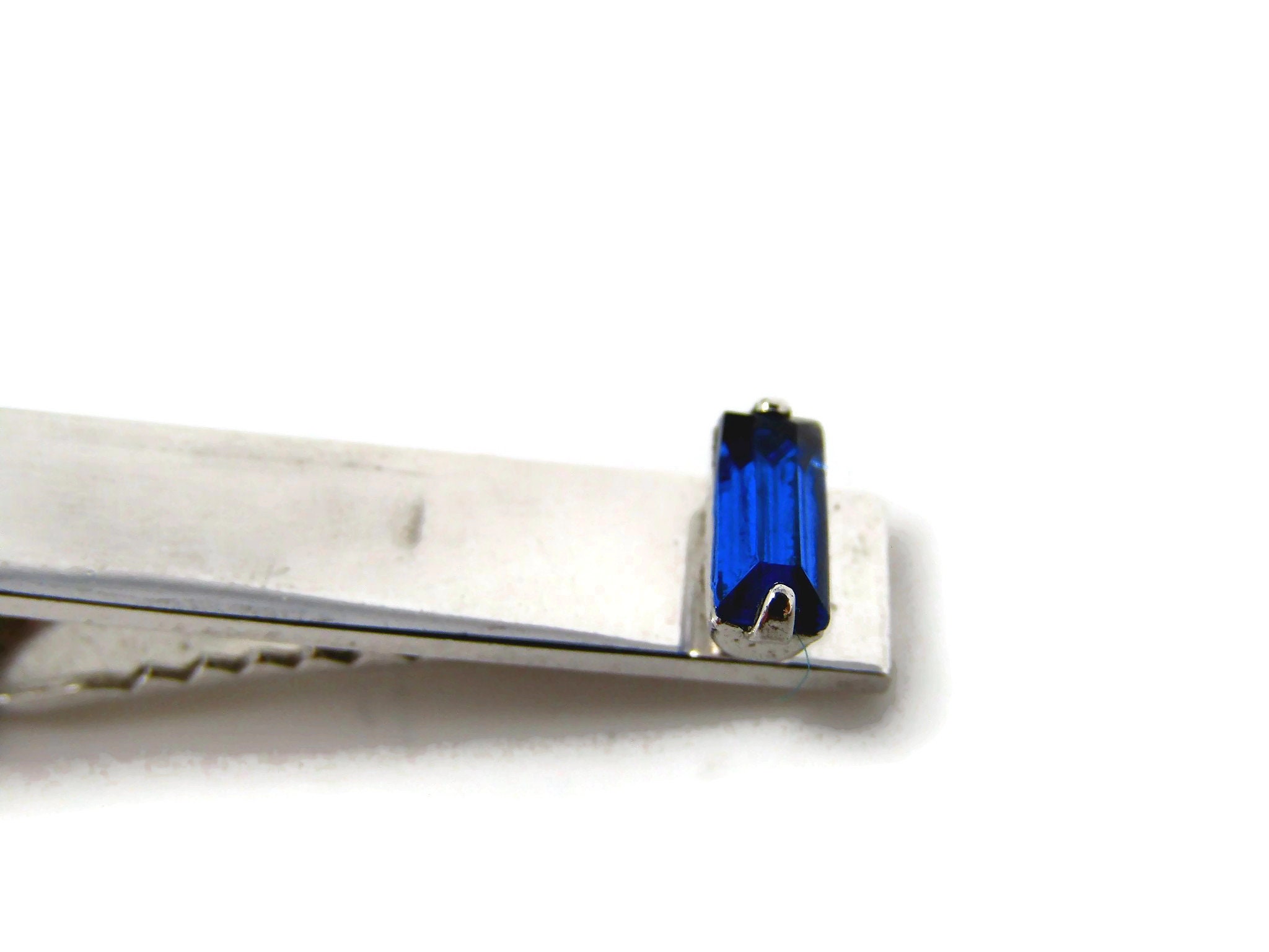 Cool Tie Bar Tie Clip Vintage Blue Jewel Silver Tone Gift for Dad, Husband, Son, Boyfriend