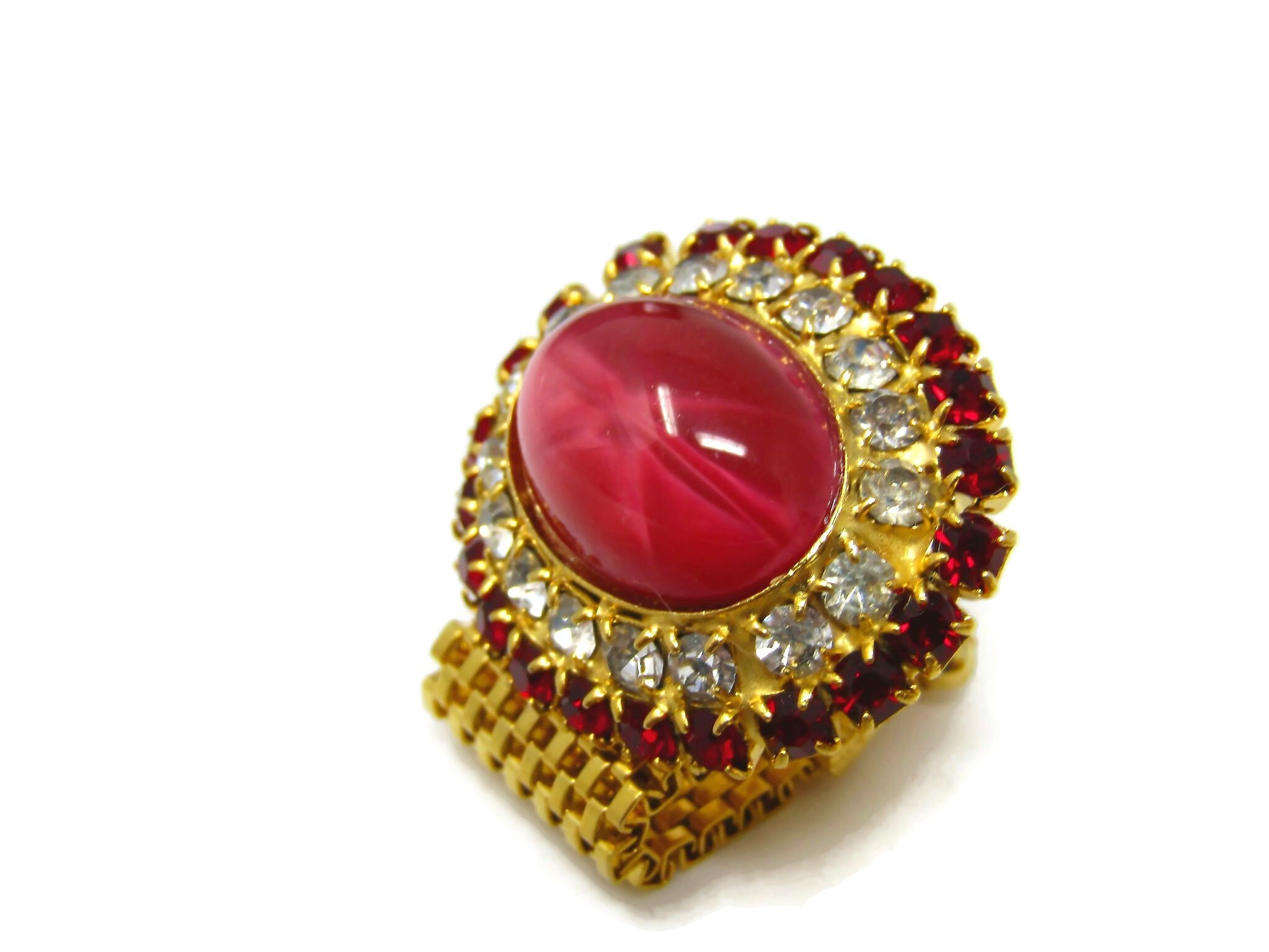 Men's Cufflinks and Tie Tack Pin Set Vintage Stunning Pink, Red & Clear Jewels High Quality Beautiful