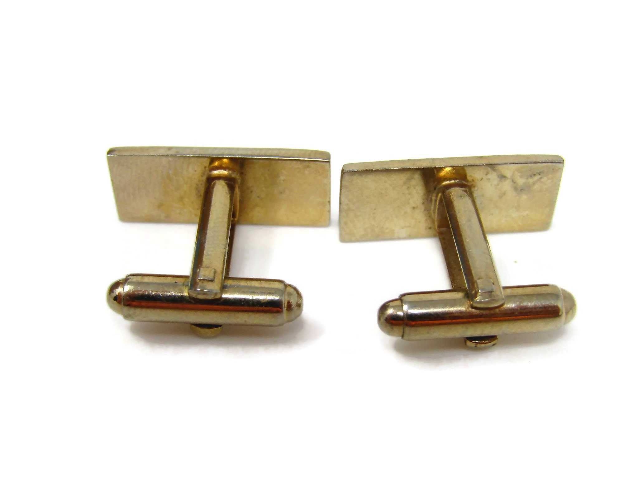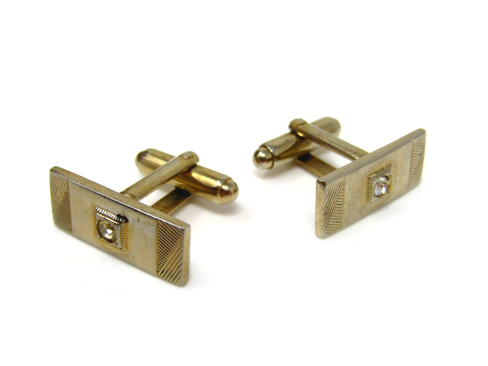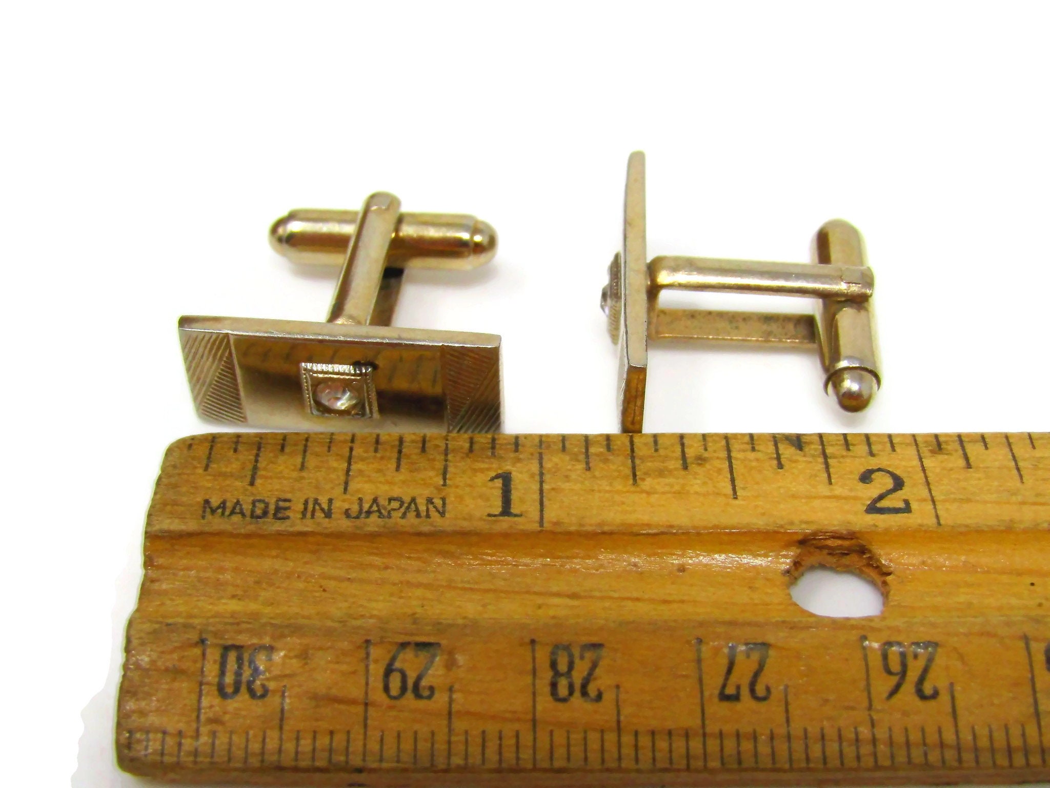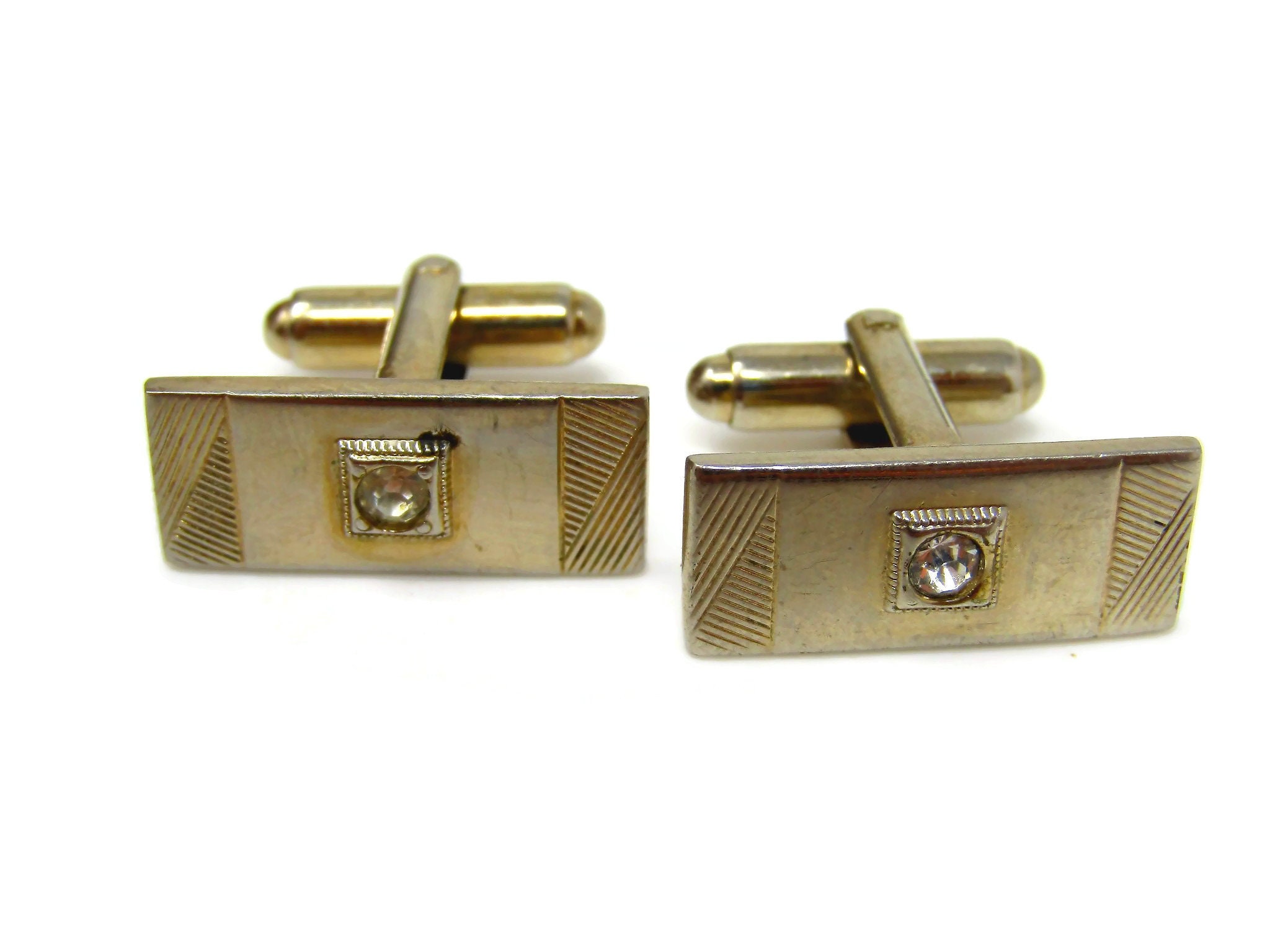 Clear Jewel Cufflinks for Men Vintage Gold Tone Small Rectangle