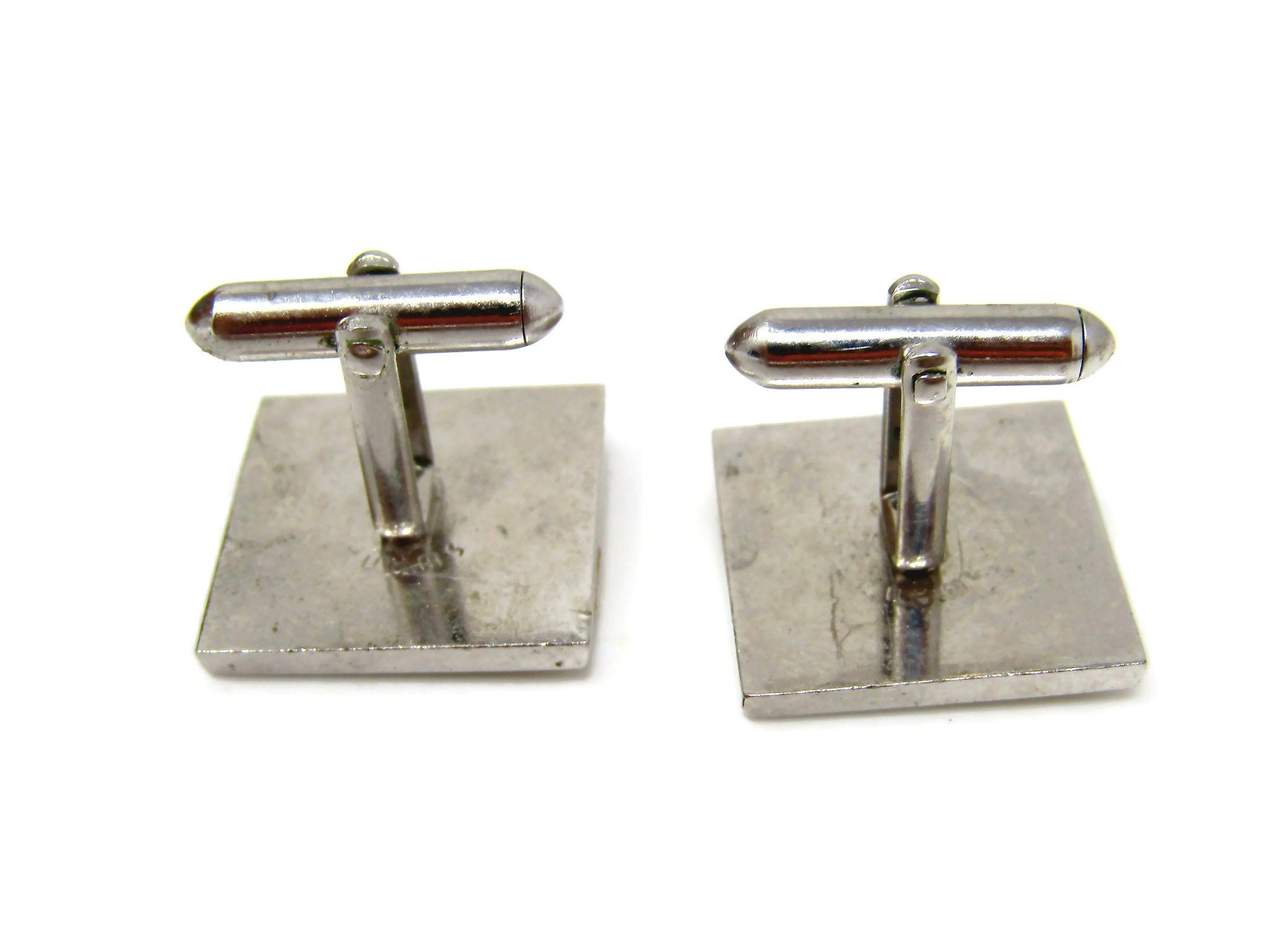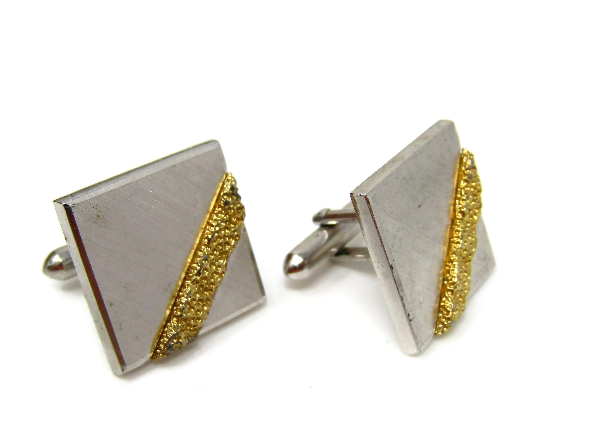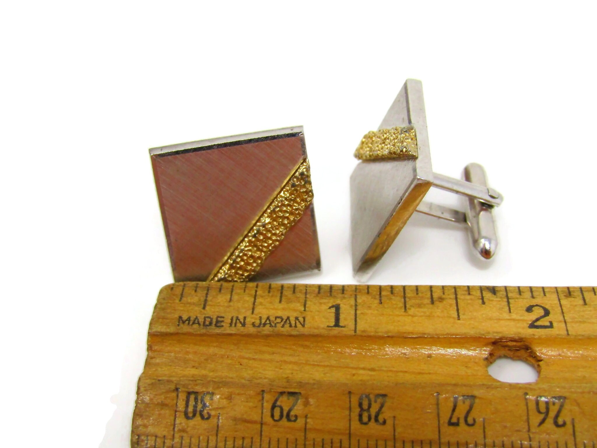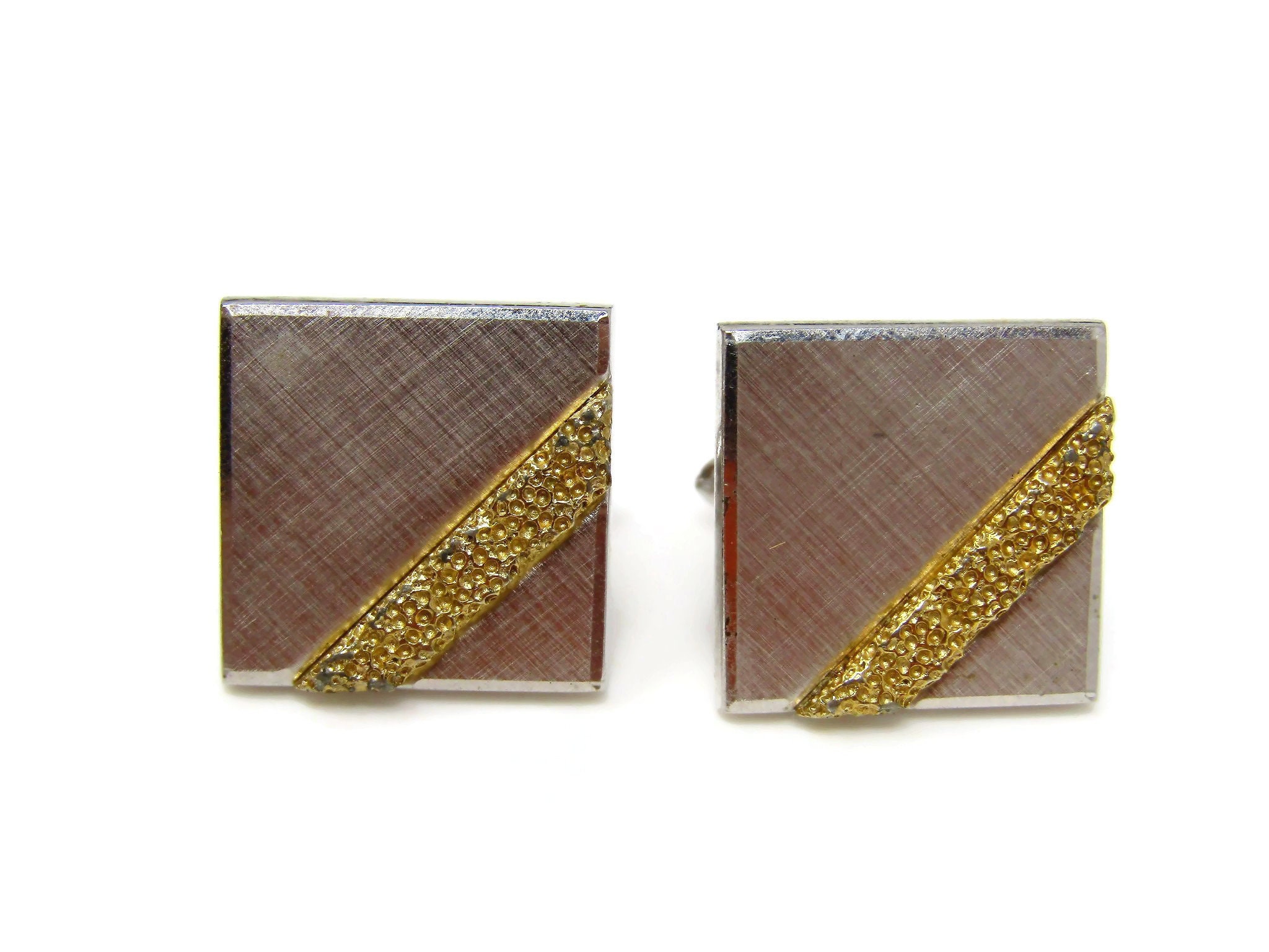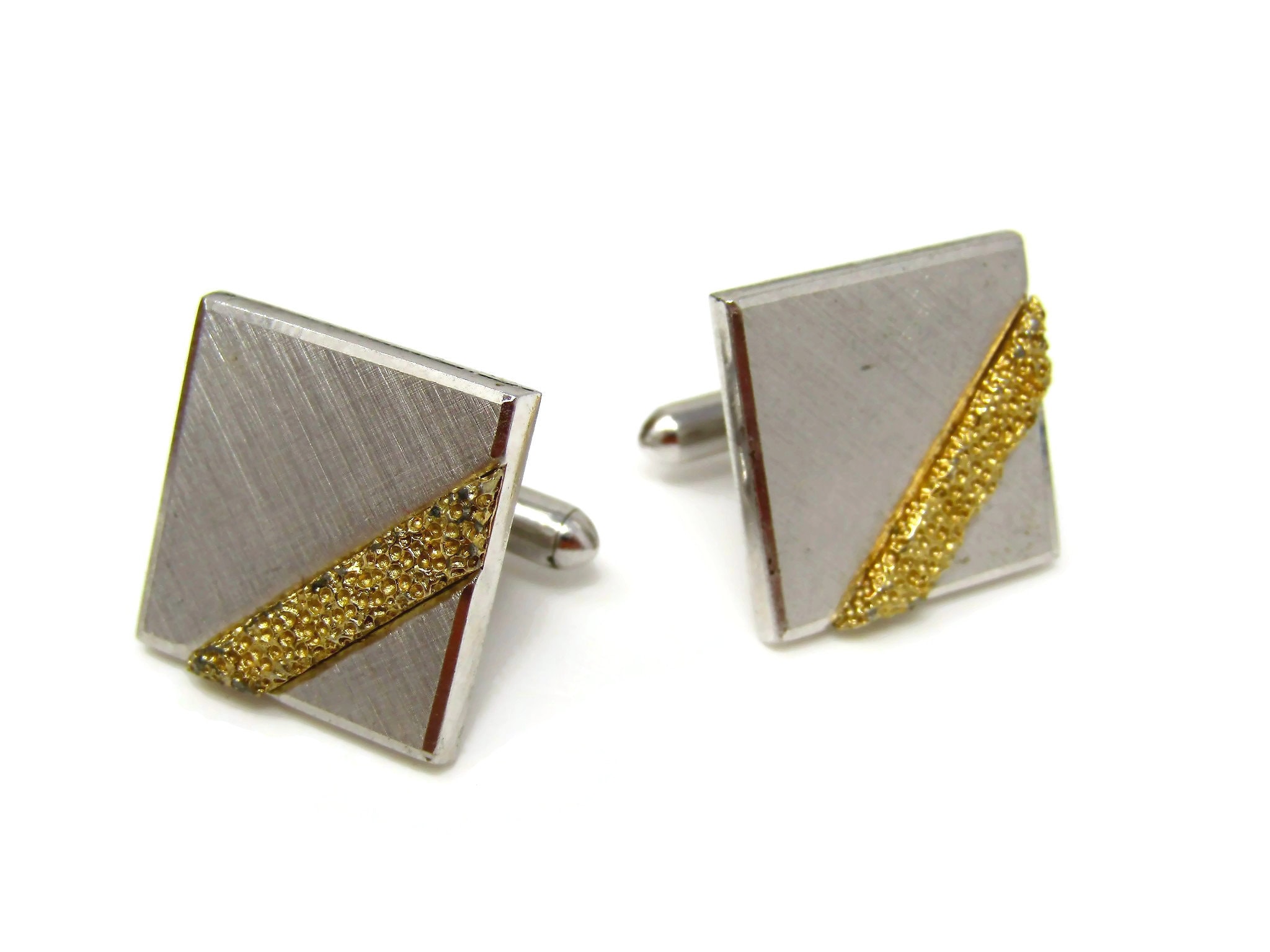 Gold Stripe Cufflinks for Men Vintage Silver Tone Square Nice Design