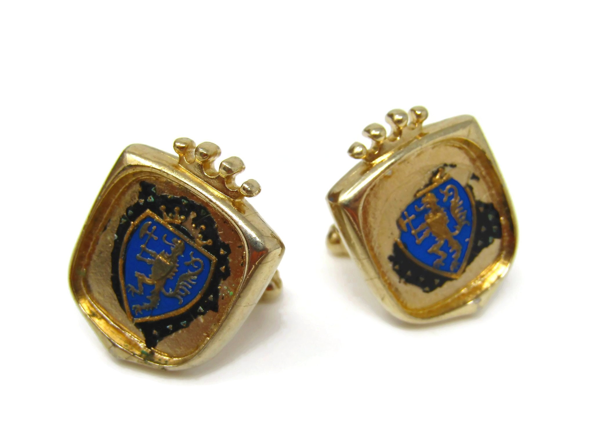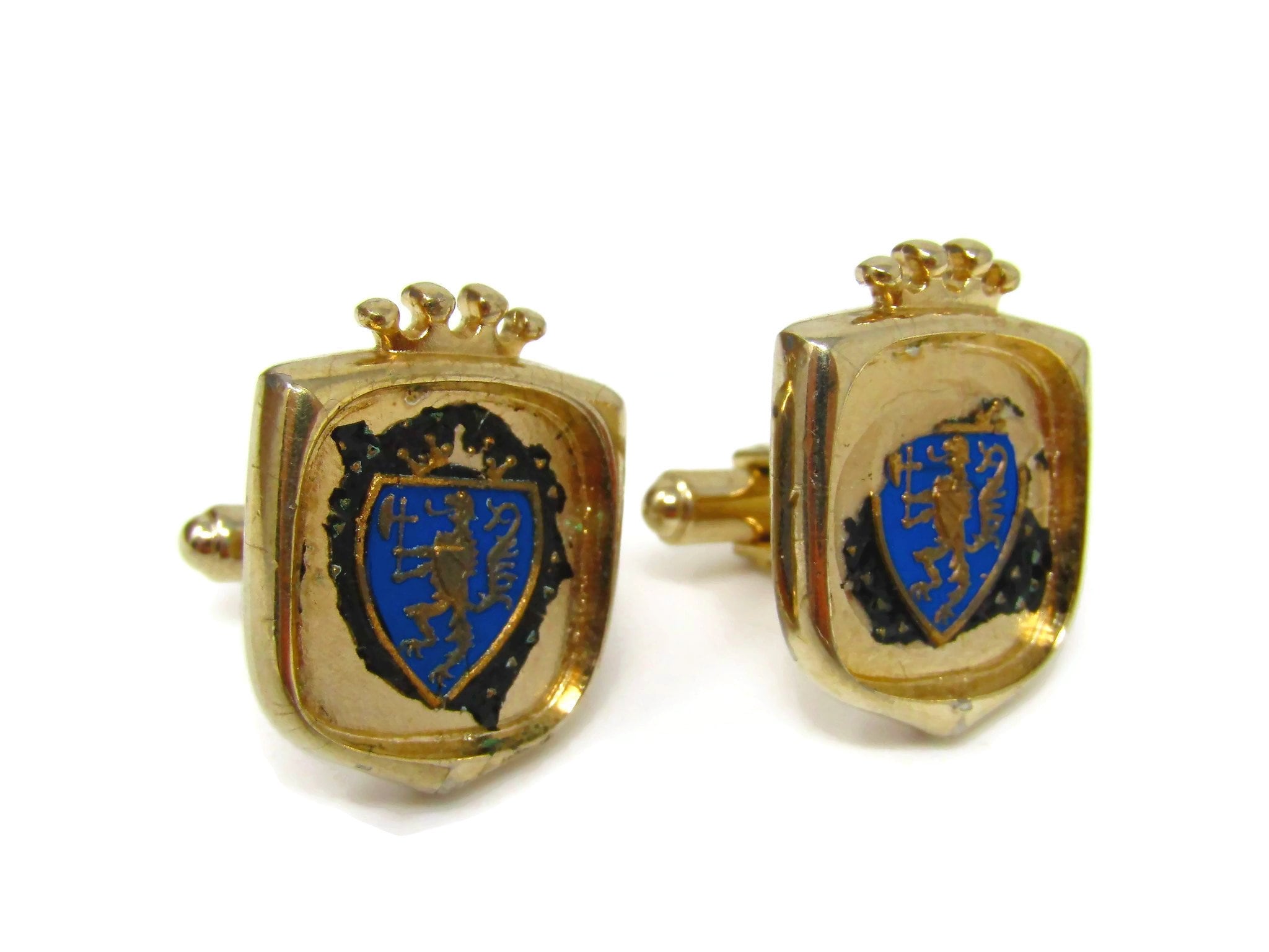Shield Crest Cufflinks for Men Vintage (Paint Wear)