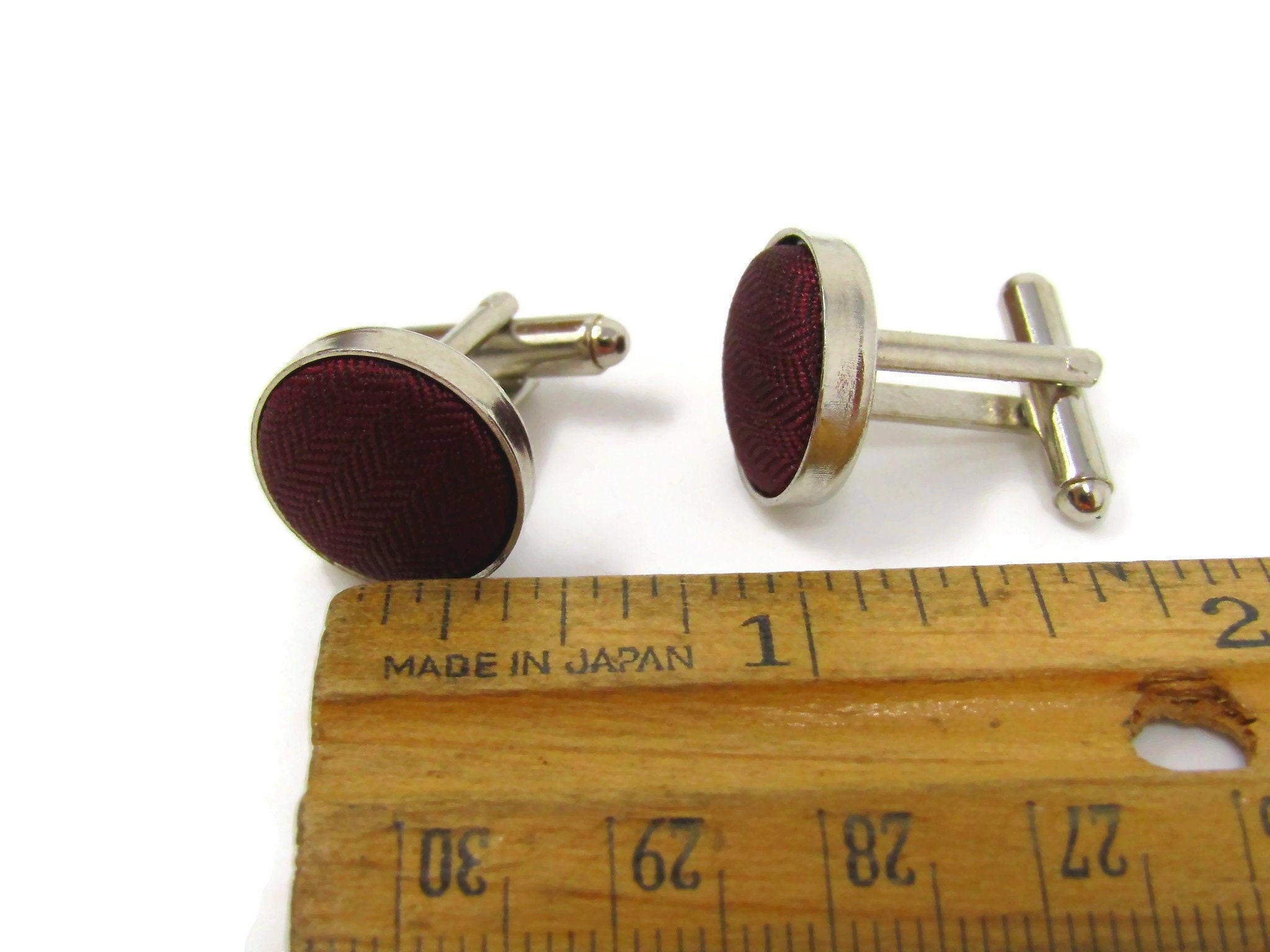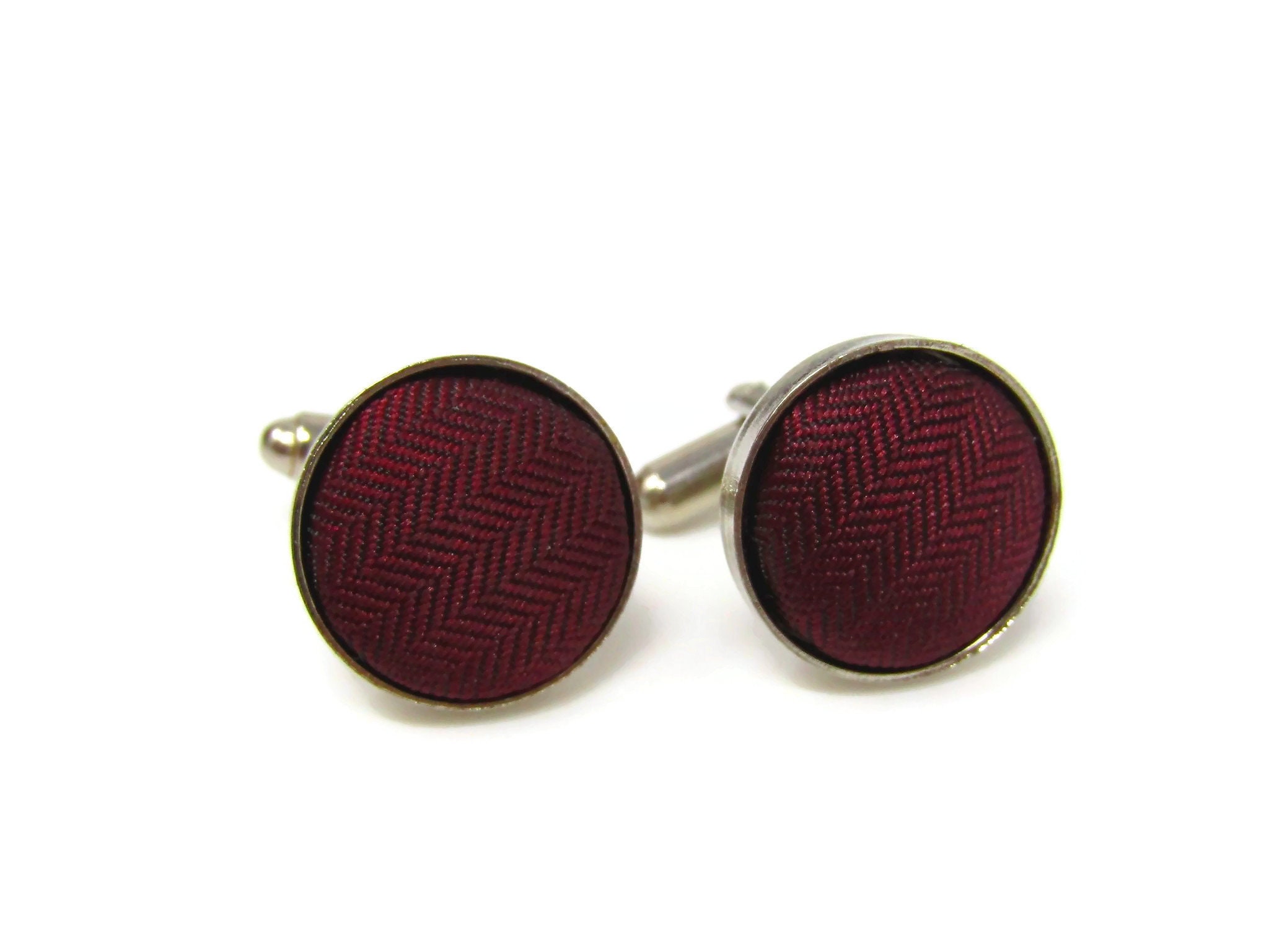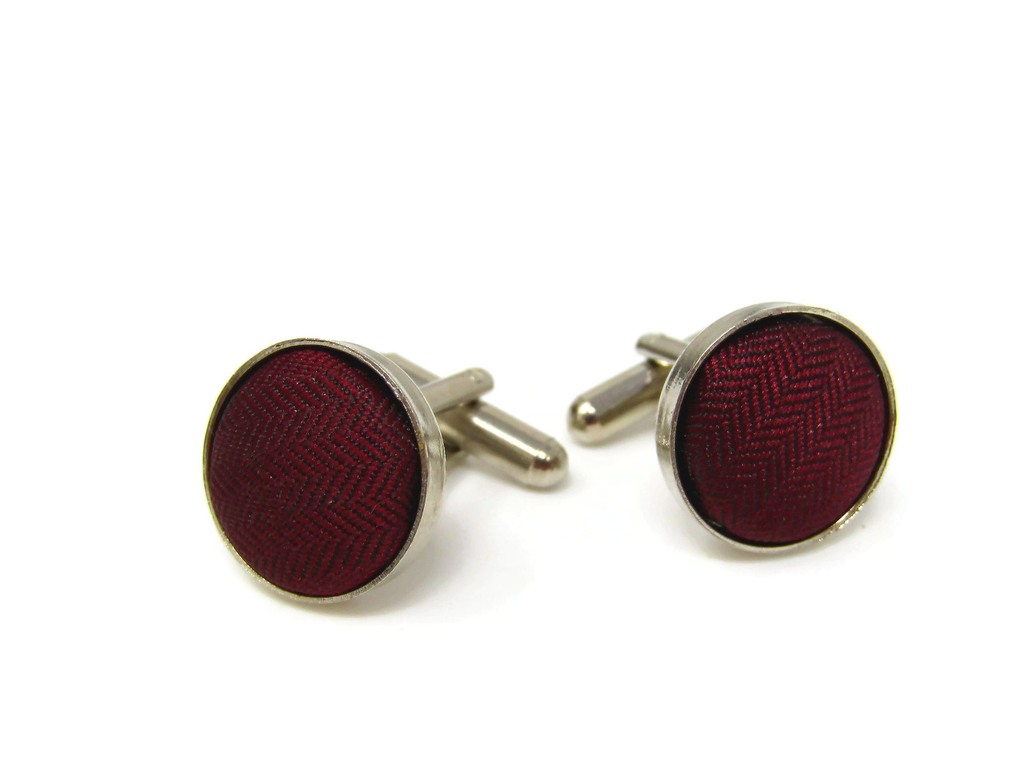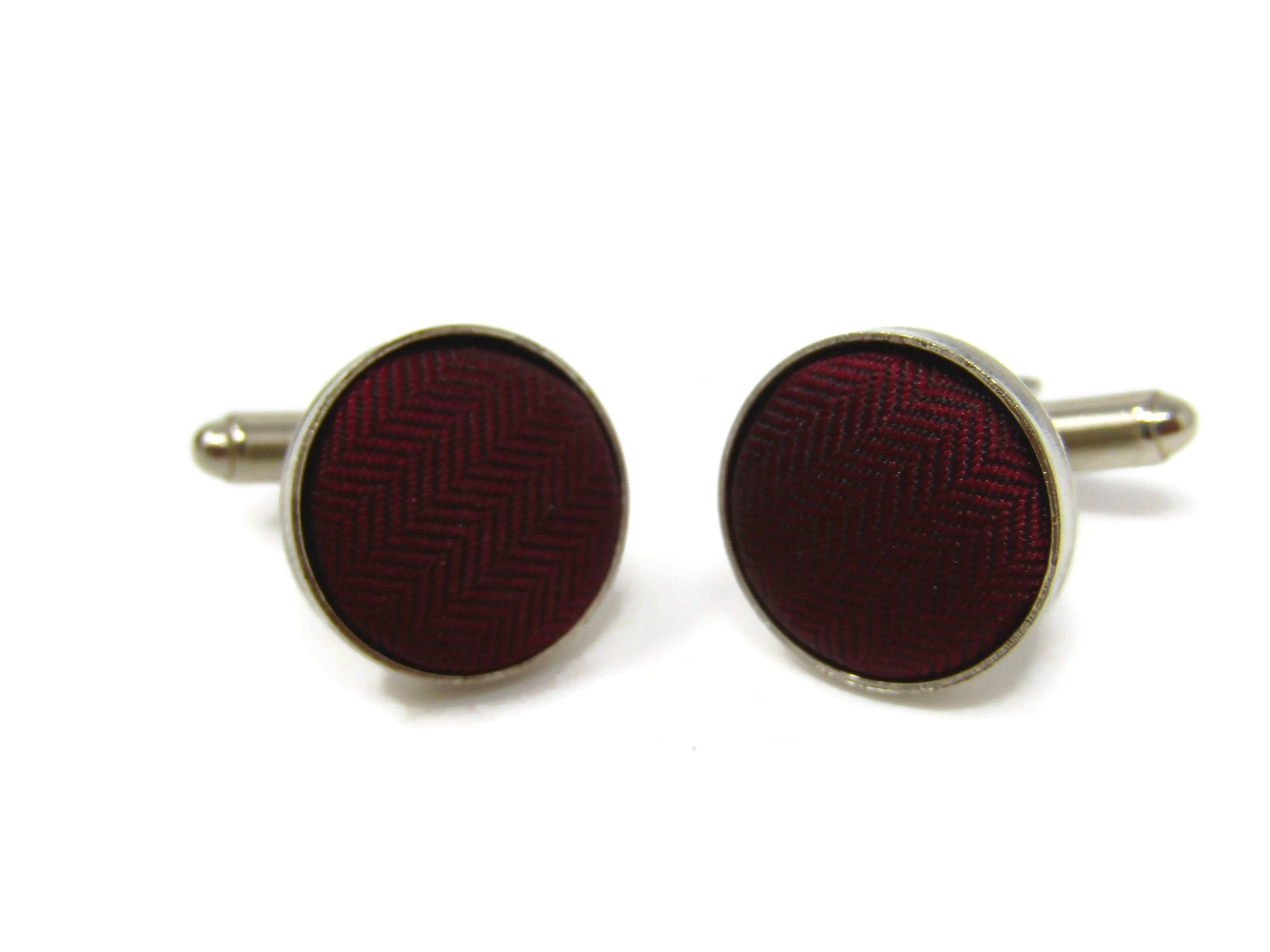 Red Fabric Cufflinks for Men Vintage Silver Tone Border