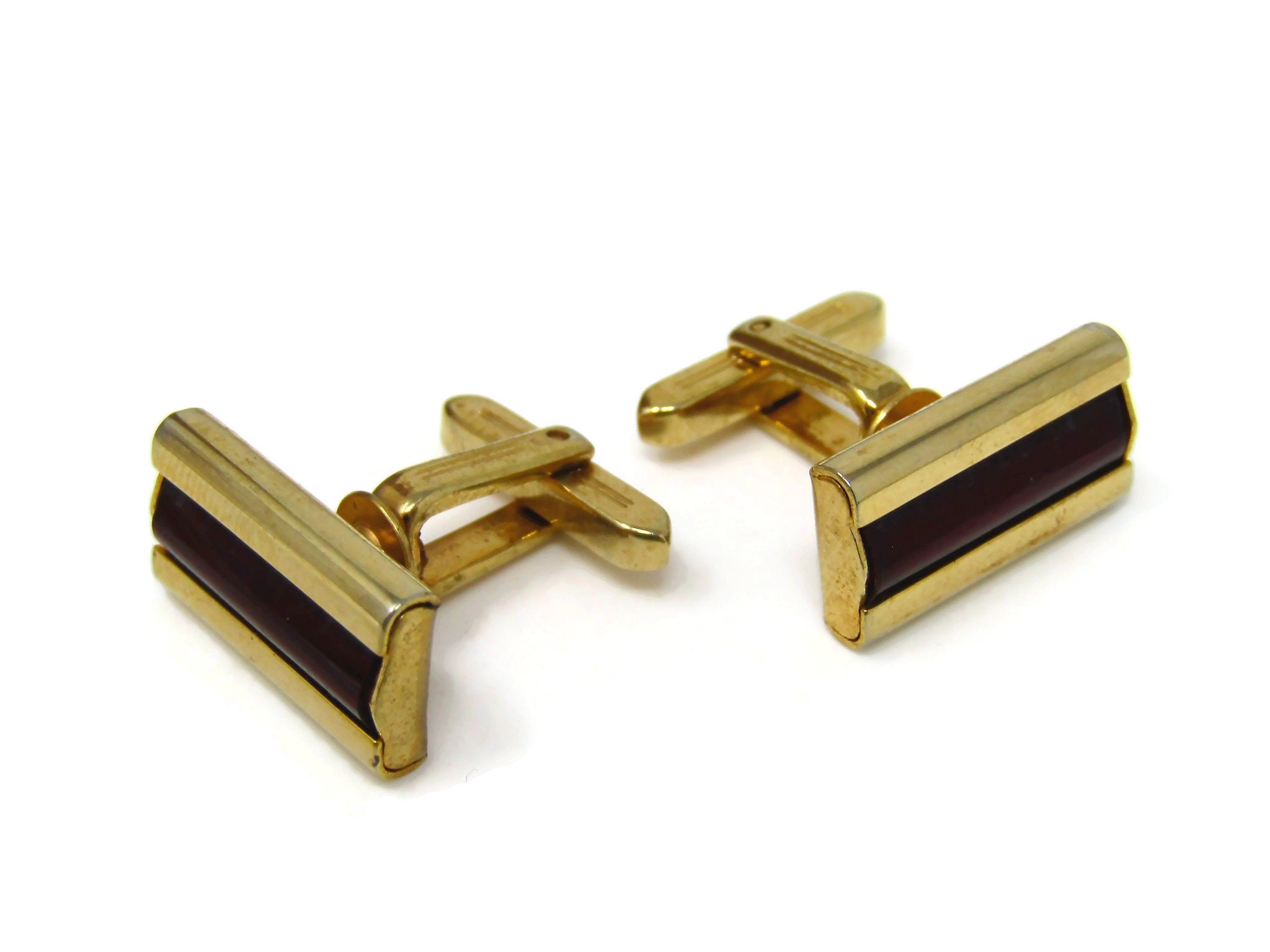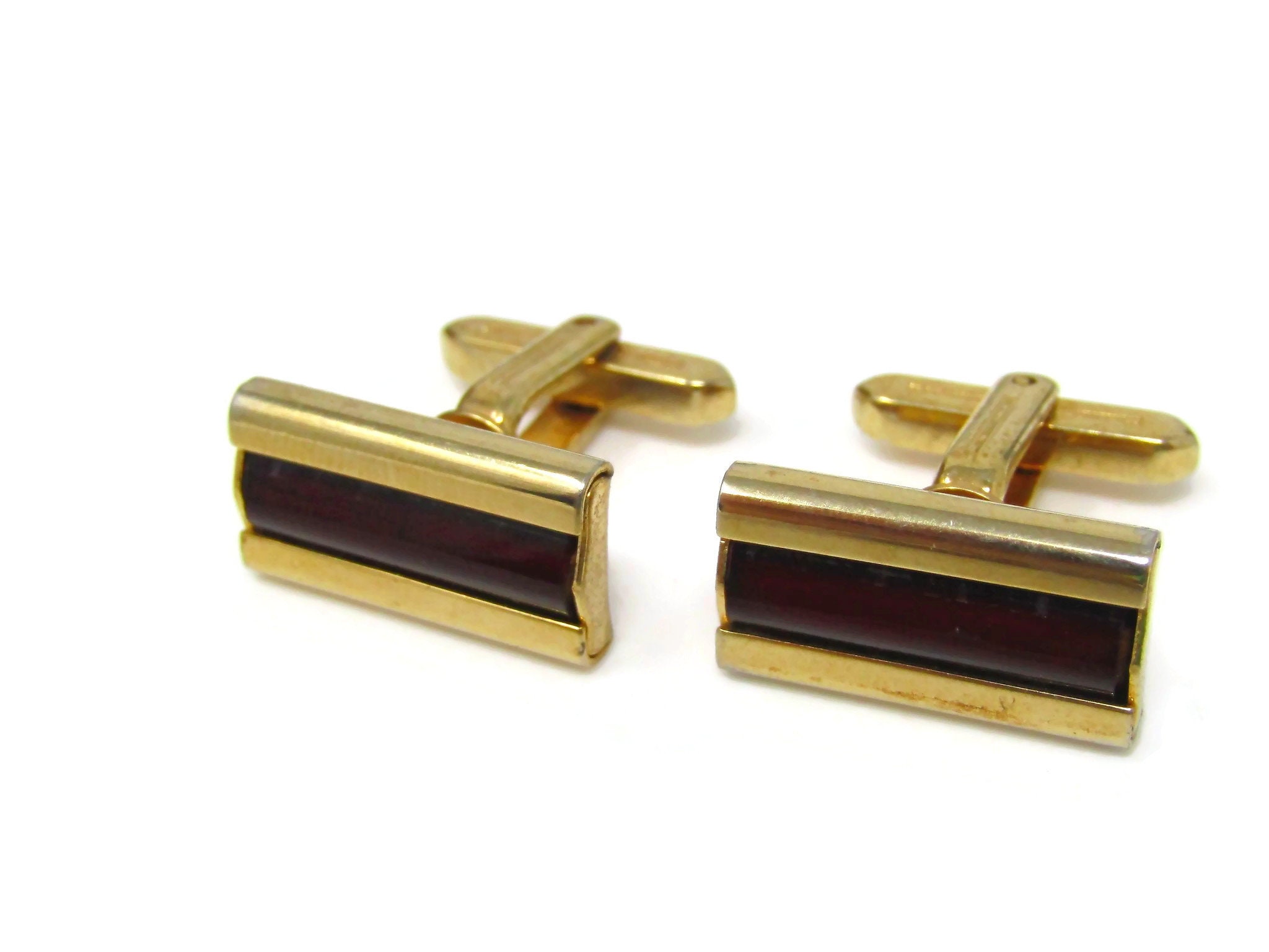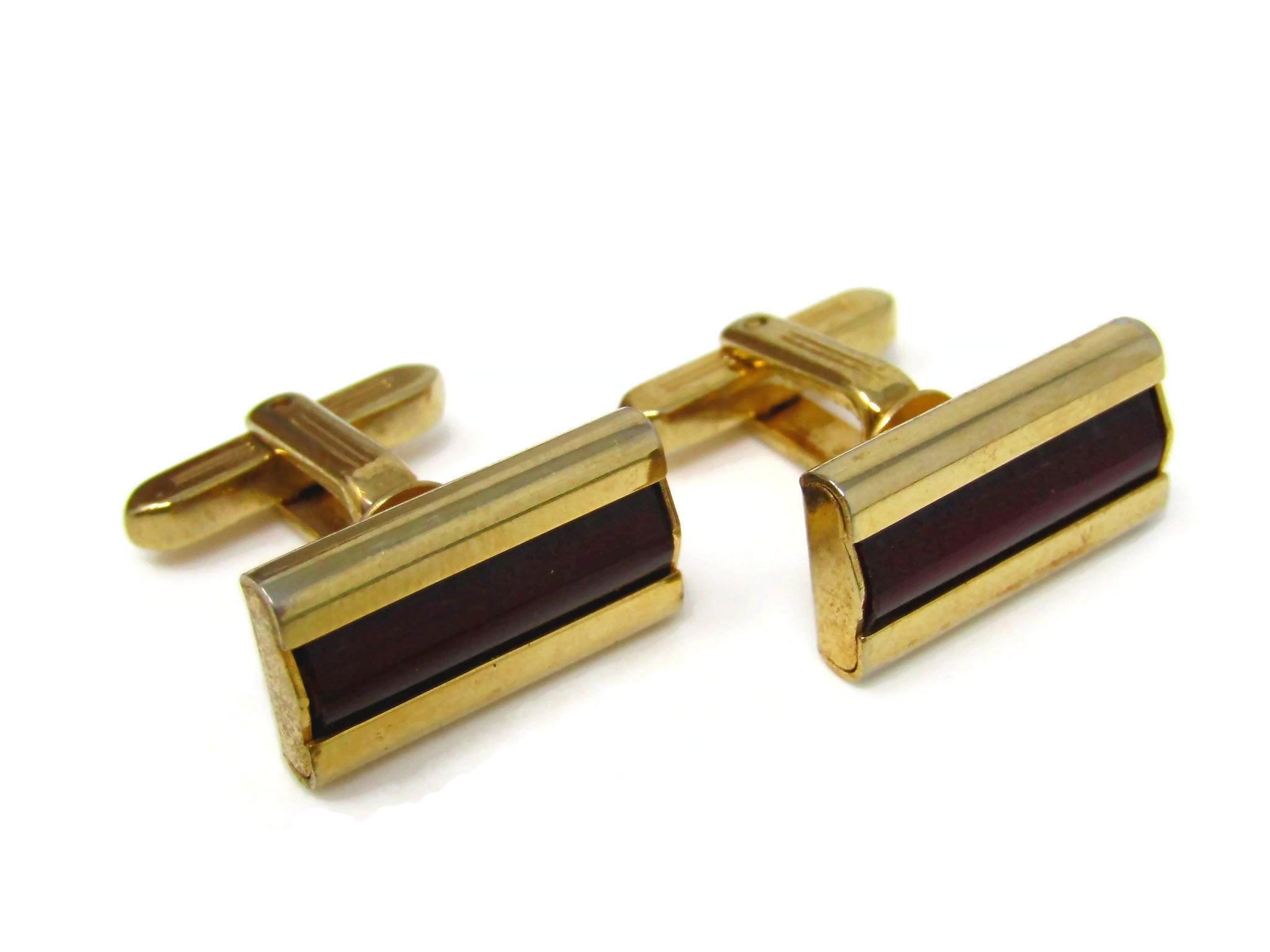 Dark Red Centers Cufflinks for Men Vintage Gold Tone Nice Quality