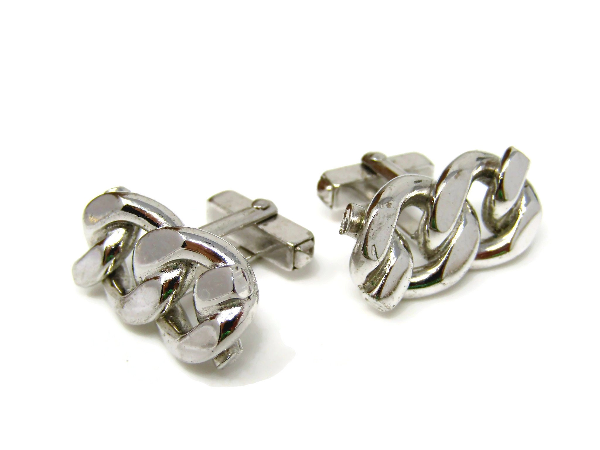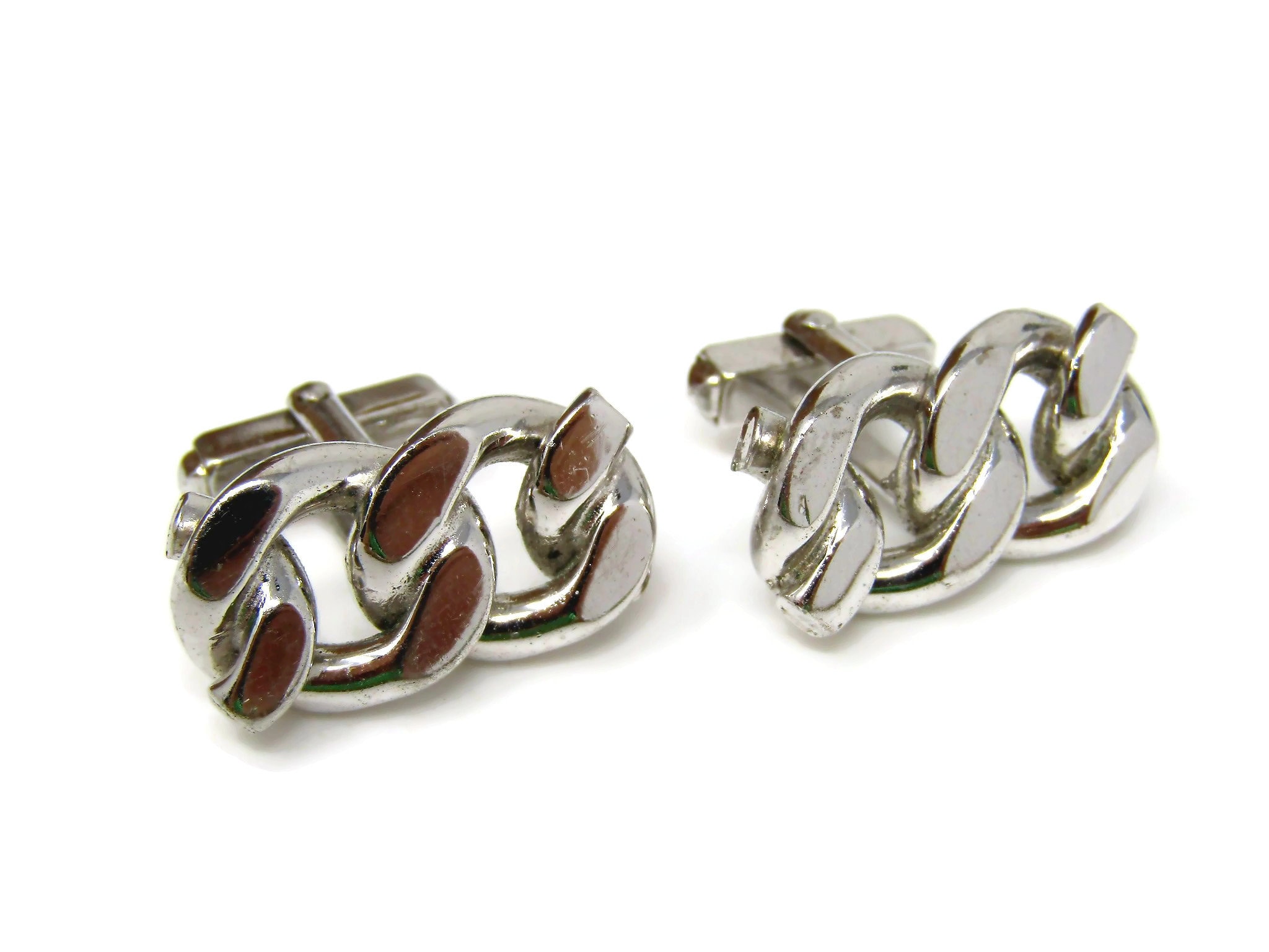 Chain Link Cufflinks for Men Vintage Silver Tone Nice Design