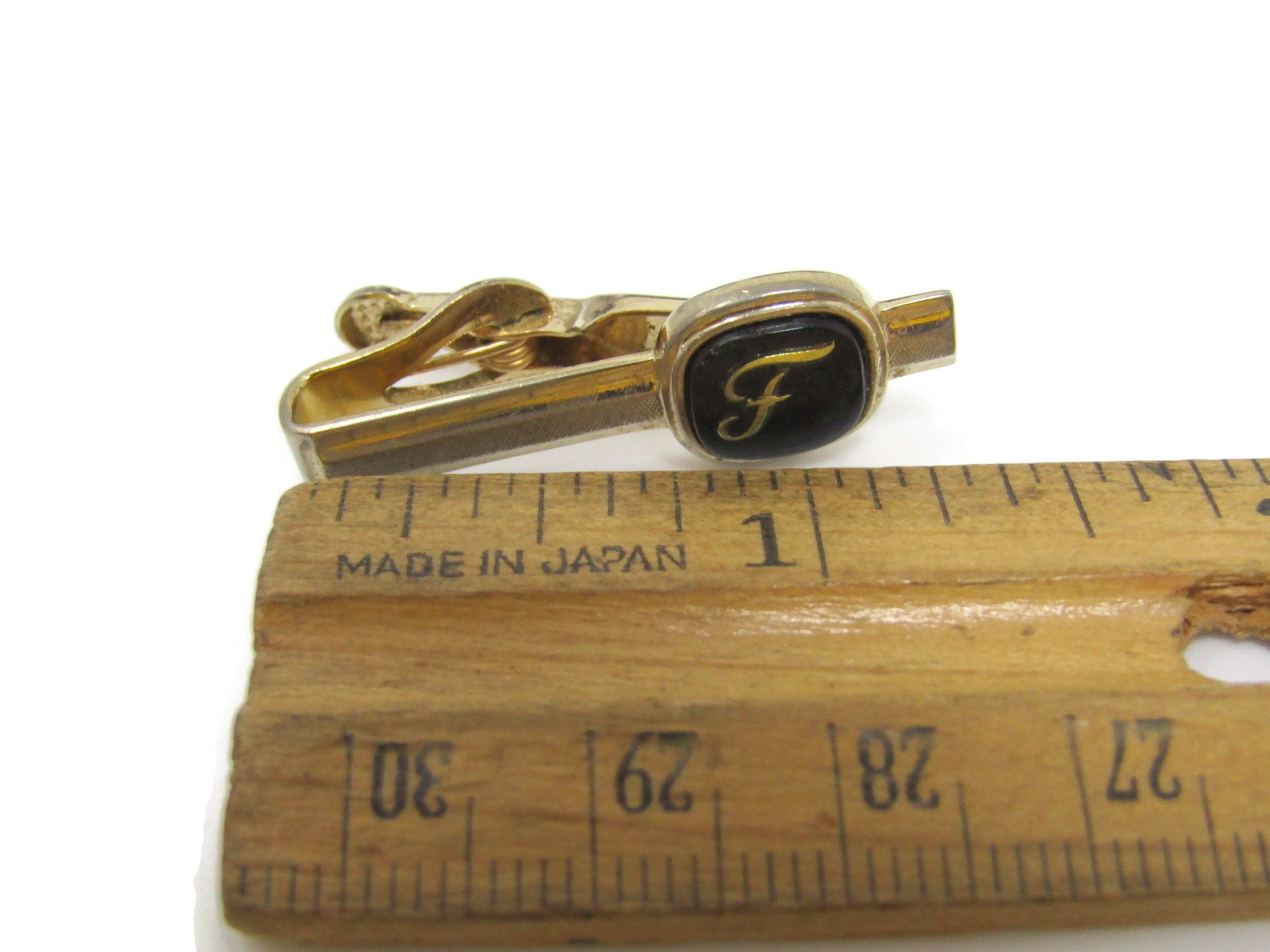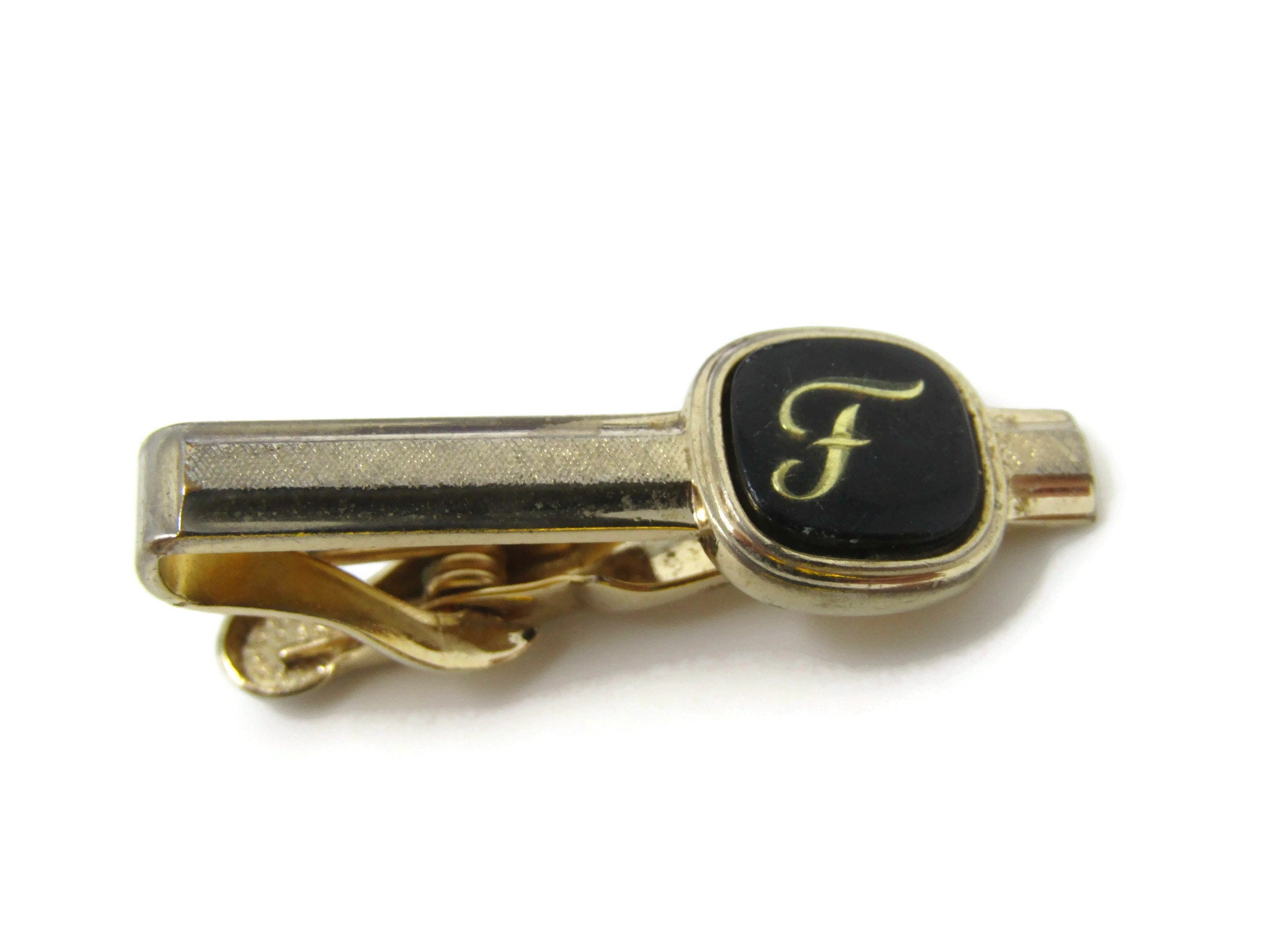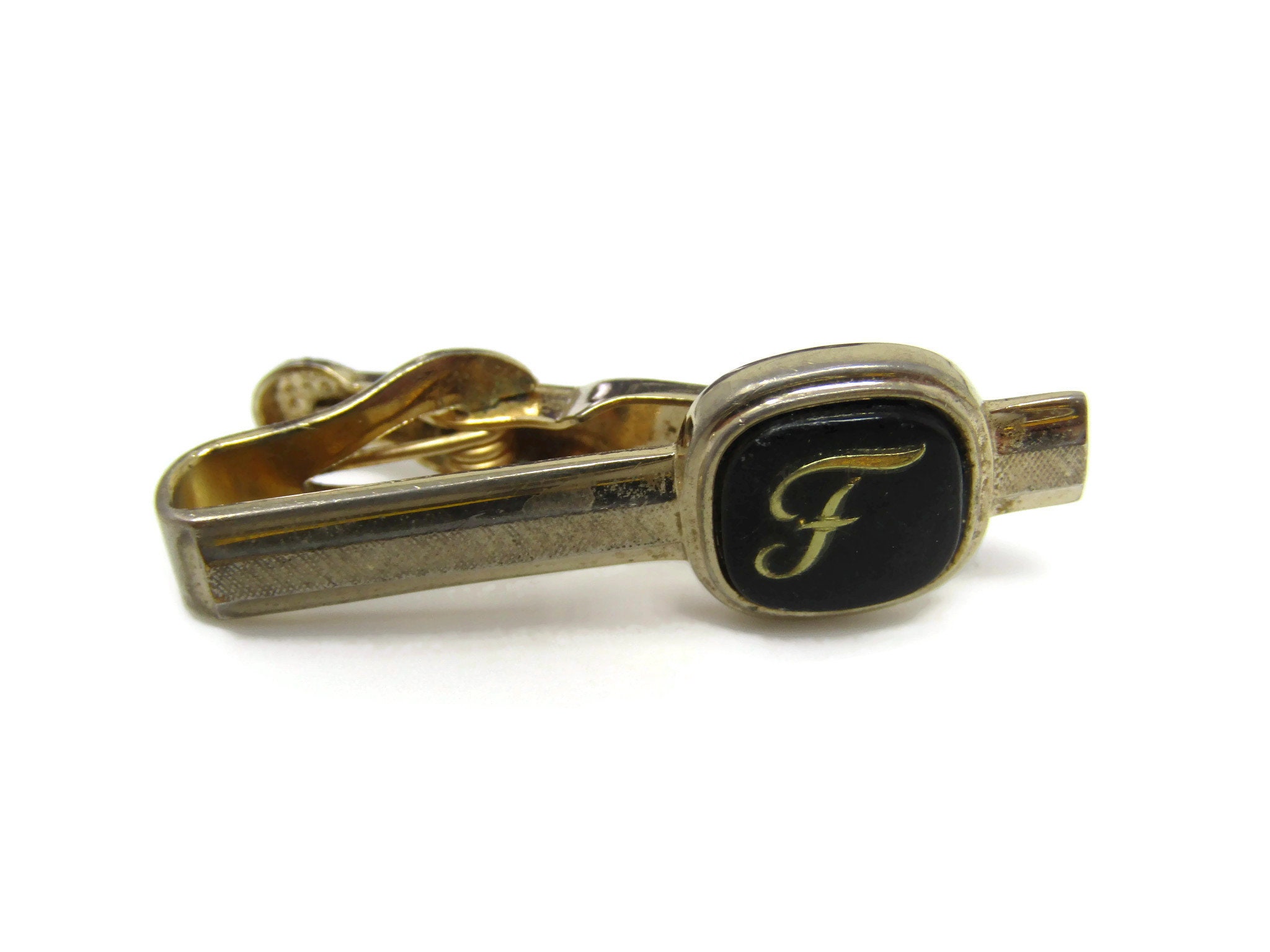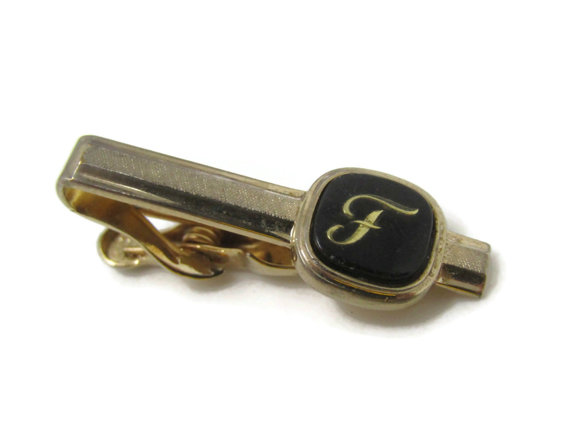 Letter F Initial Tie Clip Tie Bar: Vintage Gold Tone - Stand Out from the Crowd with Class