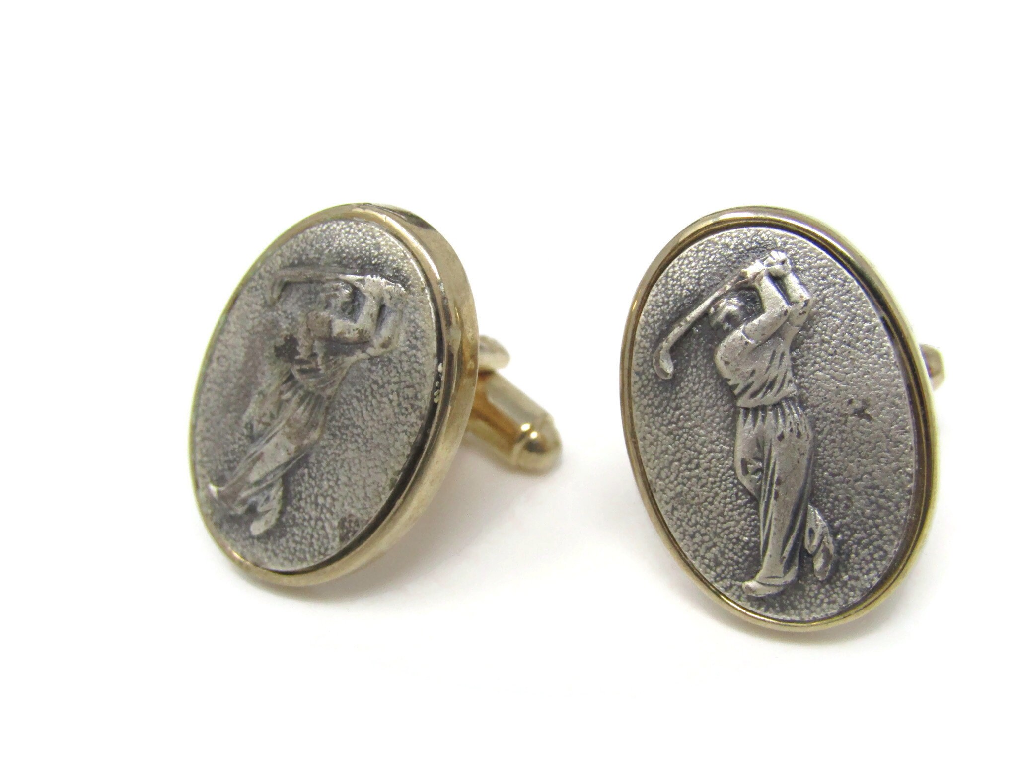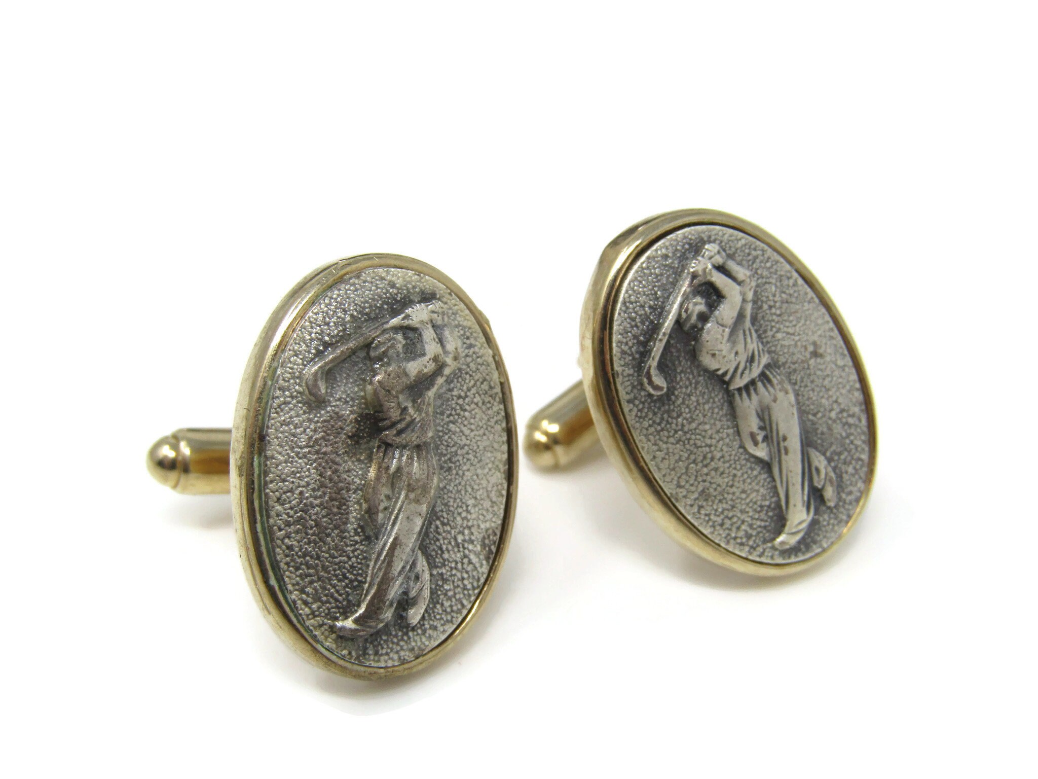 Golf Golfer Men's Cufflinks: Vintage Gold Tone - Stand Out from the Crowd with Class