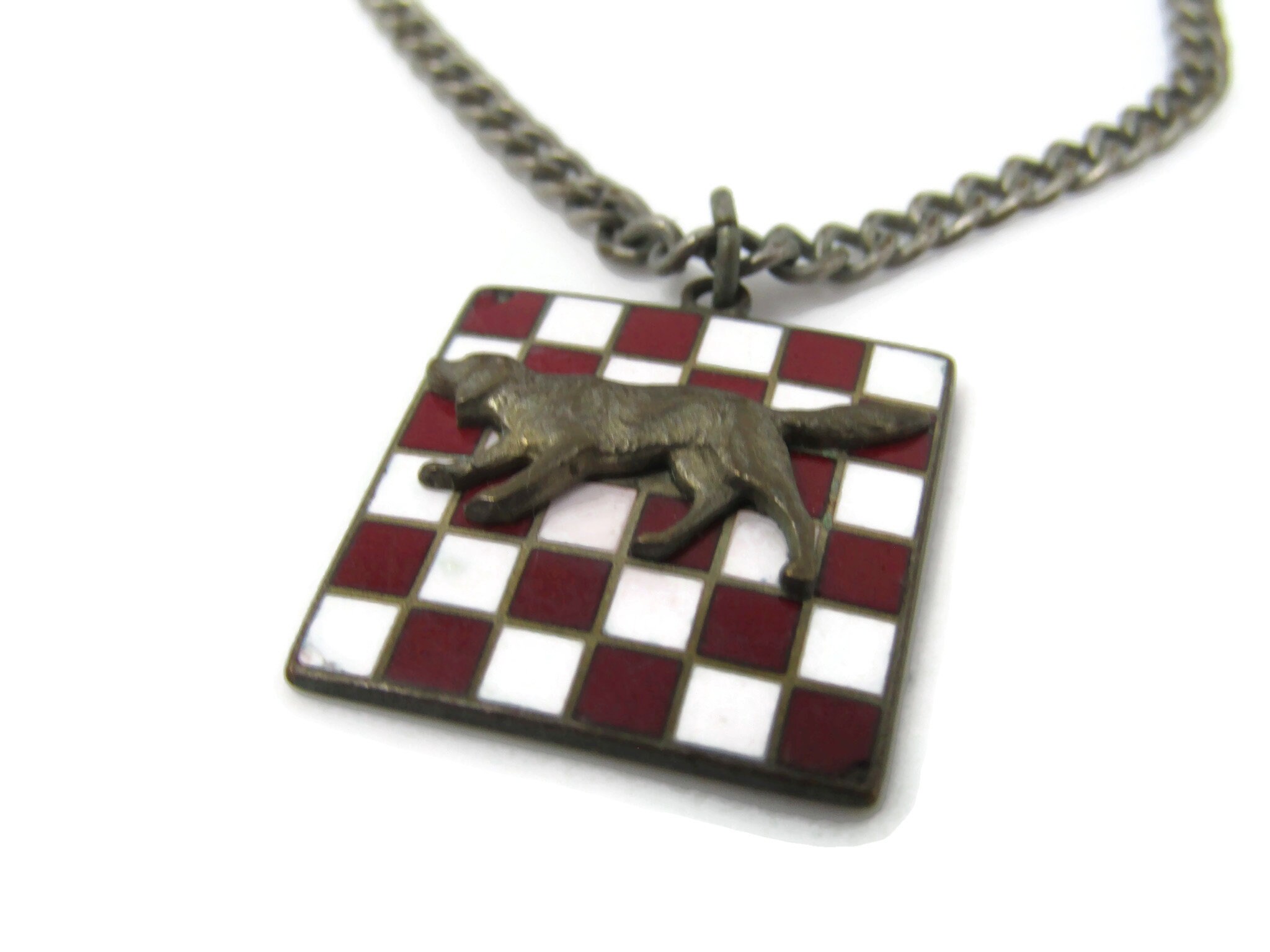 1957 Dog Checkerboard Chessboard Tie Clip Tie Bar: Vintage Silver Tone - Stand Out from the Crowd with Class