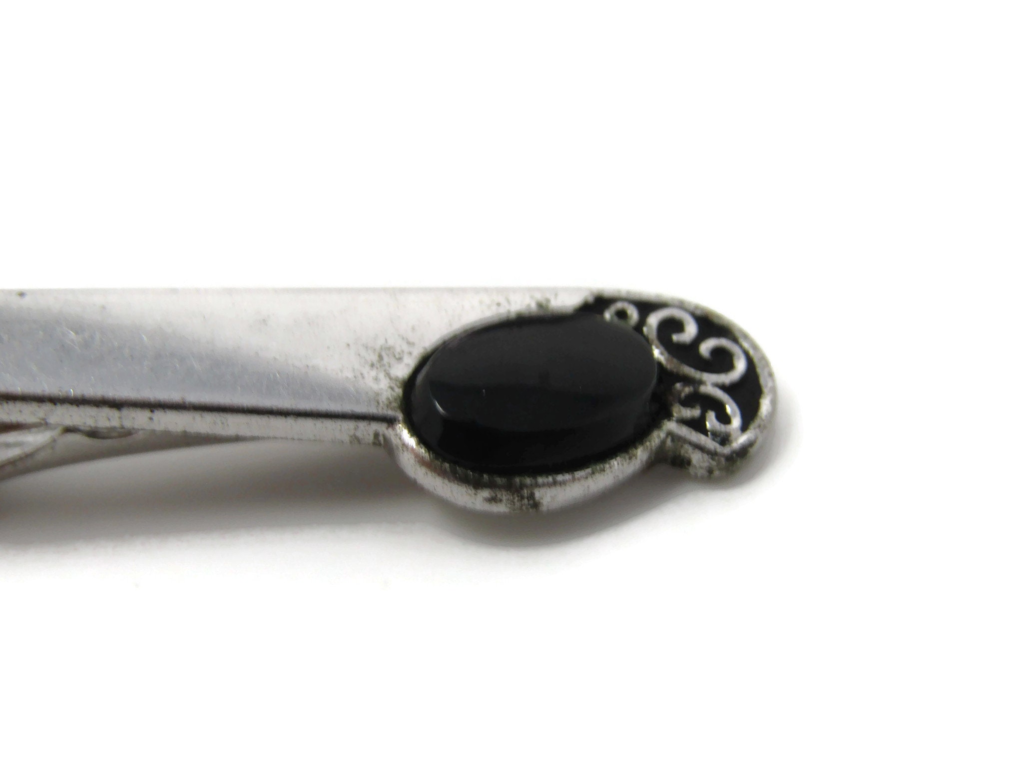 Black Accent Curl End Tie Clip Tie Bar: Vintage Silver Tone - Stand Out from the Crowd with Class
