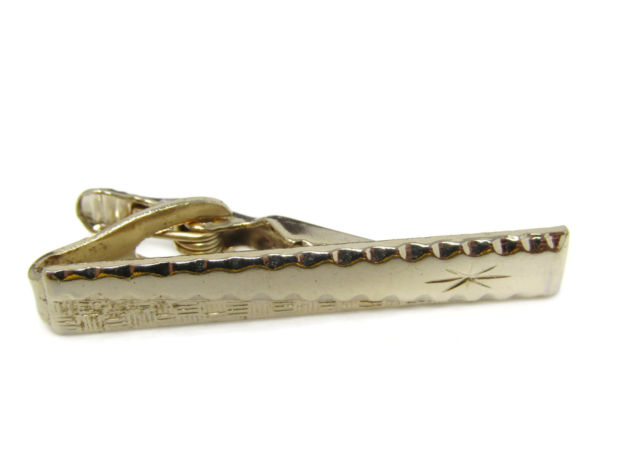 Star Etch Tie Clip Tie Bar: Vintage Gold Tone - Stand Out from the Crowd with Class