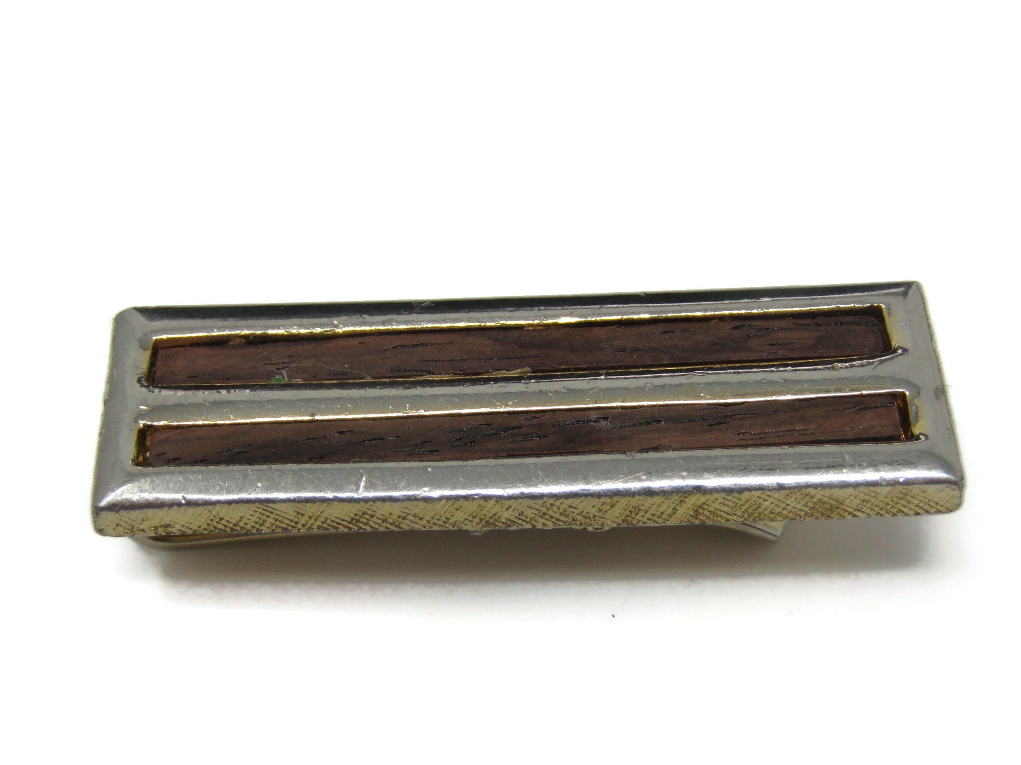 Double Wood Bar Tie Clip Tie Bar: Vintage Gold Tone - Stand Out from the Crowd with Class