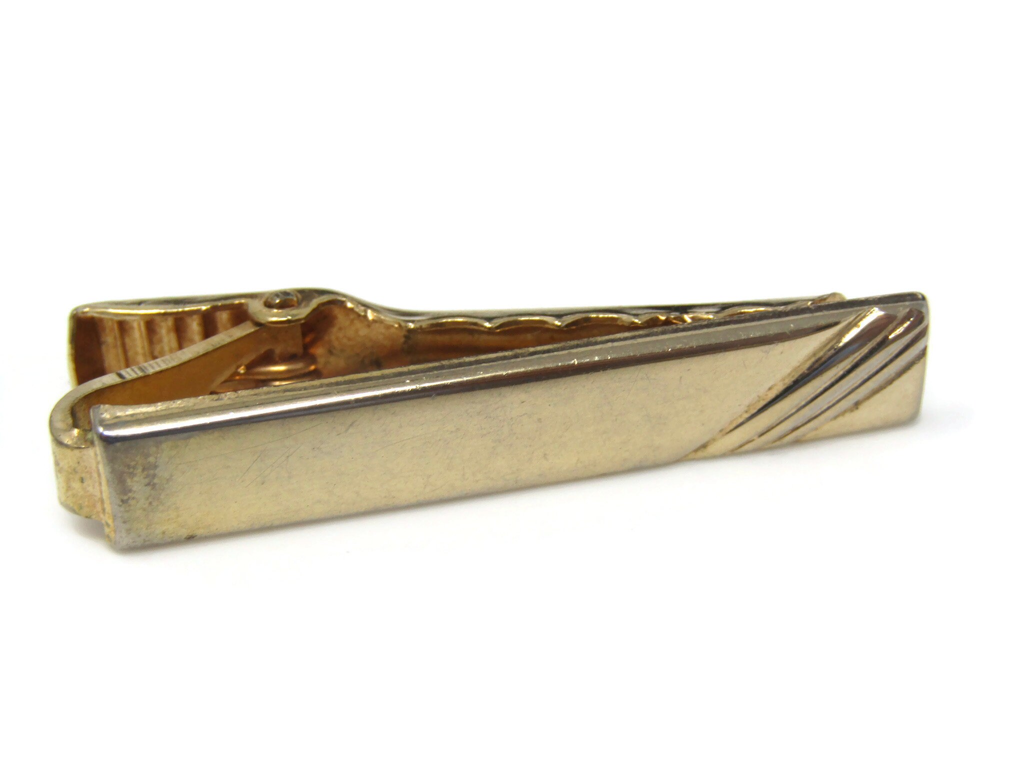 Diagonal Grooves Tip Tie Clip Tie Bar: Vintage Gold Tone - Stand Out from the Crowd with Class