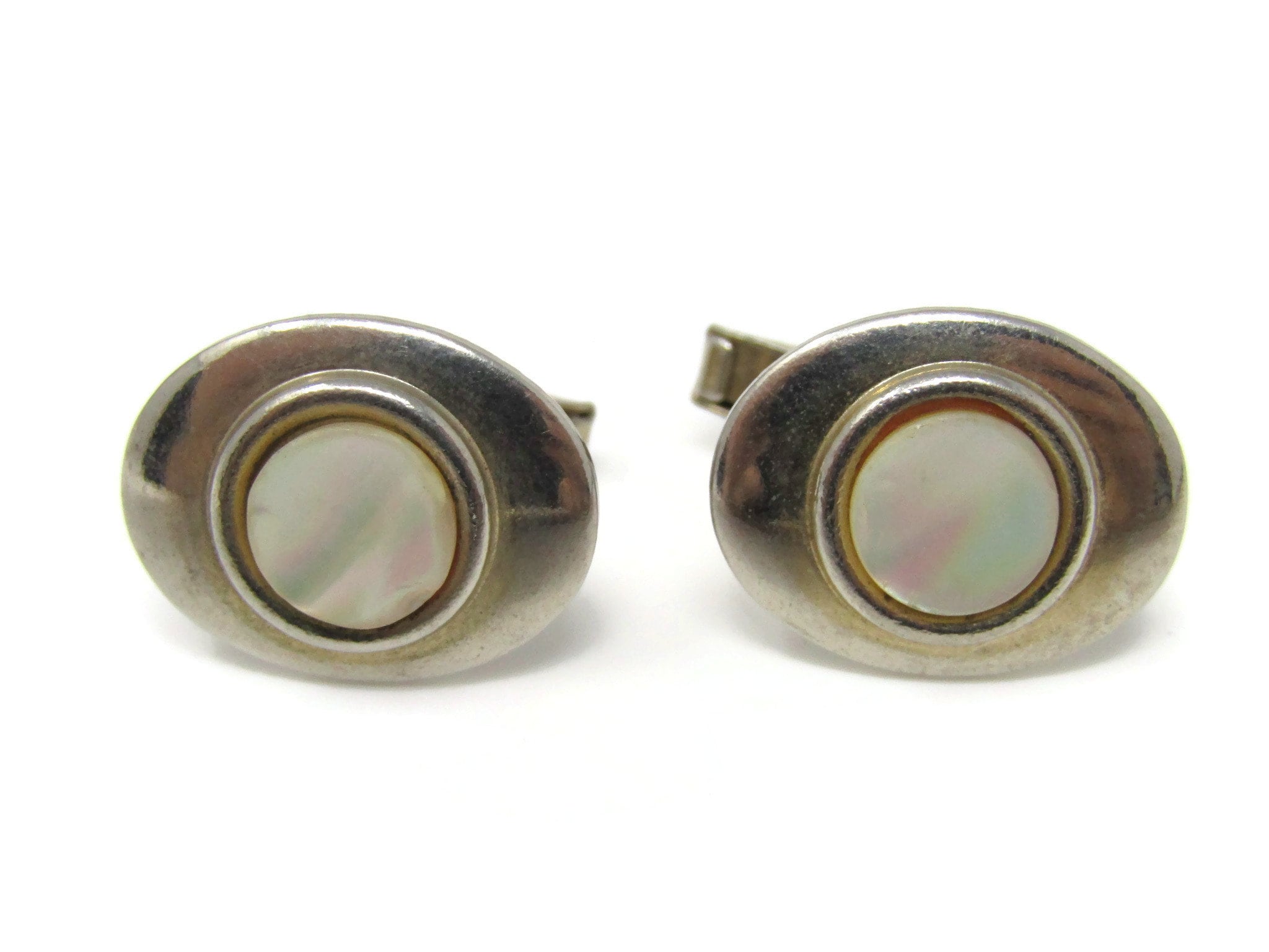 Mother of Pearl Center Cufflinks Nice Design Gold Tone Vintage Men's Jewelry