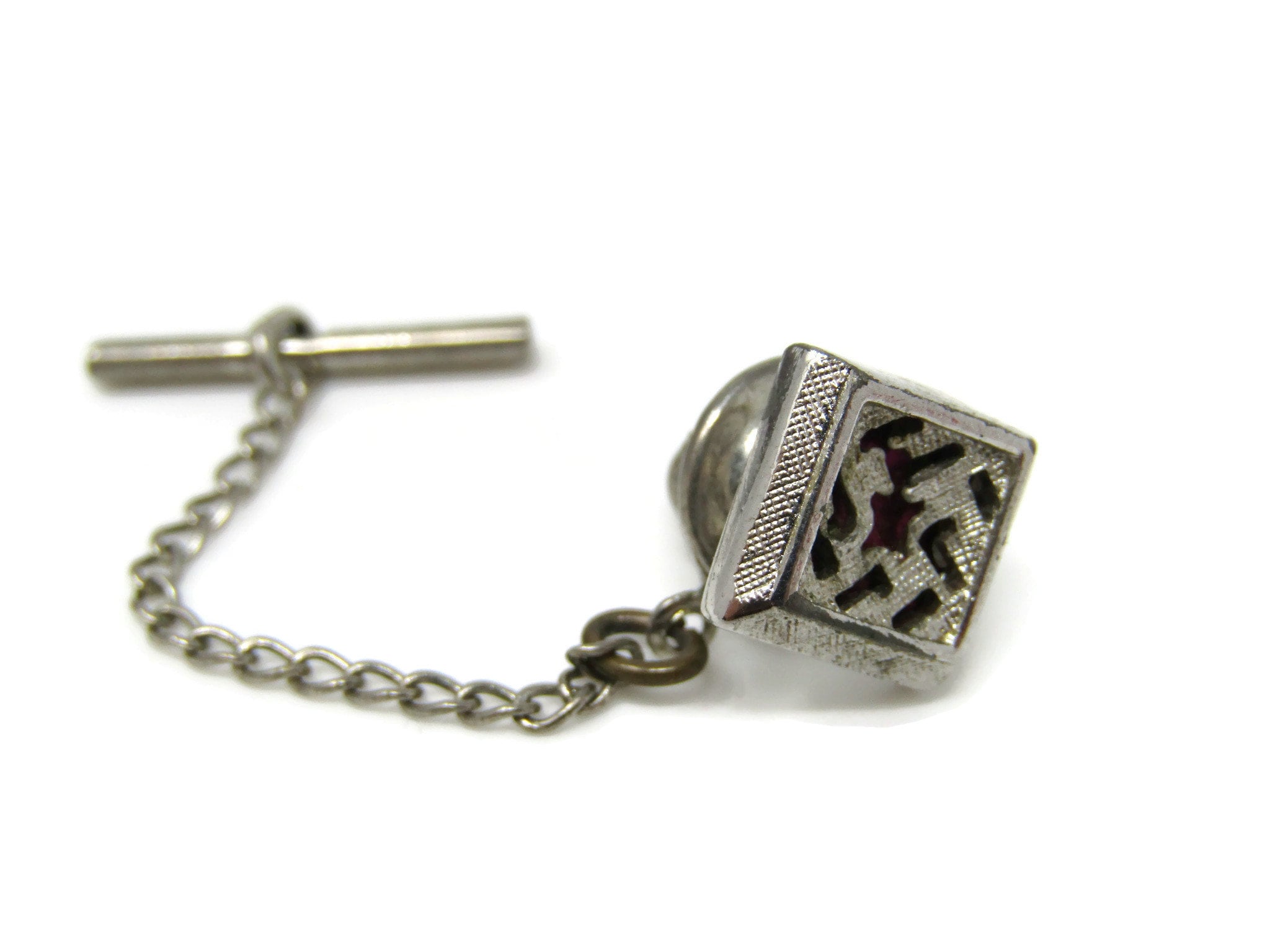Modernist Square Tie Tack Pin Silver Tone Vintage Men's Jewelry