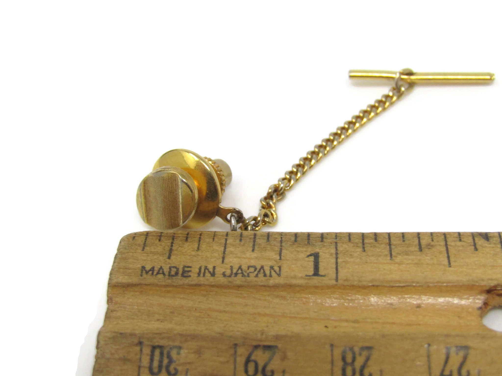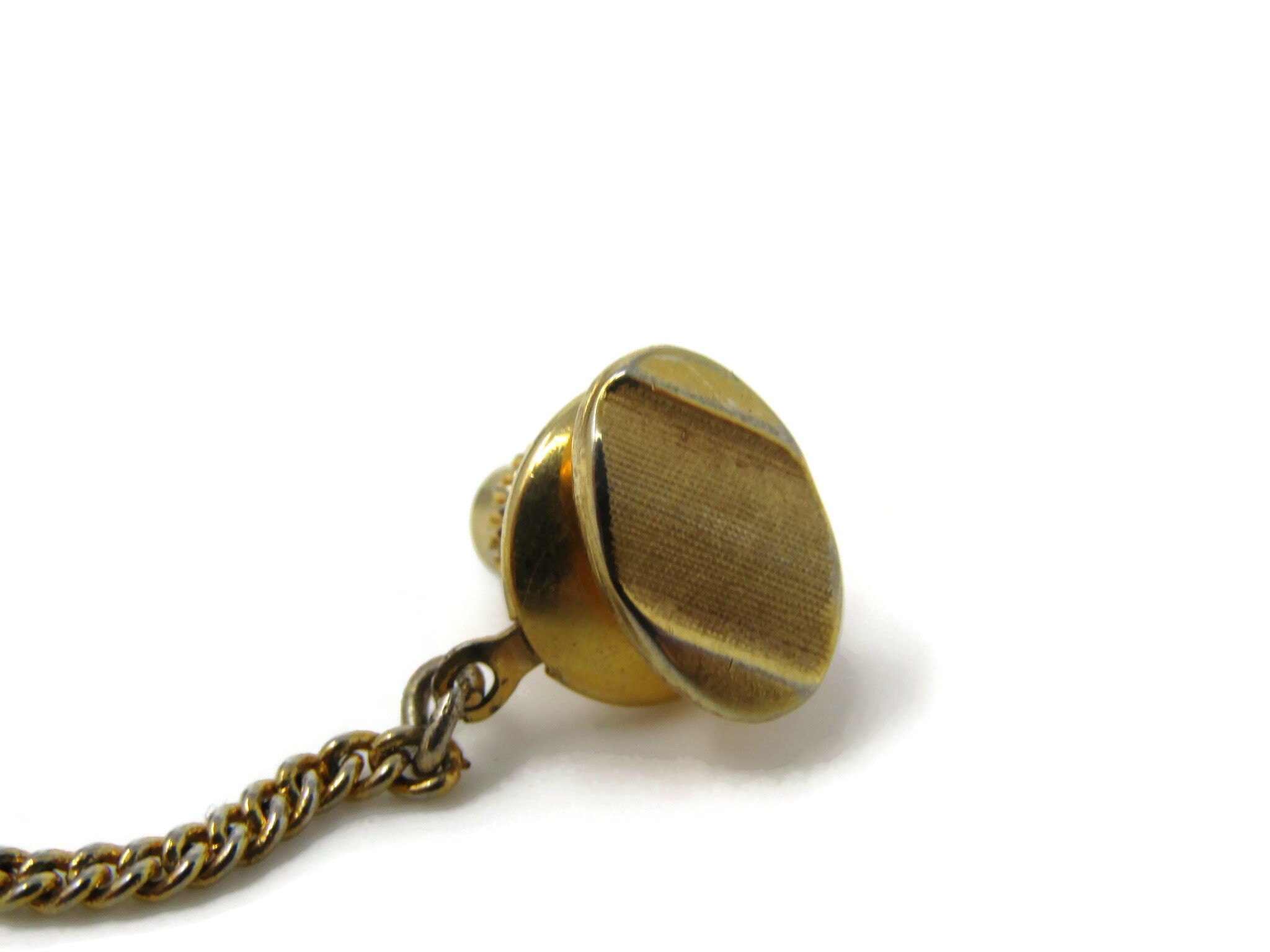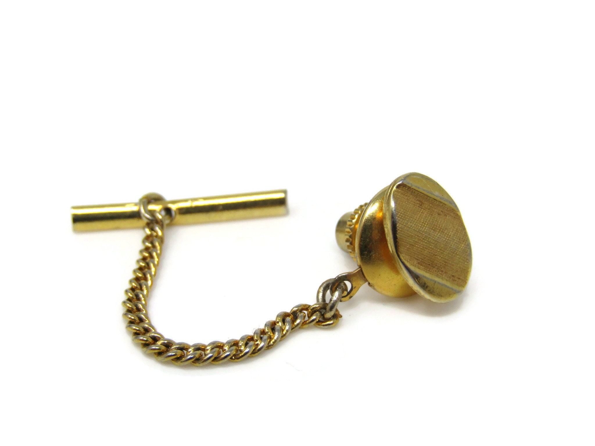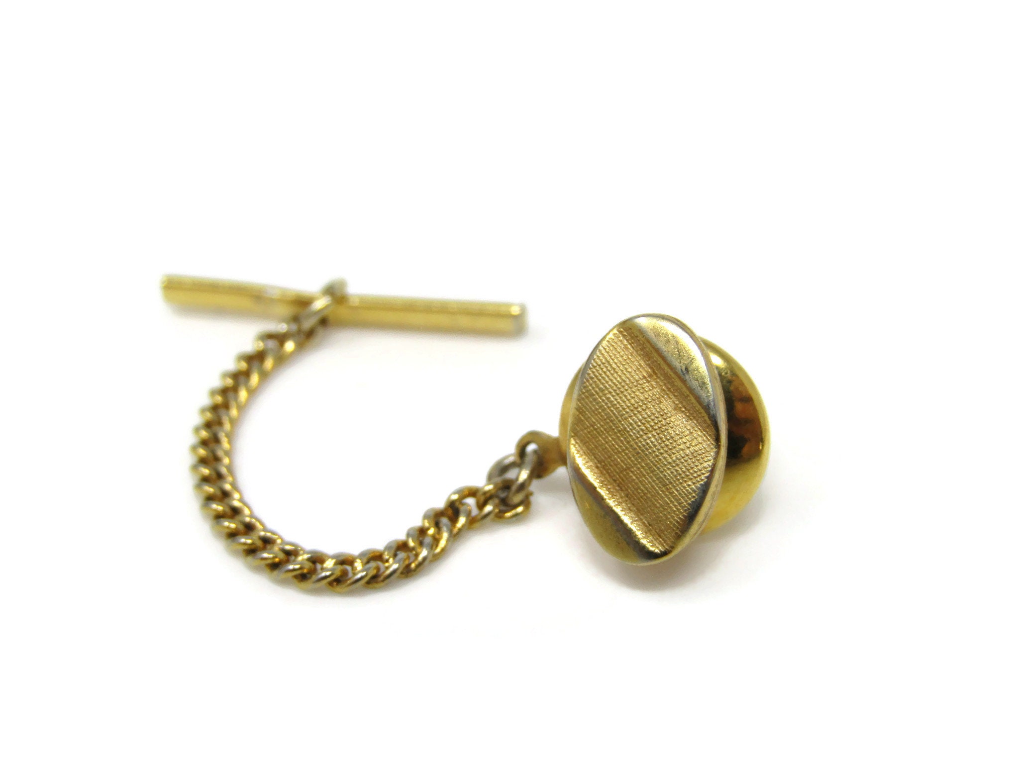 Oval Textured Center Tie Tack Pin Gold Tone Vintage Men's Jewelry