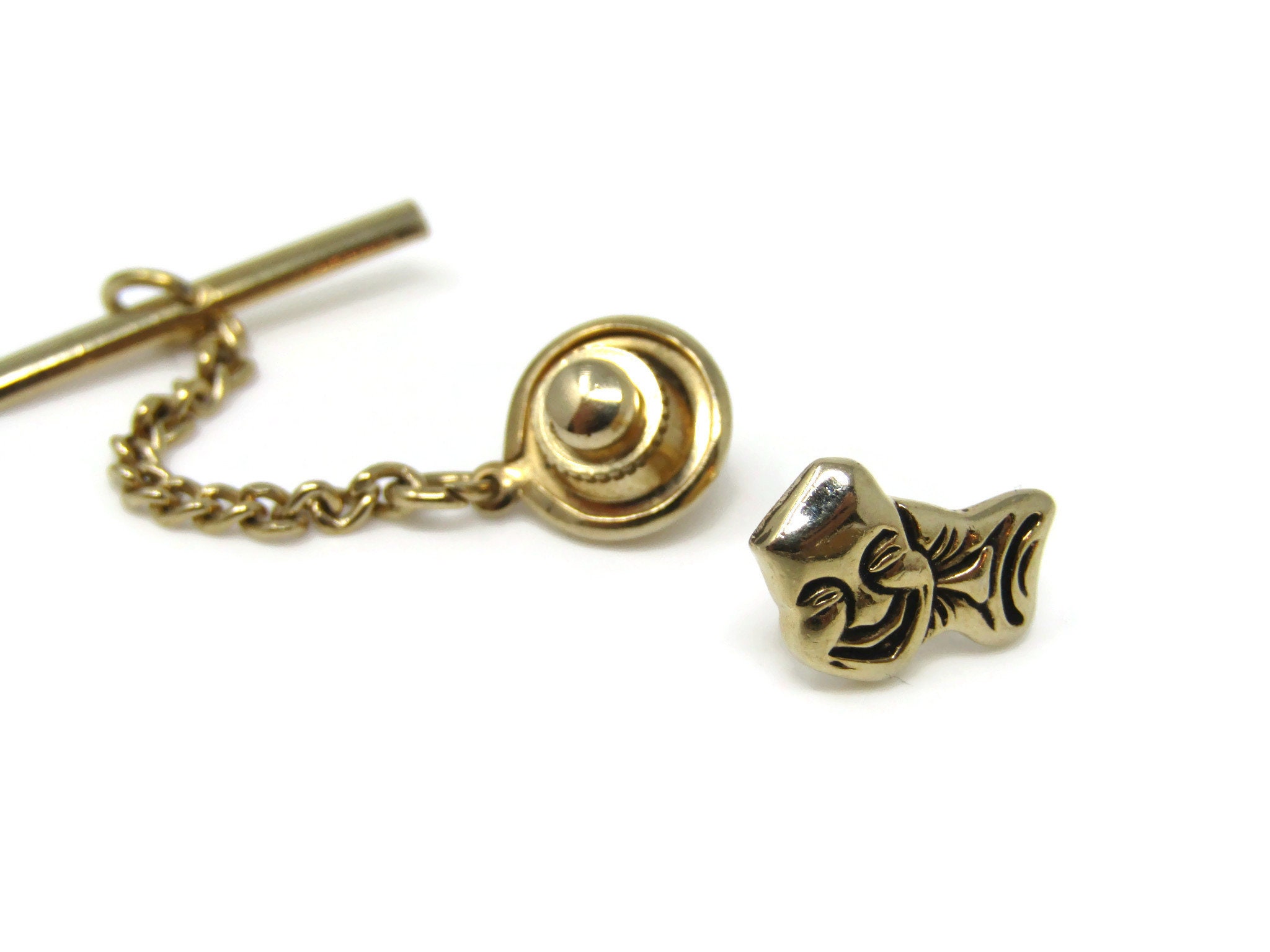 Comedy Tragedy Tie Tack Pin Gold Tone Vintage Men's Jewelry Actor Gift