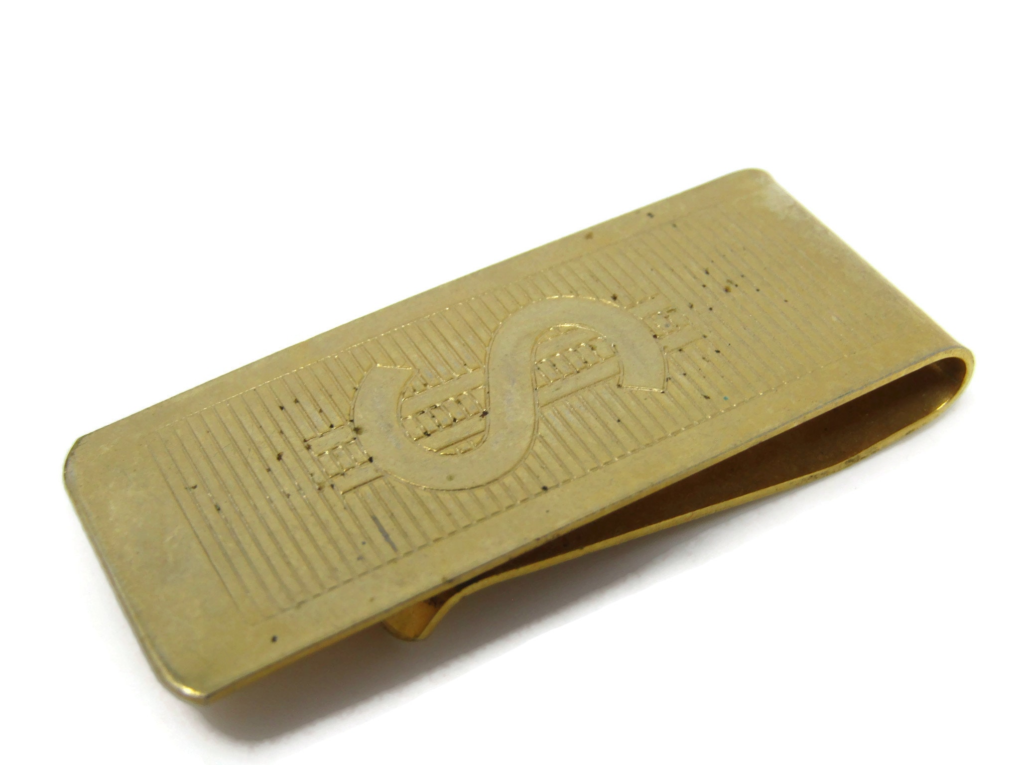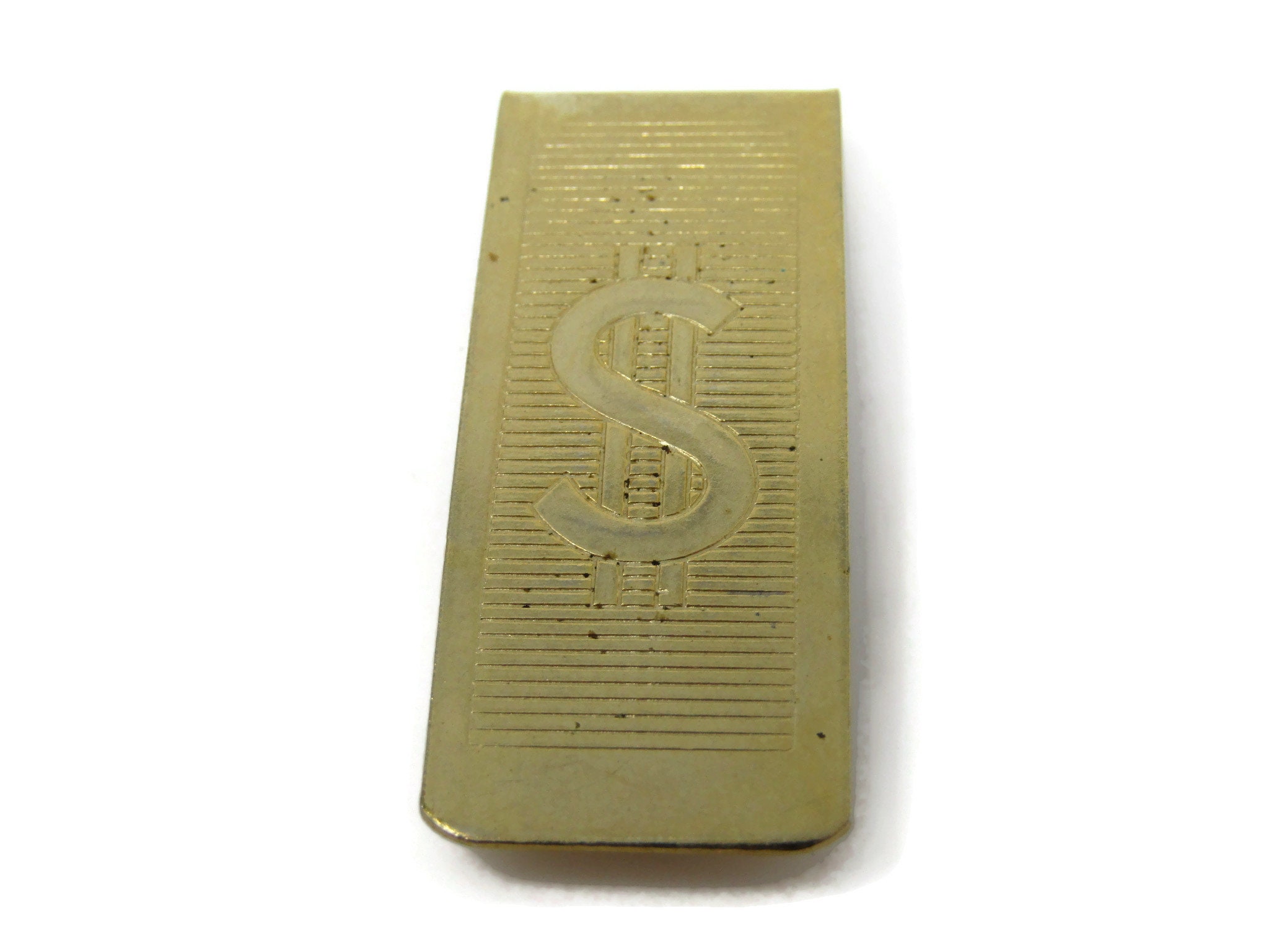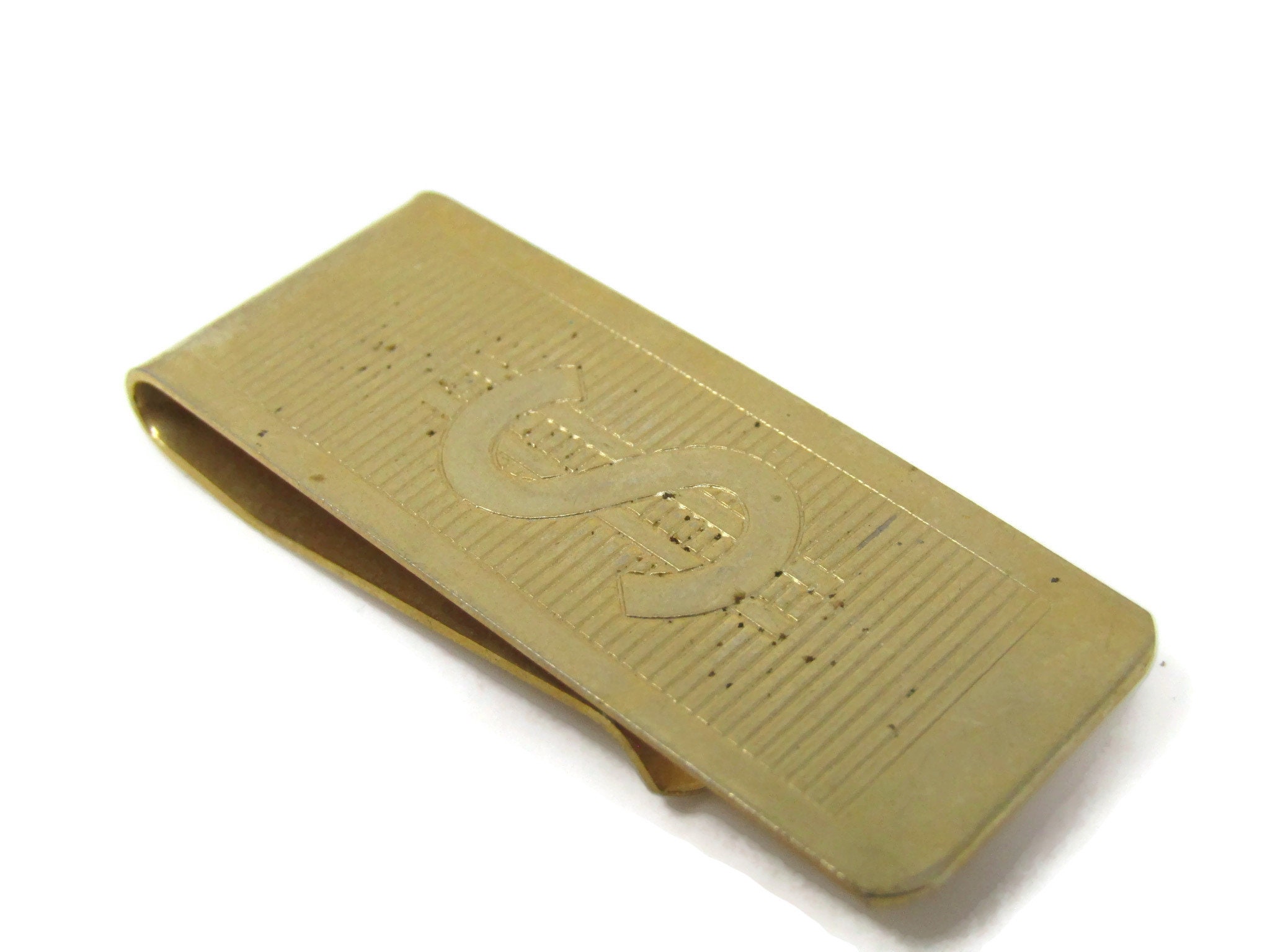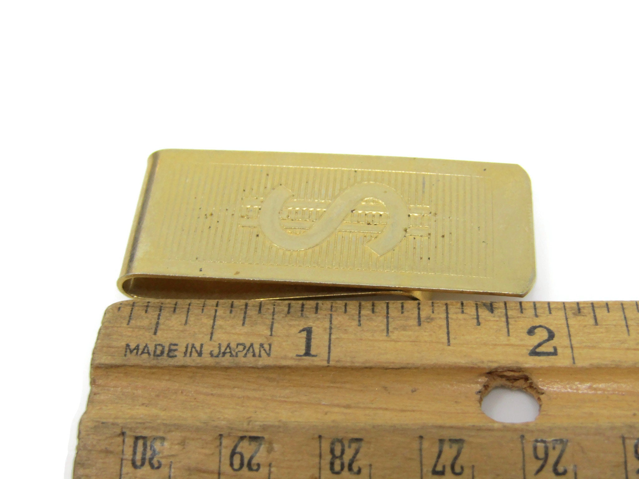 Dollar Sign Etch Money Clip Vintage Ridged Gold Tone Design