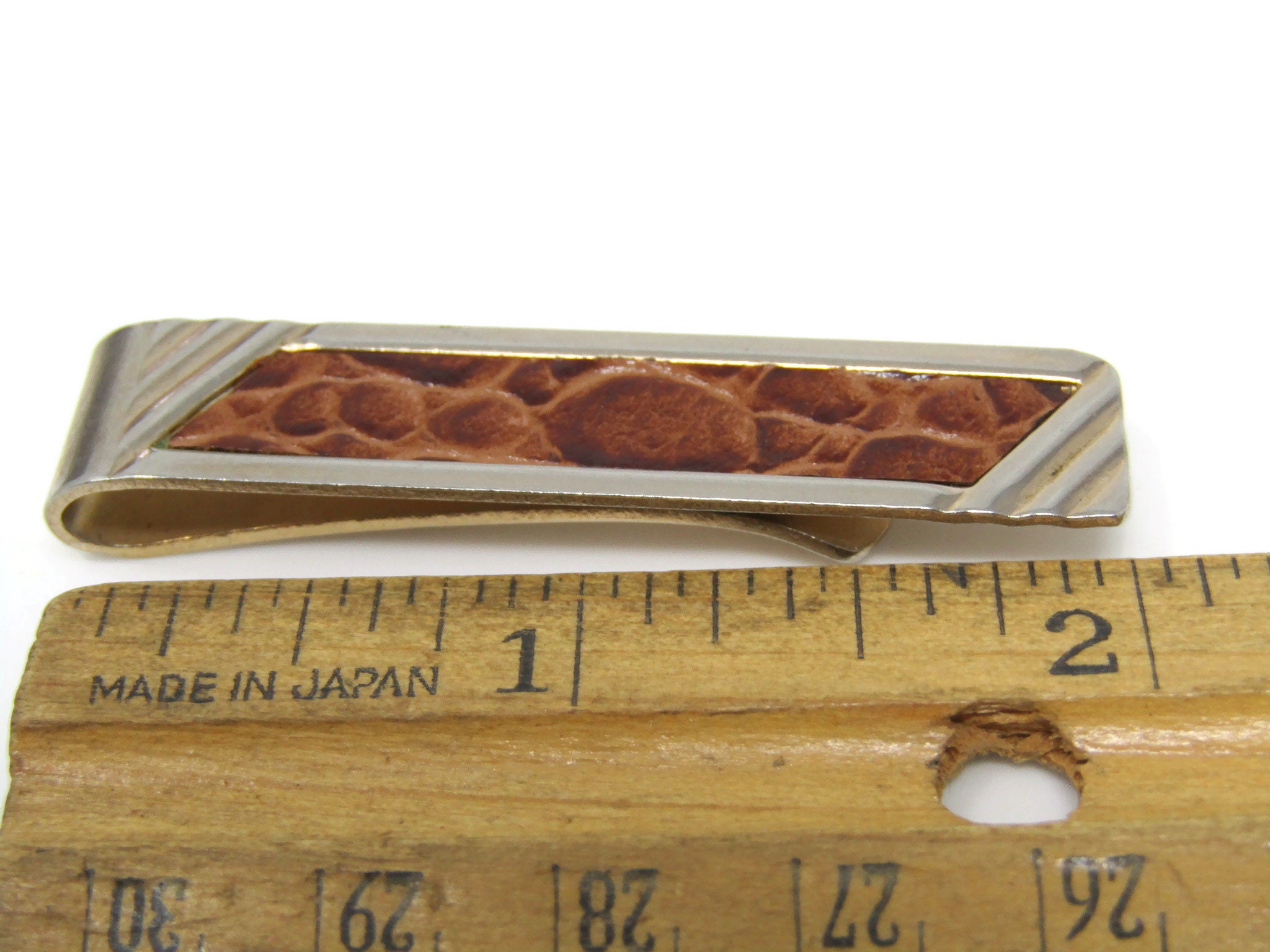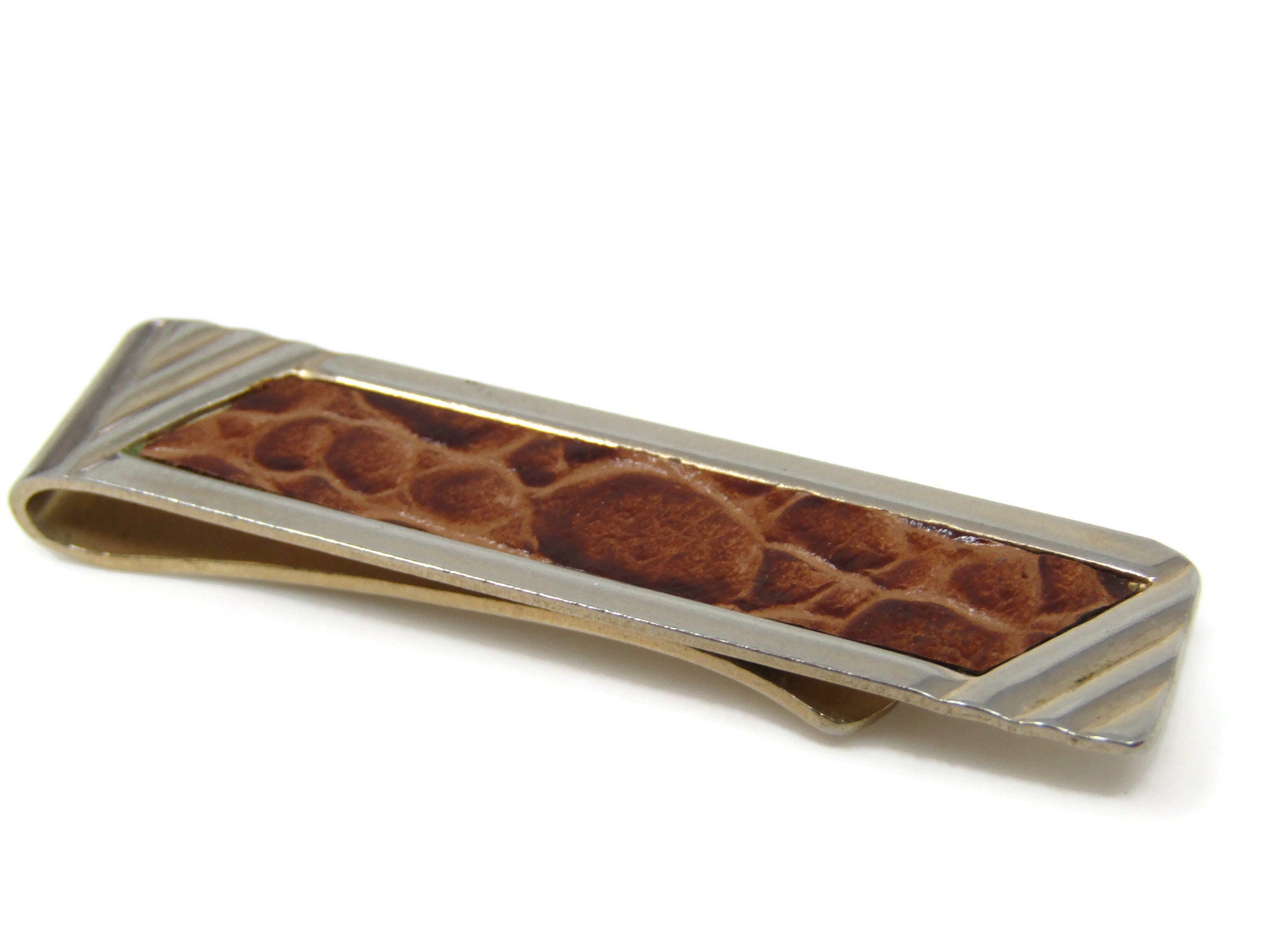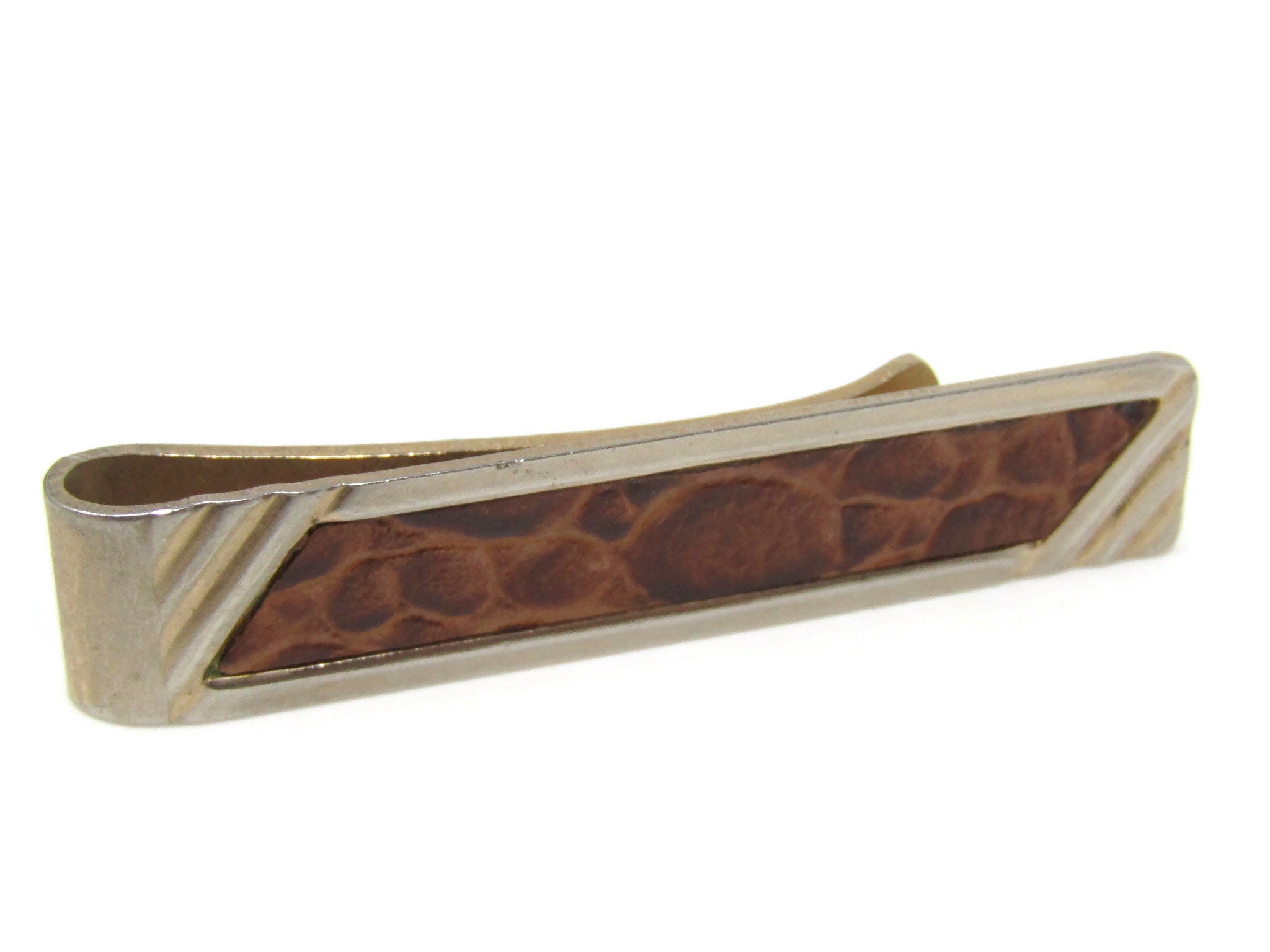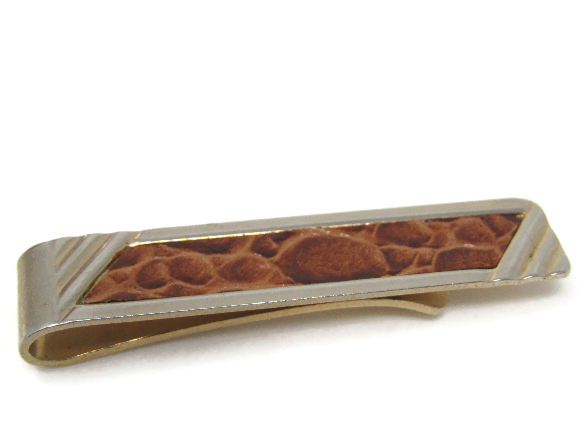 Leather Center Tie Clip Bar Gold Tone Vintage Men's Jewelry Nice Design