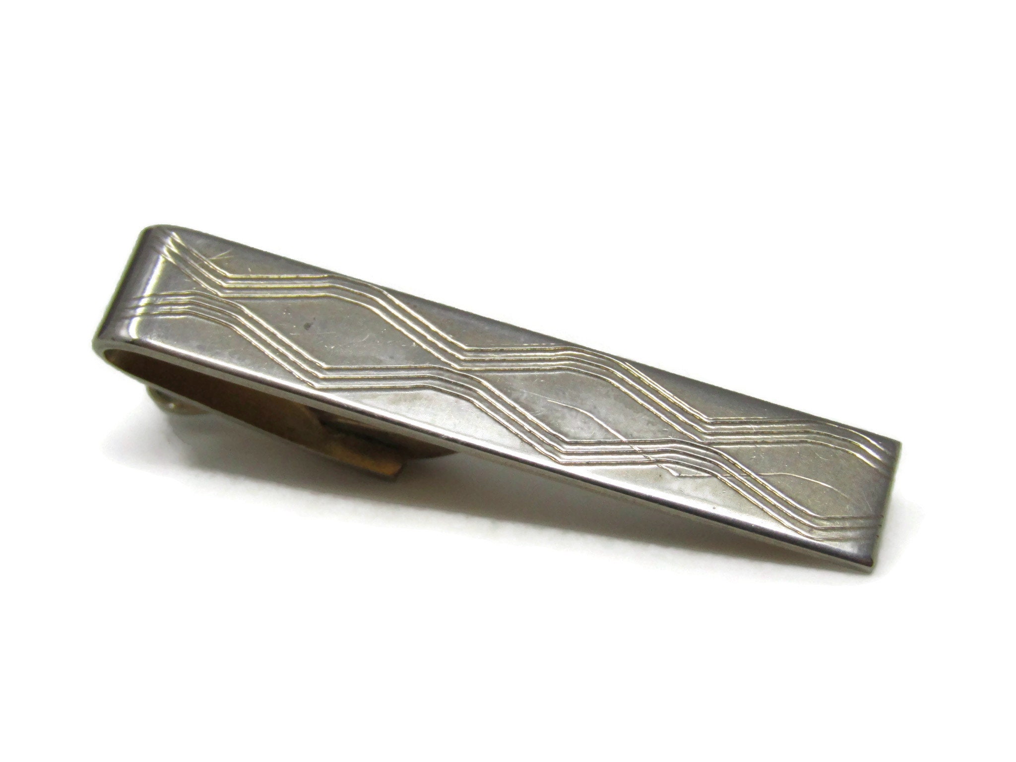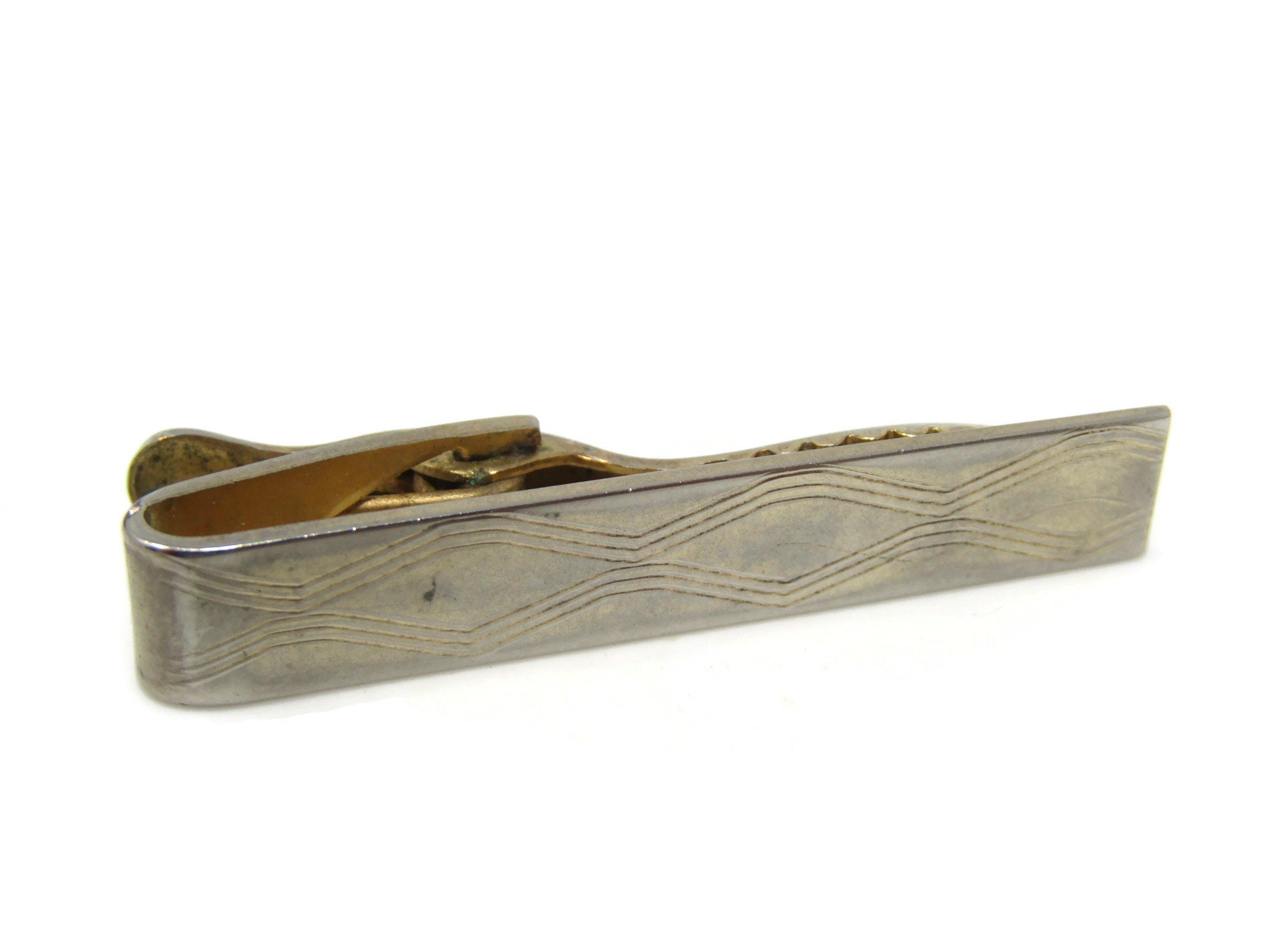 Wavy Lines Tie Clip Bar Gold Tone Vintage Men's Jewelry Nice Design
