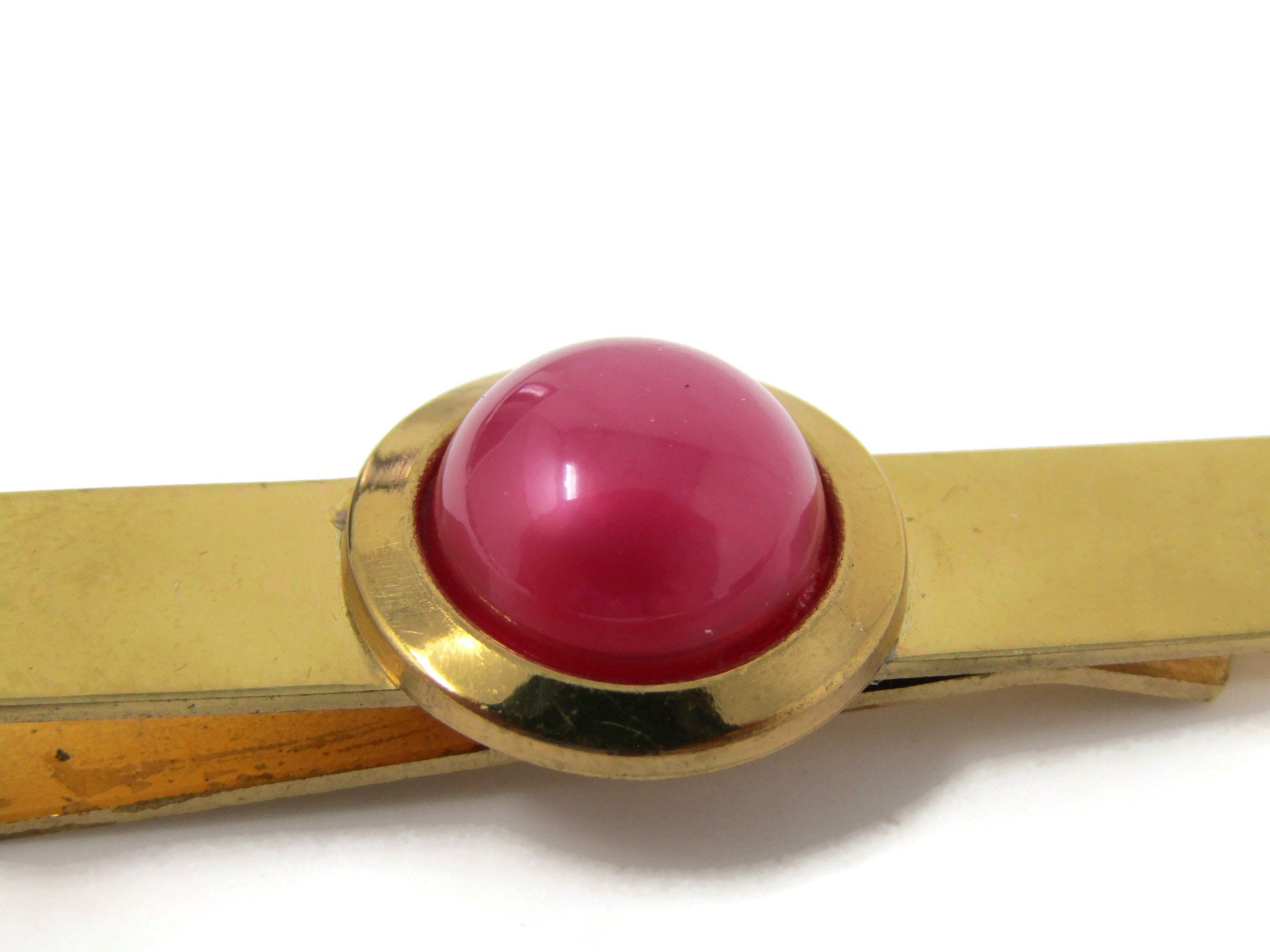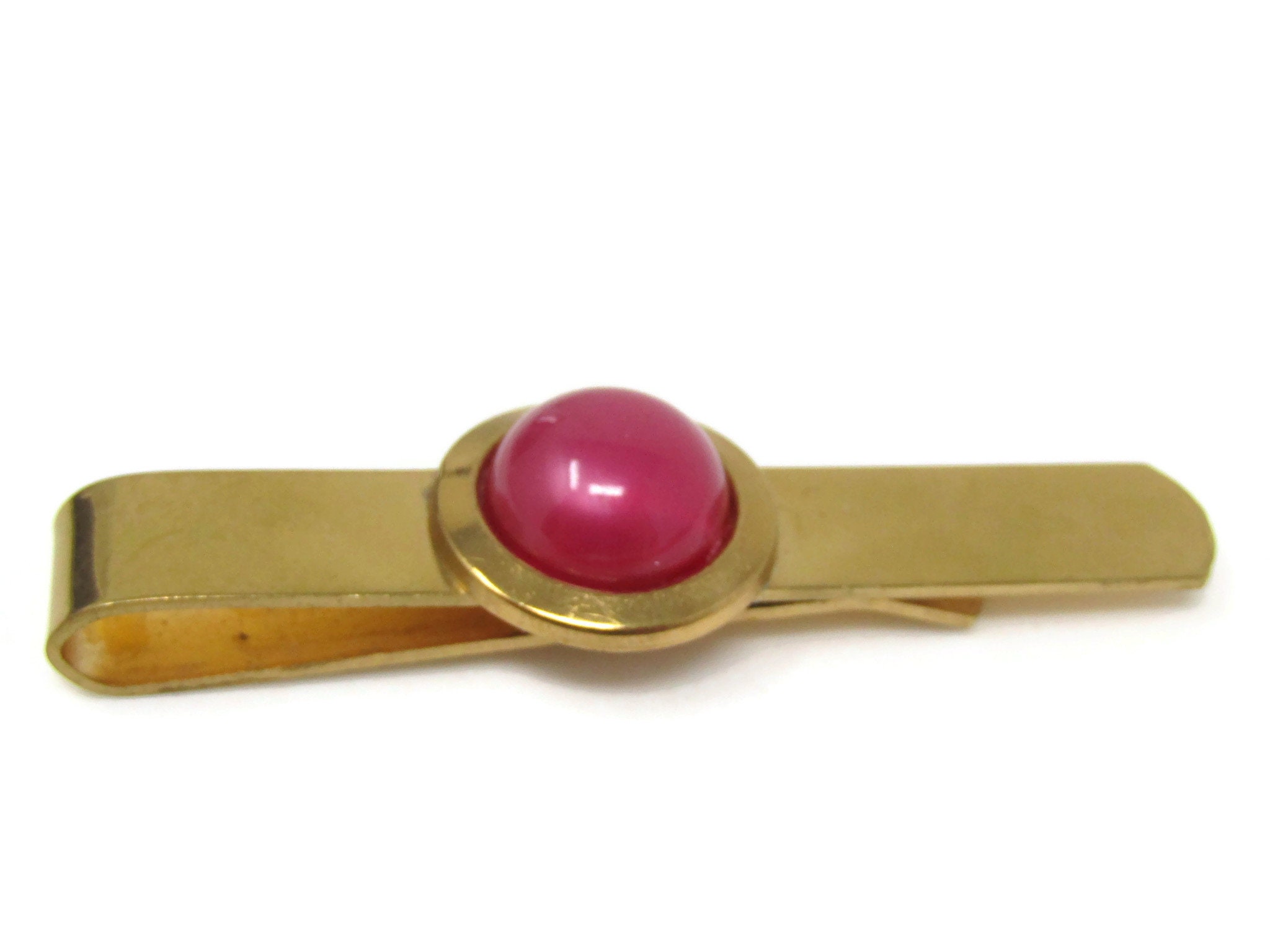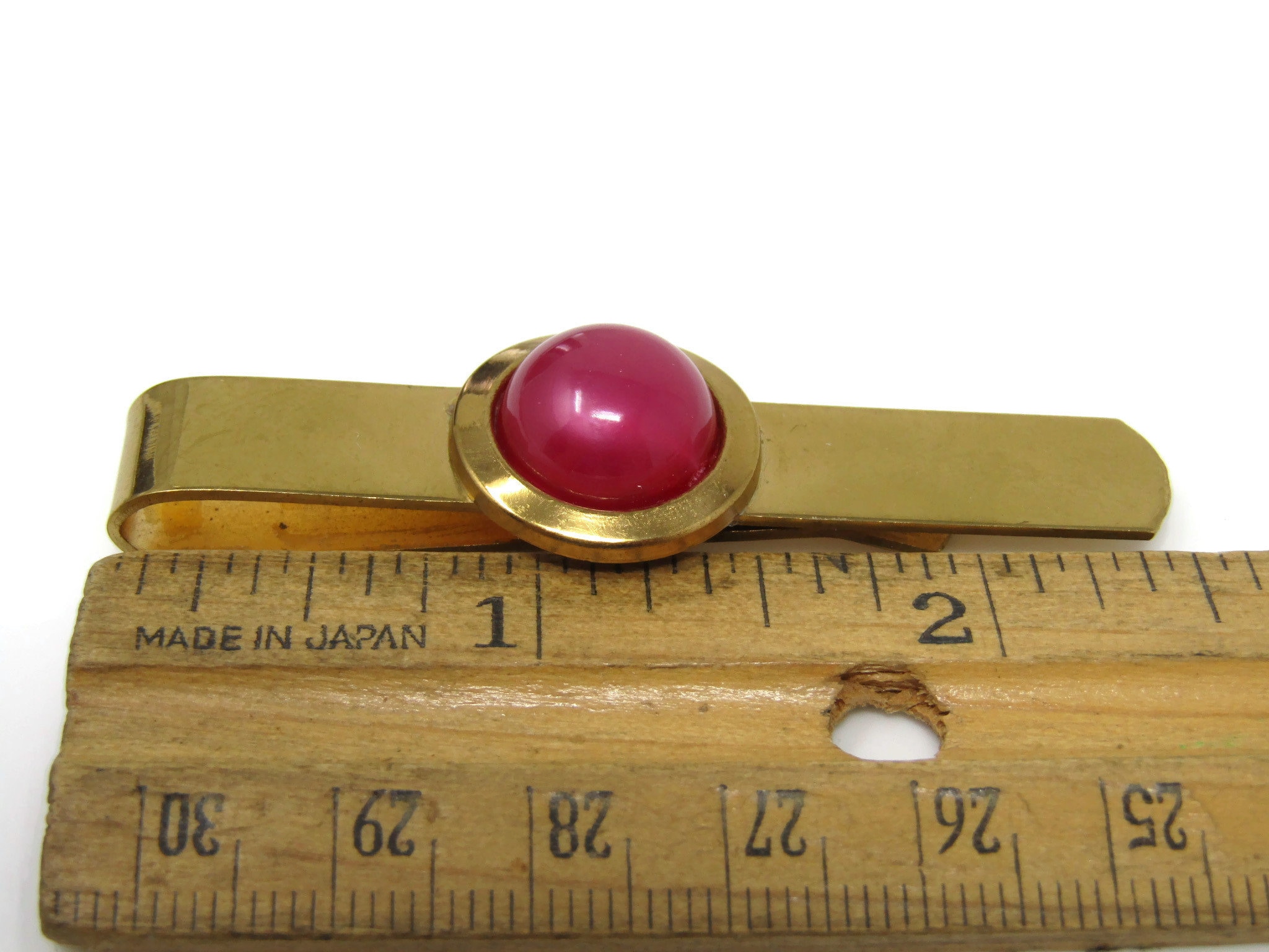 Pink Center Tie Clip Bar Gold Tone Vintage Men's Jewelry Nice Design