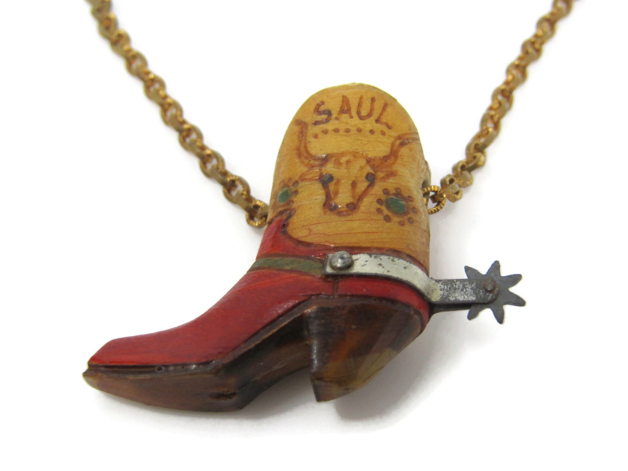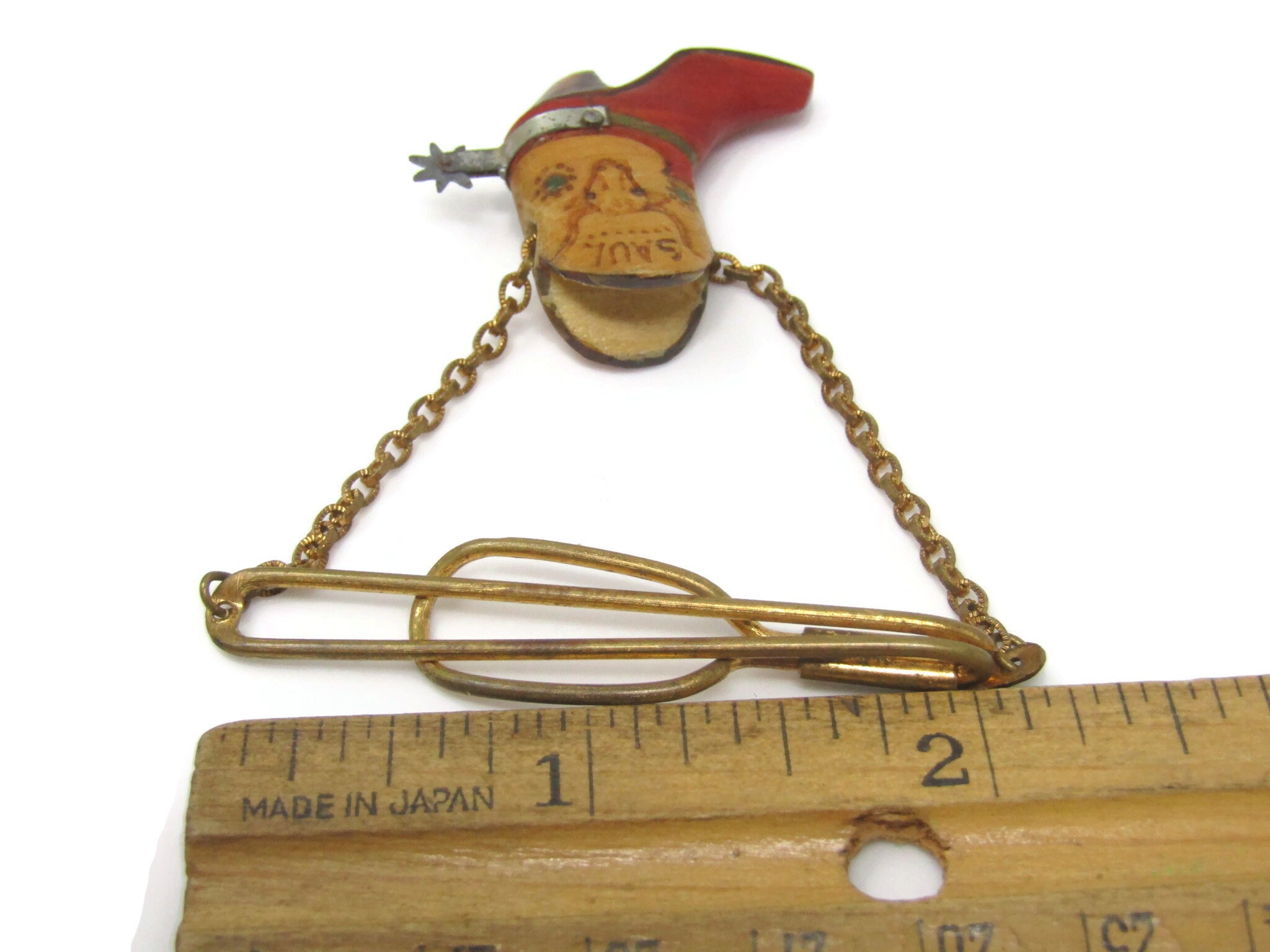 Cowboy Boot Carved Wood Excellent Tie Clip Bar Silver Tone Vintage Men's Jewelry Nice Design