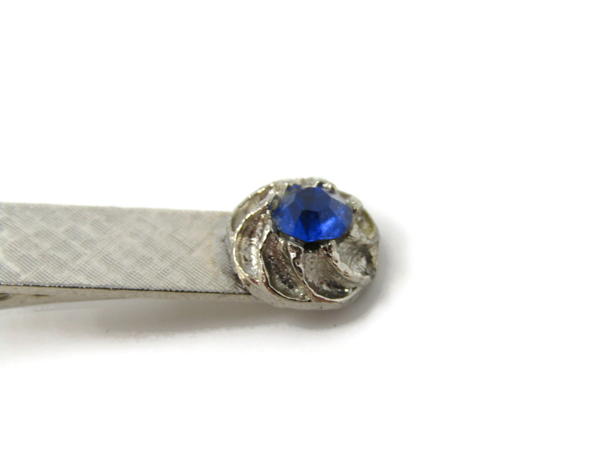 Blue Jewel Swirl Setting Tie Clip Bar Silver Tone Vintage Men's Jewelry Nice Design
