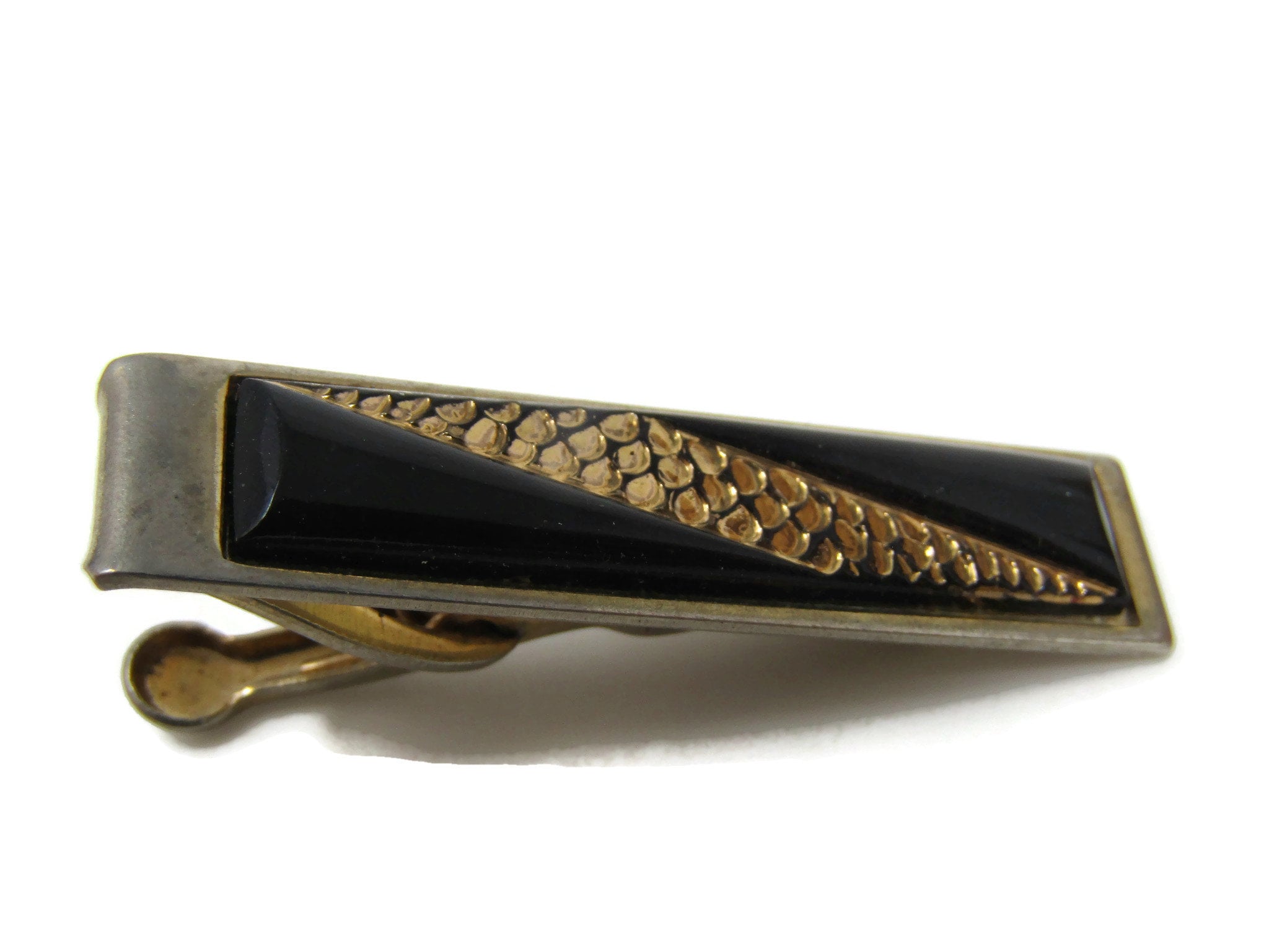 Glass Center Gold Tone Textured Stripe Tie Clip Bar Gold Tone Vintage Men's Jewelry Nice Design