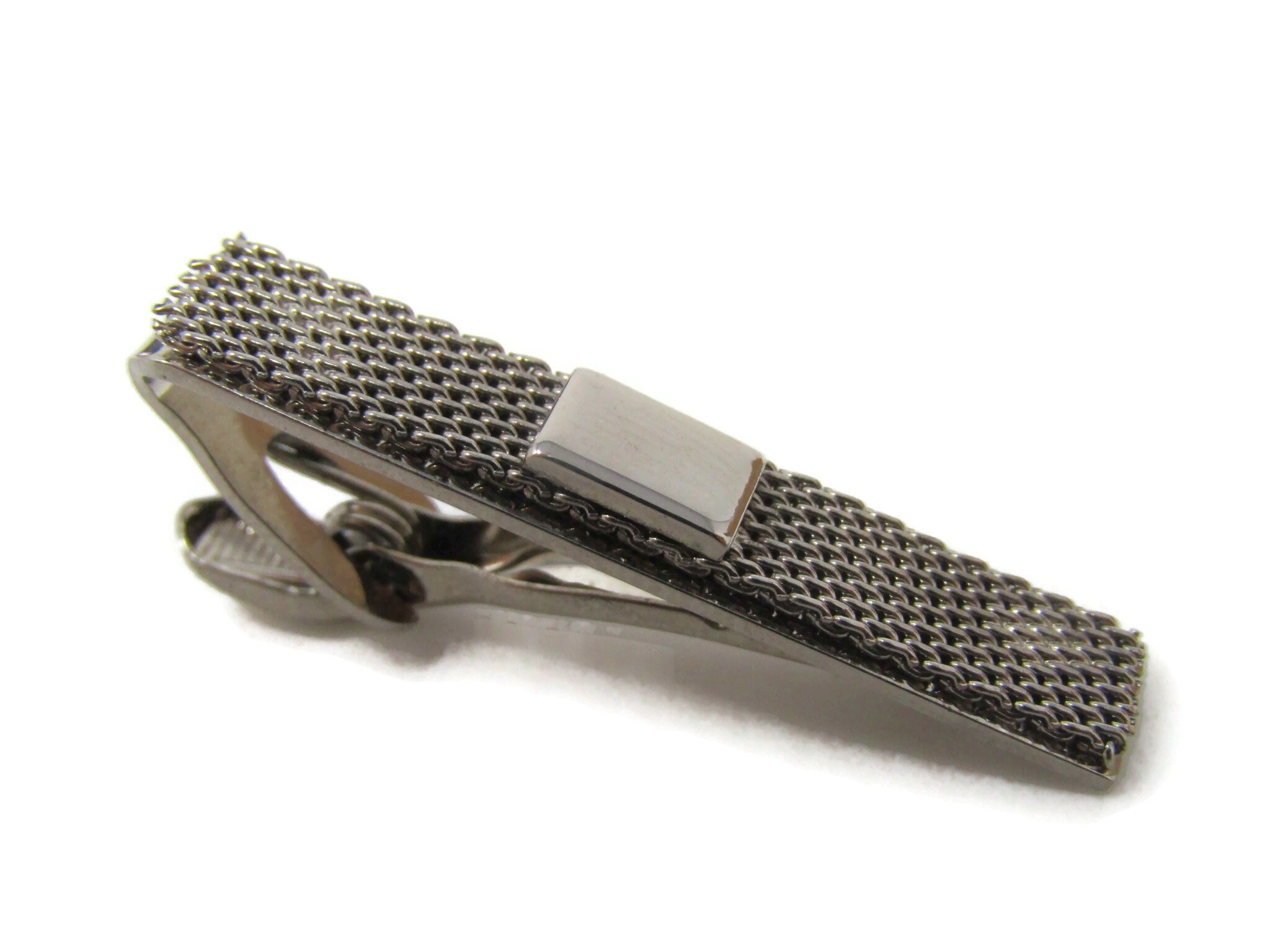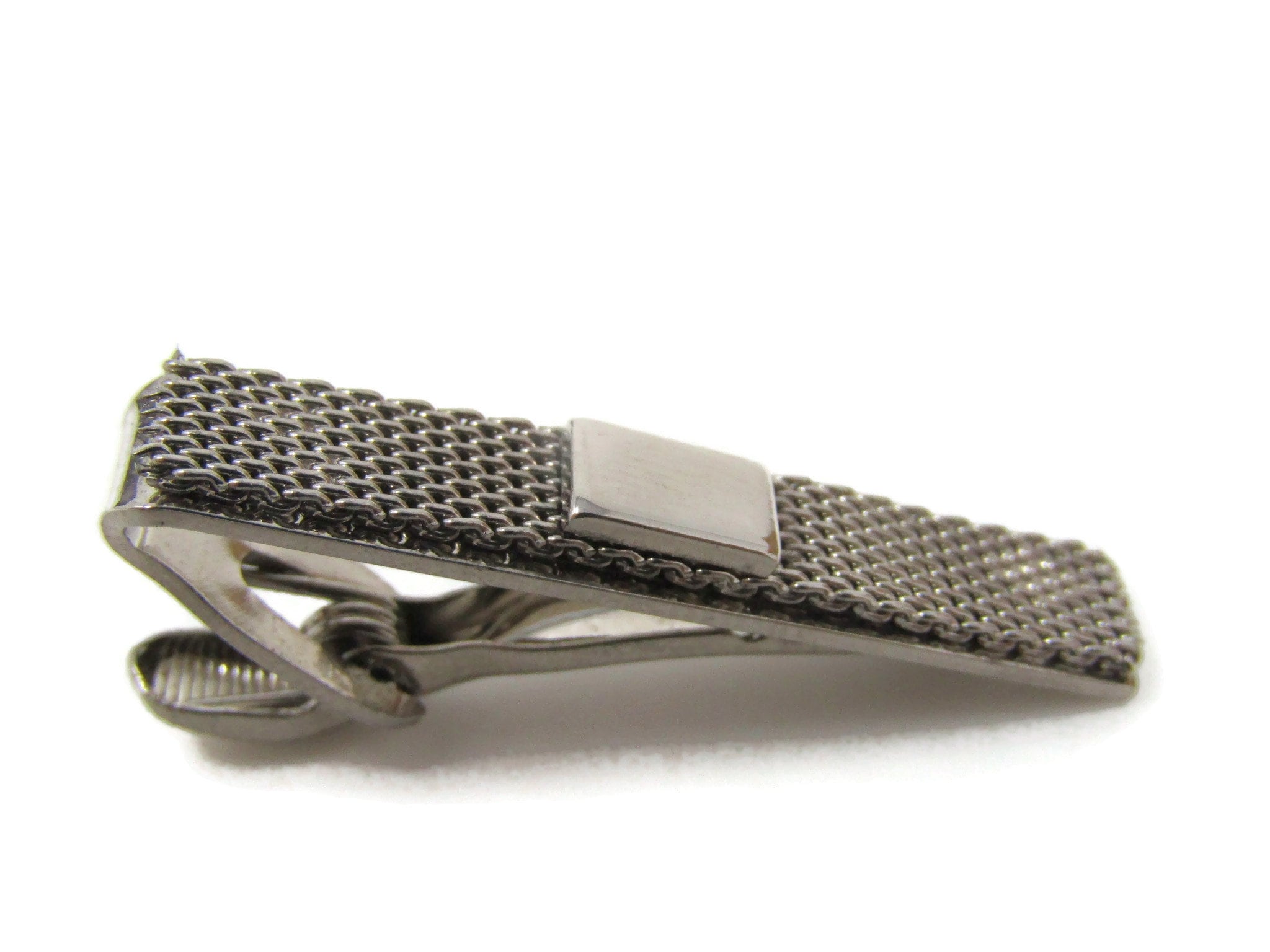 Mesh Textured Tie Clip Bar Gold Tone Vintage Men's Jewelry Nice Design
