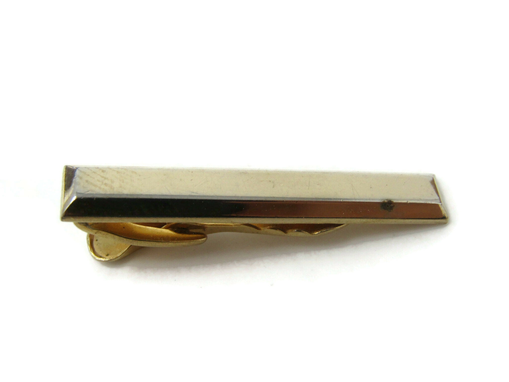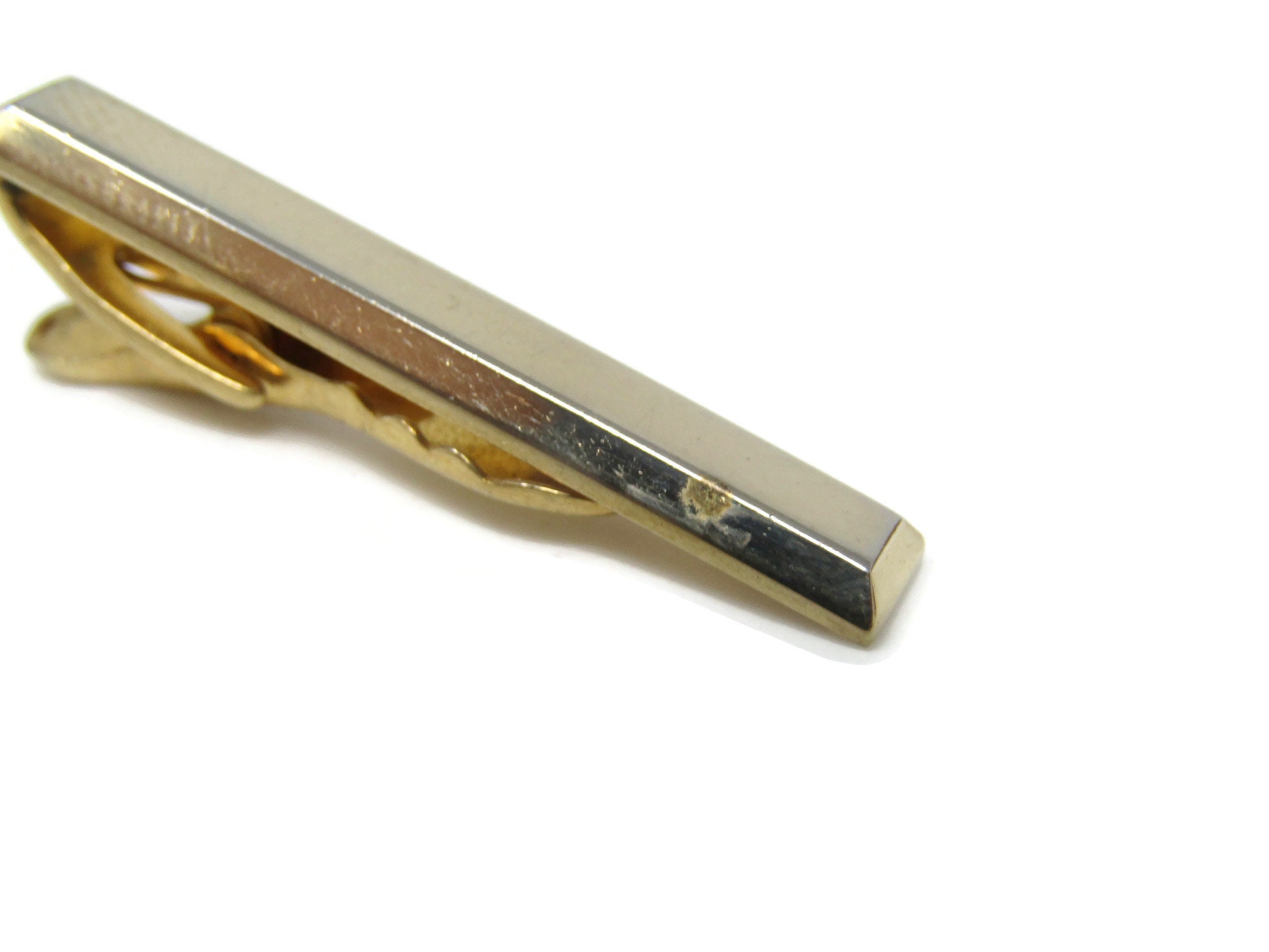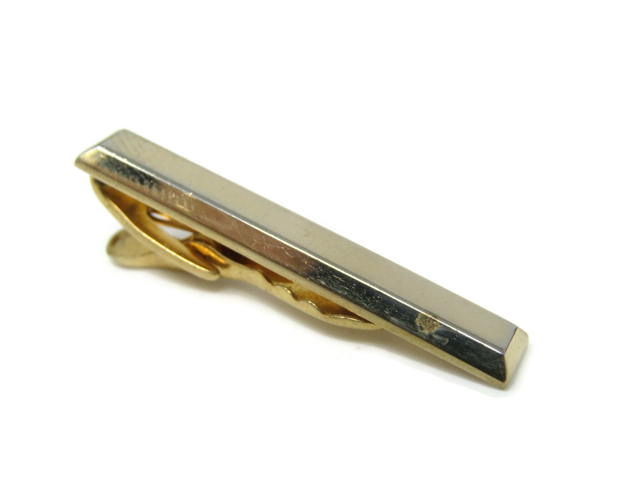 Beveled Edges Tie Clip Bar Gold Tone Vintage Men's Jewelry Nice Design Small Wear Mark