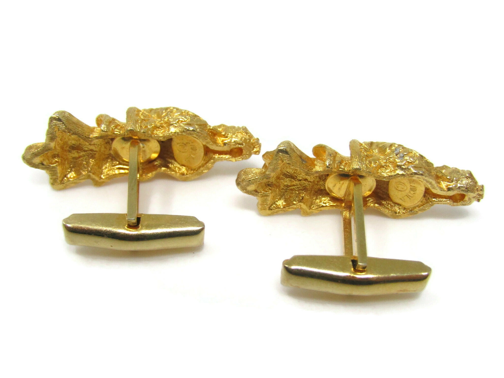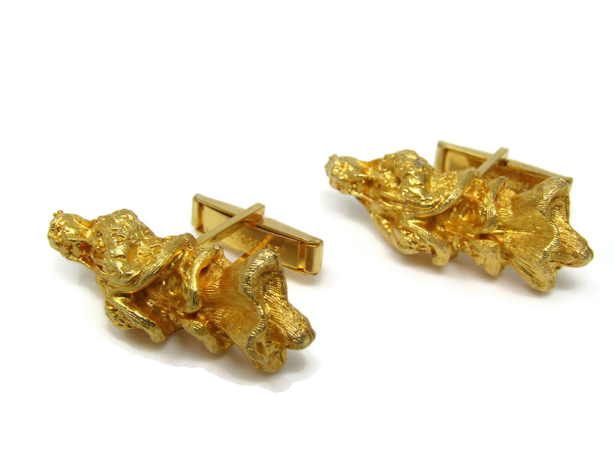 Confucius Asian Design Cufflinks Gold Tone Vintage Men's Jewelry Beautiful Design