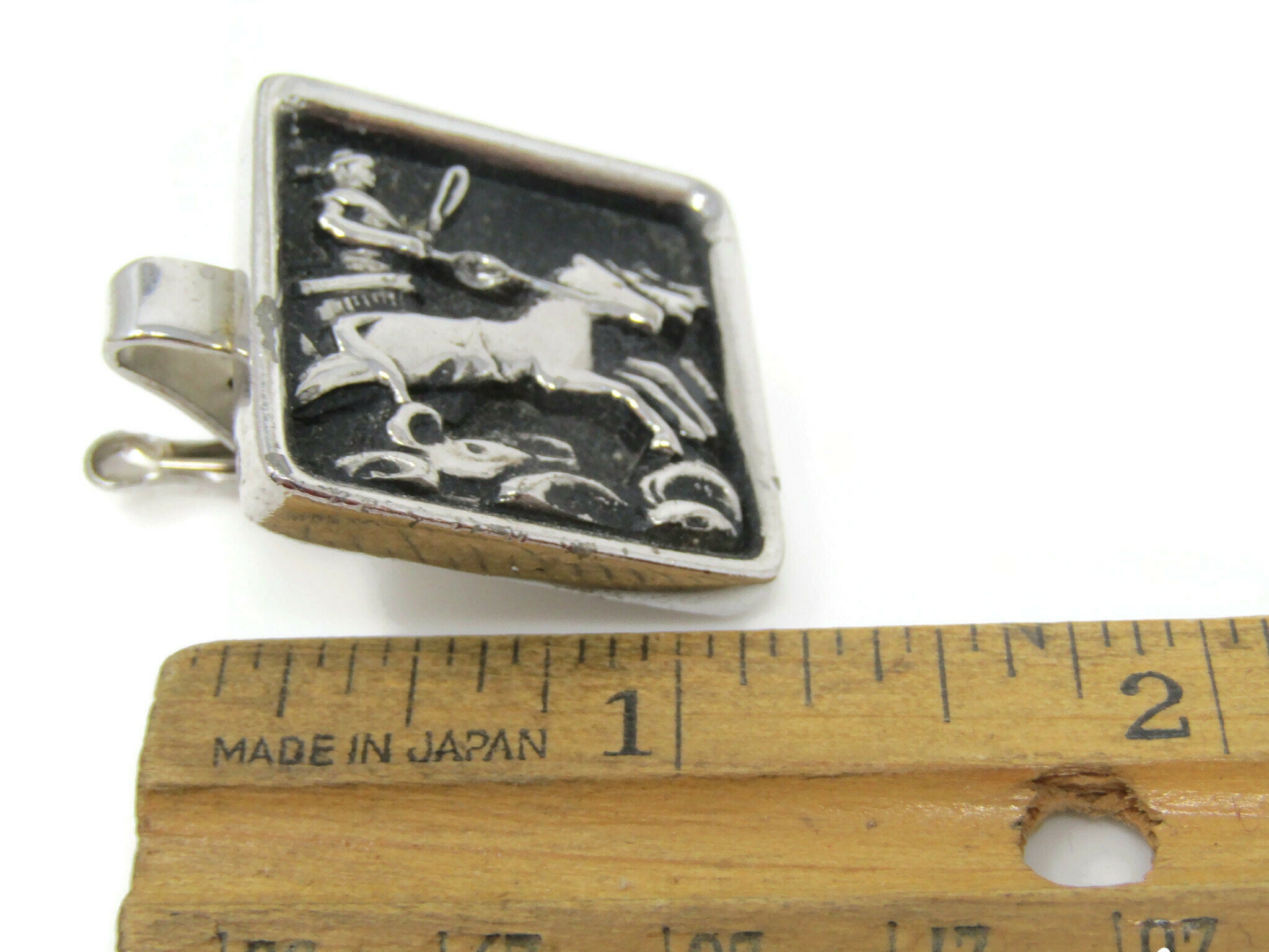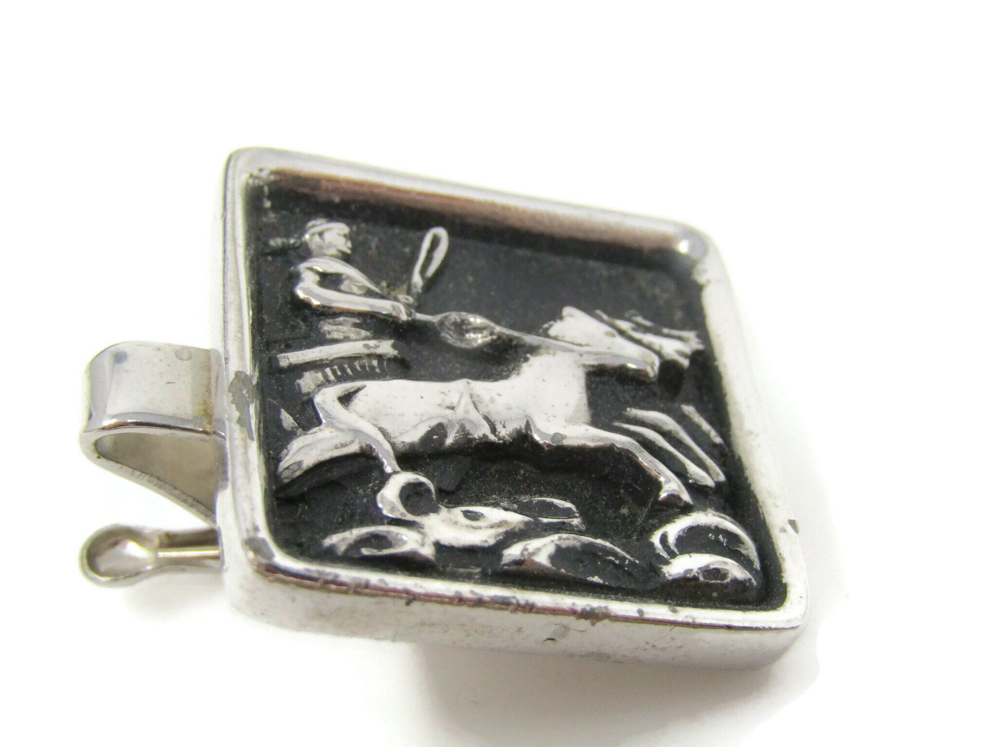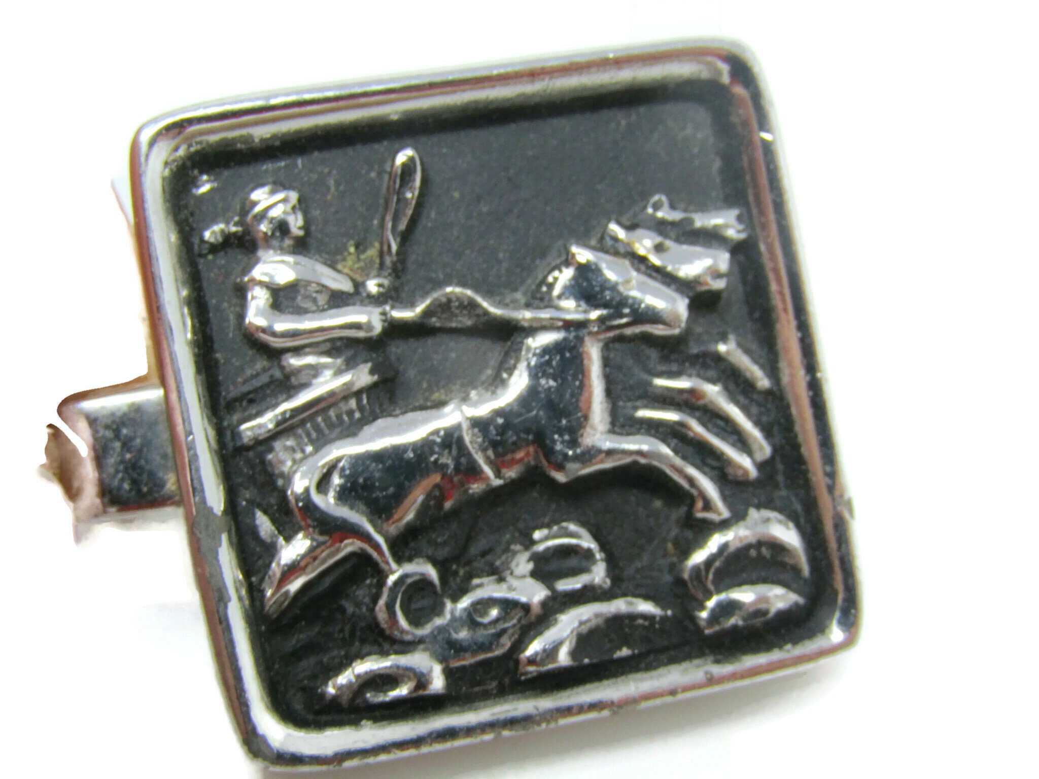 Chariot Horses Driver Tie Clip Bar Silver Tone Vintage Men's Jewelry Nice Design